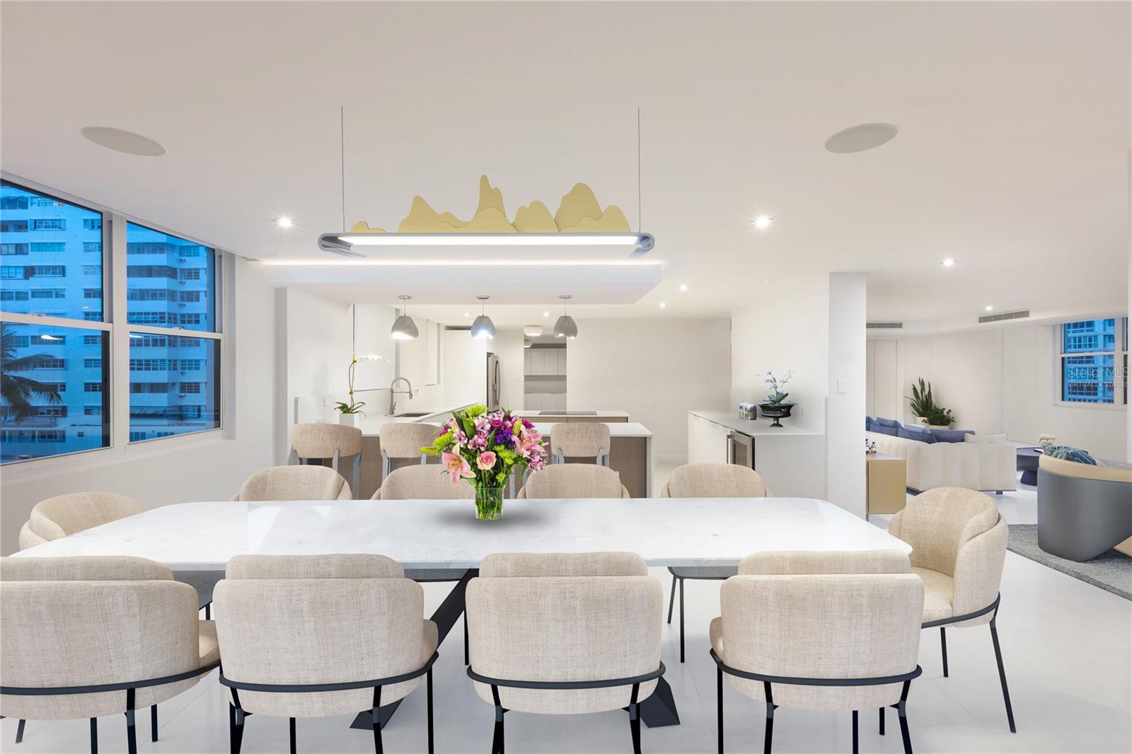Uma ou mais fotos foram virtualmente encenadas. Condomínio de luxo à venda em Condado com lindo terraço com vista para o mar. Este espaço único de piso inteiro oferece uma generosa área bruta de 3.550 pés quadrados, incluindo um espaçoso terraço de 503 pés quadrados, incomparável na área do Condado. O Grand Atrium está convenientemente localizado a 150 metros da praia e próximo a restaurantes, hotéis, escolas particulares de primeira linha, supermercados e ao Hospital Ashford. Esta residência requintada oferece quatro quartos, três banheiros, uma ilha de cozinha generosamente decorada com bancadas de quartzo e backsplash, novos eletrodomésticos, lavanderia e área de estar e jantar de conceito aberto projetada para maximizar a luz natural. Dois elevadores proporcionam acessos distintos, um leva diretamente a um hall de entrada privativo, enquanto o outro se conecta diretamente à cozinha e área de serviço do estacionamento. A área de estar aberta leva ao terraço com vistas únicas da paisagem urbana e do oceano. O terraço destaca-se como a principal característica do apartamento, oferecendo o espaço perfeito para relaxamento e entretenimento com cozinha externa com ilha de mármore Calacatta, churrasqueira Wolf, máquina de fazer gelo Sub-Zero e geladeira embaixo da bancada, além de sistema de som Sonance Mariner. Equipado com sistemas de tecnologia de ponta, incluindo Sonos Sound System, alto-falantes Sonance e um sistema de automação Savant que gerencia perfeitamente ar condicionado, alto-falantes, iluminação embutida LED e persianas. O interior e o exterior apresentam elegante piso de porcelana nas dimensões 24” x 48”. Atualizado com acabamentos premium, como vasos sanitários e pias Toto, torneiras Kohler, chuveiro com efeito de chuva Brizo, iluminação de nicho e penteadeiras pelo aclamado empreiteiro Jose Lucas da Space Innovations Corp. Este condomínio inclui três lugares de garagem e arrecadação. O prédio dispõe de gerador de energia completo, segurança e cisterna de água. Financiamento do proprietário disponível. Algumas ilustrações representam encenação virtual.