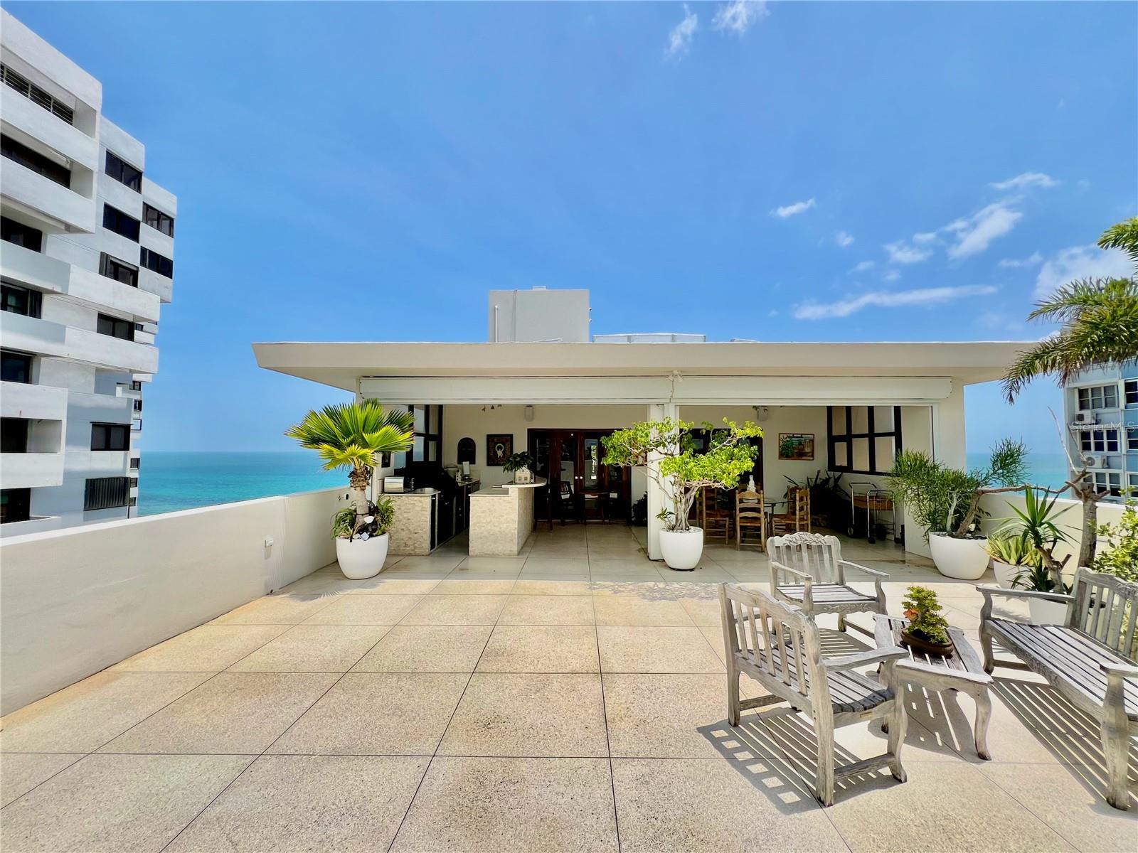 Bela propriedade de luxo na Avenida Ashford em Condado. Esta impressionante cobertura de dois andares oferece uma experiência de vida incomparável, combinando elegância, conforto e vista panorâmica do mar. Com generosos 3.228 pés quadrados de área útil, este oásis de luxo inclui um terraço aberto de 840 pés quadrados, perfeito para apreciar o pôr do sol espetacular e o som suave das ondas. Ao entrar, você será saudado por uma sensação de amplitude e luz, realçada pelo fluxo ininterrupto do mosaico e do piso de mármore. O espaço interior foi meticulosamente concebido para oferecer o máximo conforto e funcionalidade. Com três quartos espaçosos, quatro casas de banho elegantes e um escritório-biblioteca, há espaço mais que suficiente para toda a família. Além disso, os armários embutidos proporcionam muito espaço de armazenamento, mantendo os espaços livres de desordem. A cozinha é um verdadeiro sonho para qualquer entusiasta da culinária, equipada com eletrodomésticos Wolf topo de gama, incluindo fogão de indução, dois fornos e micro-ondas. A esplanada dispõe de um bar equipado com fogão a gás Wolf, ideal para entreter os seus convidados ao ar livre com deliciosas refeições gourmet. Esta cobertura vem completa com duas vagas de garagem, sendo uma delas em estilo carport, proporcionando comodidade e segurança para seus veículos. Além disso, a localização privilegiada a poucos passos de escolas particulares, bancos, supermercados, academias, lojas e restaurantes garante um estilo de vida prático e vibrante. O edifício oferece exclusividade e tranquilidade, com apenas duas unidades por andar e um total de 22 unidades ao todo. Os serviços incluem instalação elétrica completa, cisterna para garantir abastecimento constante de água, dois elevadores e equipe de segurança altamente treinada.