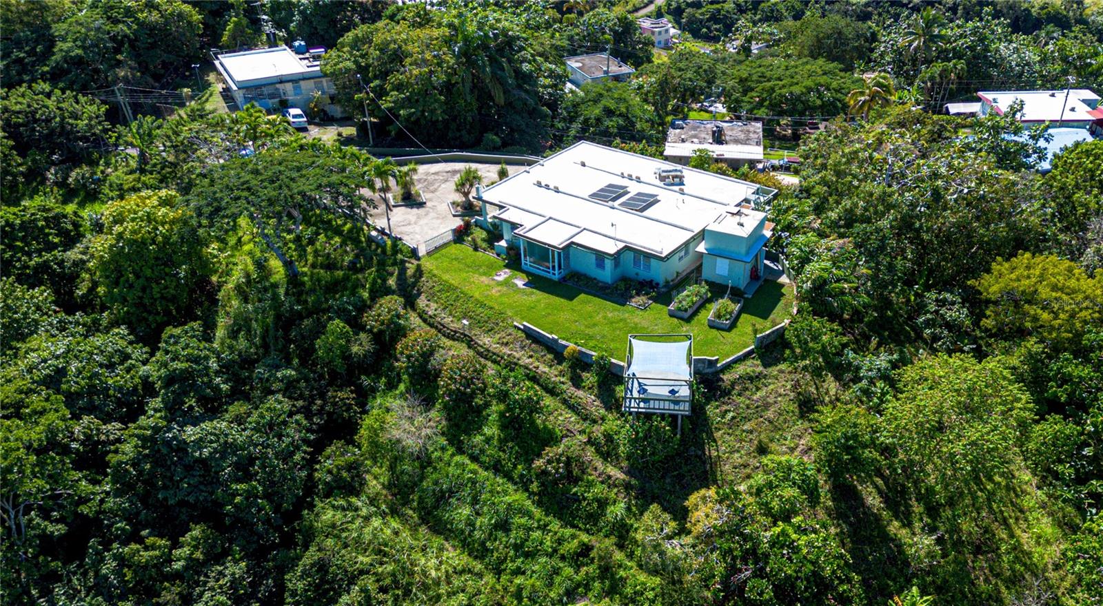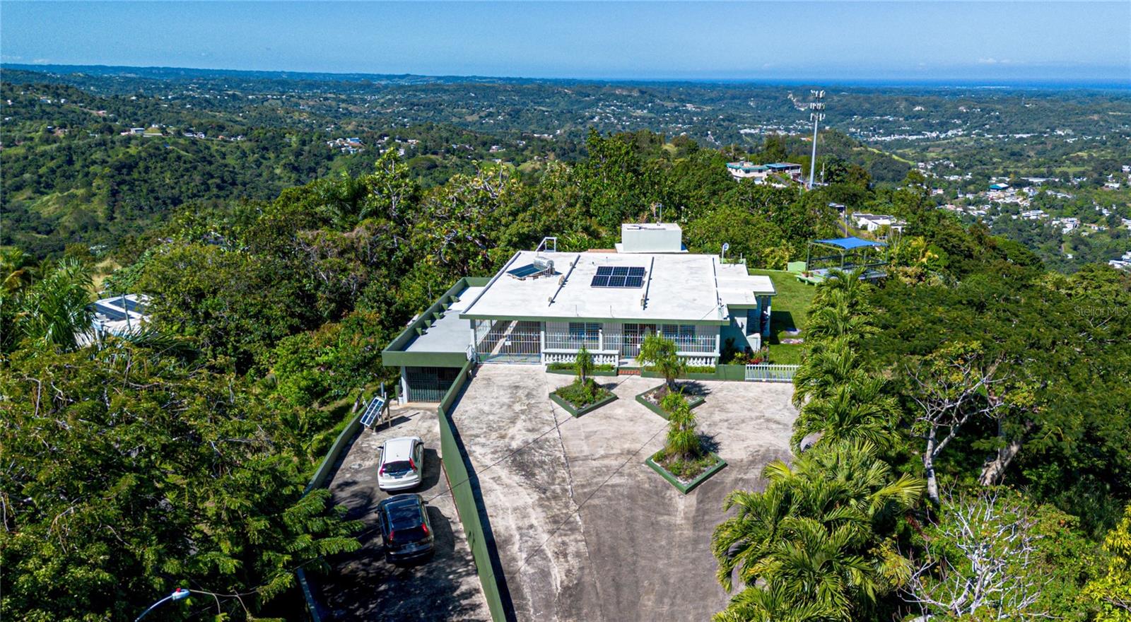 Uma rara oportunidade de possuir uma propriedade verdadeiramente especial onde a natureza, a privacidade e a beleza panorâmica se unem em perfeita harmonia. Esta excepcional residência de dois andares ocupa mais de 11.751 metros quadrados de terreno, oferecendo vistas deslumbrantes das montanhas, do oceano, de San Juan e das cidades vizinhas. Projetada para oferecer conforto e tranquilidade, a casa possui cinco quartos, 3,5 banheiros, áreas de estar generosas, várias áreas externas, um mirante privativo e jardins exuberantes repletos de árvores frutíferas, plantas ornamentais e vida selvagem. Aprimorada com energia solar, uma cisterna de água autossustentável e a opção de incluir a maioria dos móveis e decoração, esta casa é ideal como residência principal, retiro ou investimento único.