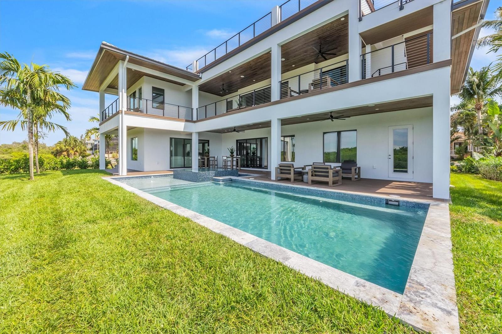 Descubra o epítome da vida luxuosa à beira-mar no prestigioso Harbour Landings Estates. Esta construção NOVA possui amplos 4.913 pés quadrados de espaço aquecido com uma área total de construção de 8.428 pés quadrados. Cada um dos cinco quartos possui banheiro privativo, garantindo conforto e privacidade pessoal. A residência também inclui um lavabo adicional para os hóspedes. Saia para a varanda coberta e desfrute do ambiente sereno da sua piscina e spa privativos, enquanto desfruta de vistas deslumbrantes do canal costeiro. A grande piscina aquecida dispõe de solário e spa, tornando-a o local perfeito para relaxamento e entretenimento. A propriedade inclui um ancoradouro equipado com eletricidade e água, proporcionando acesso direto ao Golfo do México e à Baía de Tampa - perfeito para os entusiastas da vela. A planta aberta da casa foi projetada para entretenimento, conectando perfeitamente espaços internos e externos. Um condomínio fechado garante privacidade e segurança, enquanto o elevador acrescenta comodidade. A lareira cria um ambiente aconchegante e a vista para o mar pode ser apreciada de vários pontos de vista, incluindo o deck da cobertura. As características adicionais incluem uma garagem para 5 carros. Esta propriedade não é apenas uma casa; é um estilo de vida esperando para ser adotado. Com design arrojado e detalhes requintados, é uma joia rara que oferece sofisticação e conforto. Esta casa é um oásis ideal para abraçar a vida na ilha. Com vistas deslumbrantes para o mar, piscina privada e proximidade das praias e restaurantes da Ilha Anna Maria, oferece a combinação perfeita de relaxamento e encanto costeiro.