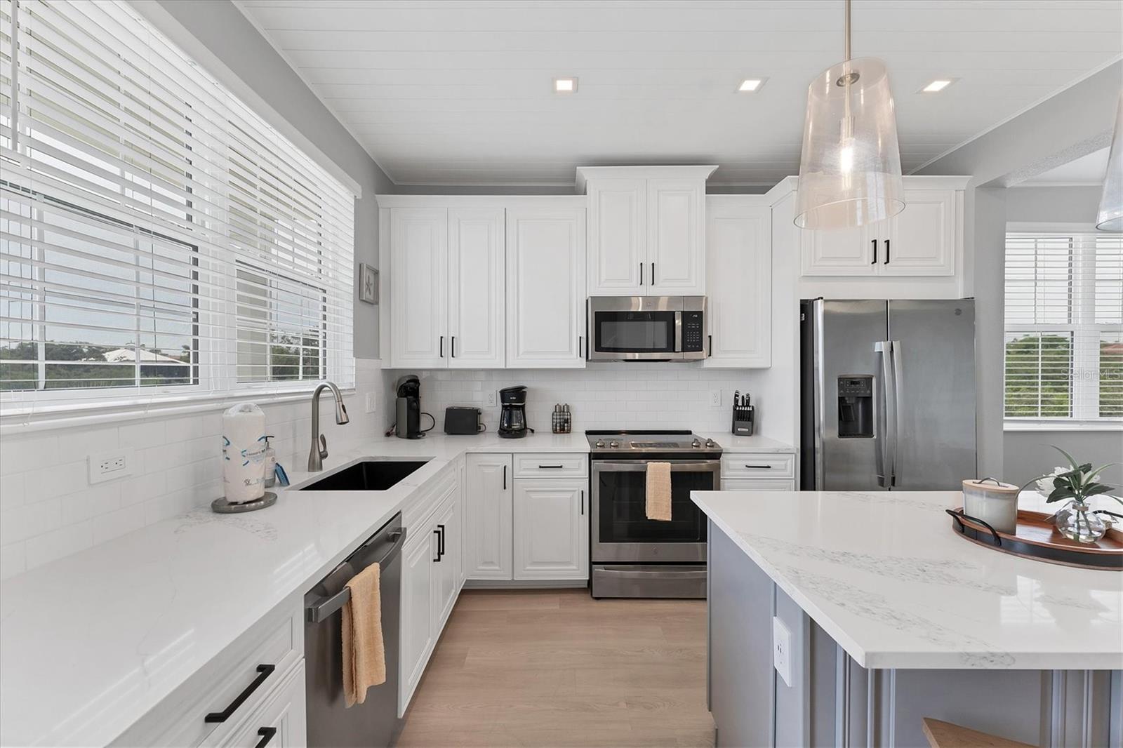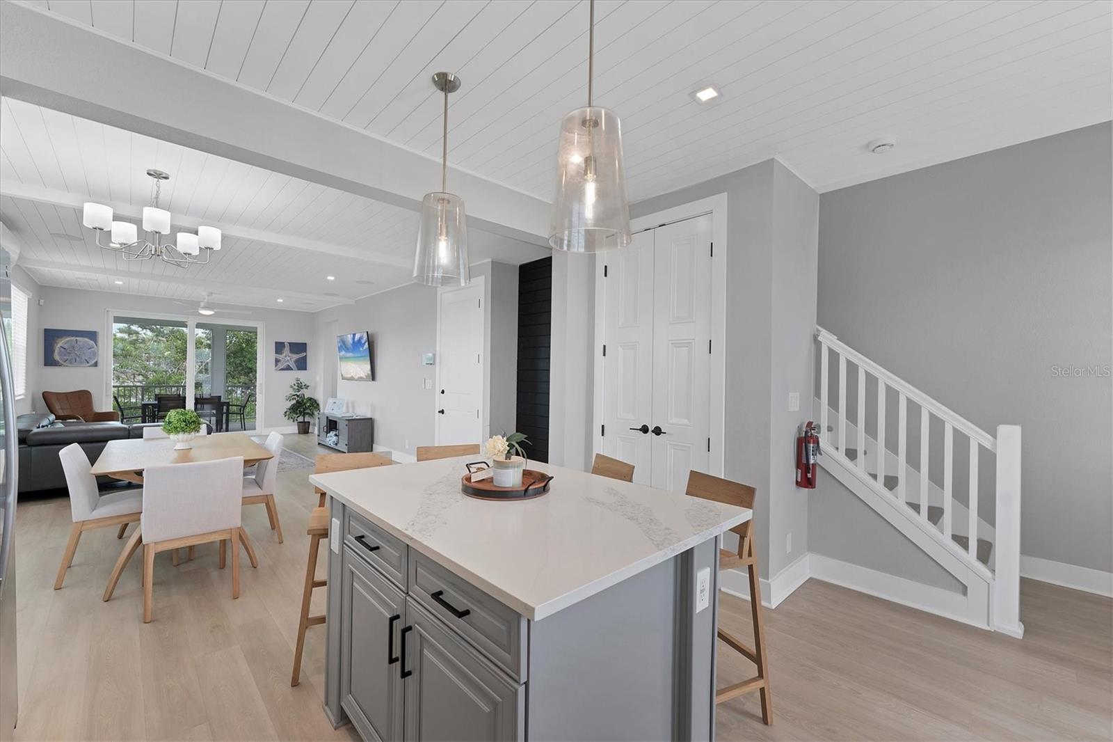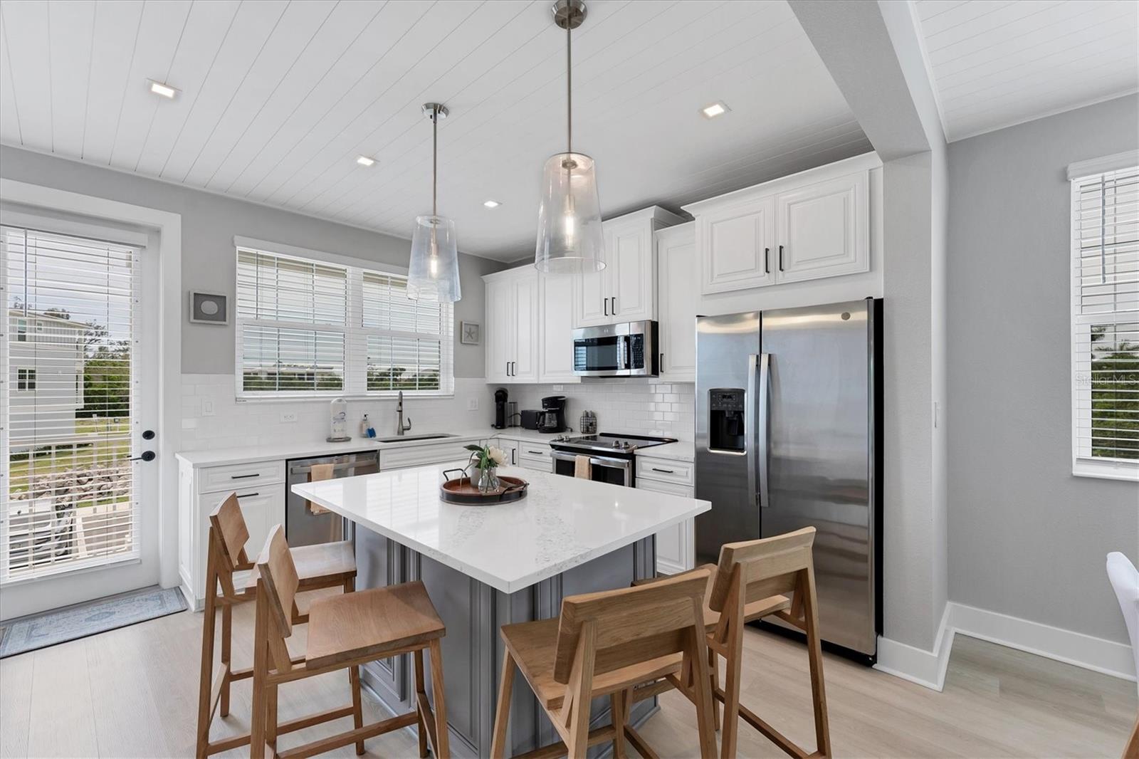 Bem-vindo ao pináculo da vida costeira-Turnkey mobilied, lote de canto e doca de Deeded-apenas um curto passeio das praias ensolaradas da Ilha Anna Maria. Aninhado dentro da comunidade fechada e exclusiva de Hunters Point, localizada ao longo da costa do Golfo, sudoeste da Flórida, este lar excepcional oferece uma combinação incomparável de luxo, sustentabilidade e reclusão. Com uma localização privilegiada cercada pelo Best of Seaside Living, você encontrará praias próximas, manchas de pesca abundantes, esportes aquáticos, conservas naturais, o Museu Marítimo da Flórida, butiques encantadoras e refeições ao ar livre - tudo de fácil acesso. Construído em 2023, esta casa elevada de três quartos está totalmente pronta, completa com um deslizamento de barco com ação. Os velejadores apreciarão a doca e elevador particulares, que acomodam navios de até 25 pés. Projetado com construção de ponta e ponta, a casa está elevada a 16 pés acima do solo, oferecendo vistas panorâmicas à beira-mar e privacidade final. Entre para descobrir uma residência ecológica, com janelas de impacto da PGT, isolamento com eficiência energética e um revolucionário painel solar e sistema de armazenamento de bateria Sonnen-definindo a manutenção mínima, uma impressionante economia de custos de energia líquida e uma vida sustentável. A tecnologia doméstica inteligente permite controlar sistemas de iluminação, clima e segurança da palma da sua mão, adicionando conveniência e segurança ao seu estilo de vida. A área de estar de conceito aberto flui perfeitamente da sala de estar/jantar à beira-mar até a elegante cozinha de quartzo, completa com utensílios de aço inoxidável e uma ilha de comer. Com terraços voltados para o leste e oeste em ambos os níveis, você desfrutará de amplo espaço ao ar livre para entretenimento ou relaxamento, tudo com vistas deslumbrantes da água. O elevador de três paradas da casa fornece acesso fácil entre os pisos. No andar de cima, a suíte primária privada apresenta uma varanda exibida com vistas de água calmante, perfeitas para saborear a brisa costeira suave. Dois quartos de hóspedes adicionais compartilham um banheiro de jack-and-jill e uma lavanderia conveniente também está localizada no nível superior. Situado no coração da histórica vila de pescadores de Cortez, o Hunters Point Resort e a Marina é uma comunidade de orla planejada para compreender apenas 86 casas de luxo. Cada residência foi projetada para ser um refúgio inteligente e sustentável, gerando 1/3 a mais de energia do que consome e mistura harmoniosamente a tecnologia verde com o luxo moderno. No Hunters Point, você apreciará o estilo de vida a beira-mar com uma torção ecológica-onde a tecnologia, o conforto e a sustentabilidade se reúnem em perfeita harmonia.