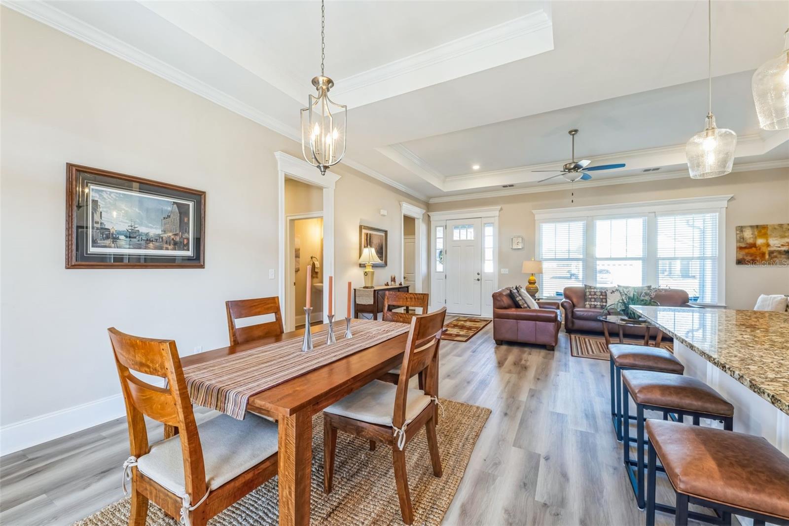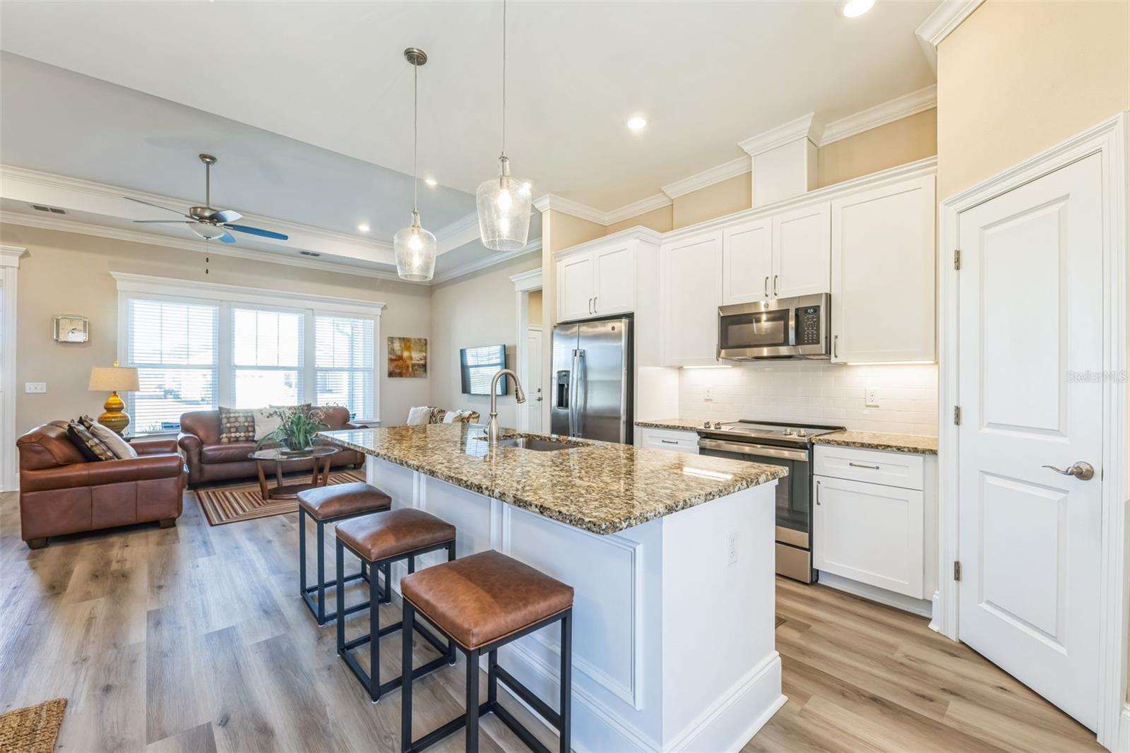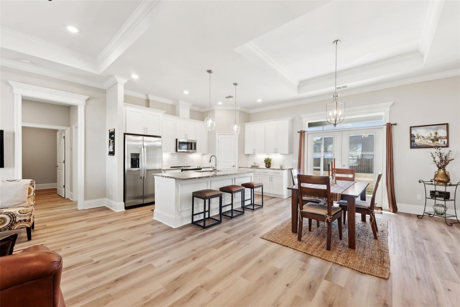 Construção mais recente de mover-se realmente pronta (2022), 4 quartos 3,5 banheiros, casa com plano dividido de 3 vias para privacidade! Esta casa intocada está situada entre 3 praias e Tallahassee, perto da costa tranquila e serena da Flórida, em um nível de 0,36 acres, sem zona de inundação, lote. Cores neutras por toda parte. Upgrades to standard semi-custom builder package include: 16 Seer AC unit (10-year warranty), 2" blinds, water softener, irrigation system including drip lines for landscaping and garden, whole house gutters, fenced, screened in lanai, transferable termite bond, and fully landscaped including asparagus and blueberry bushes! Neutral colors throughout with LVP flooring, 12-foot ceilings, crown molding, and door and window Cornijas nas áreas de estar principais.