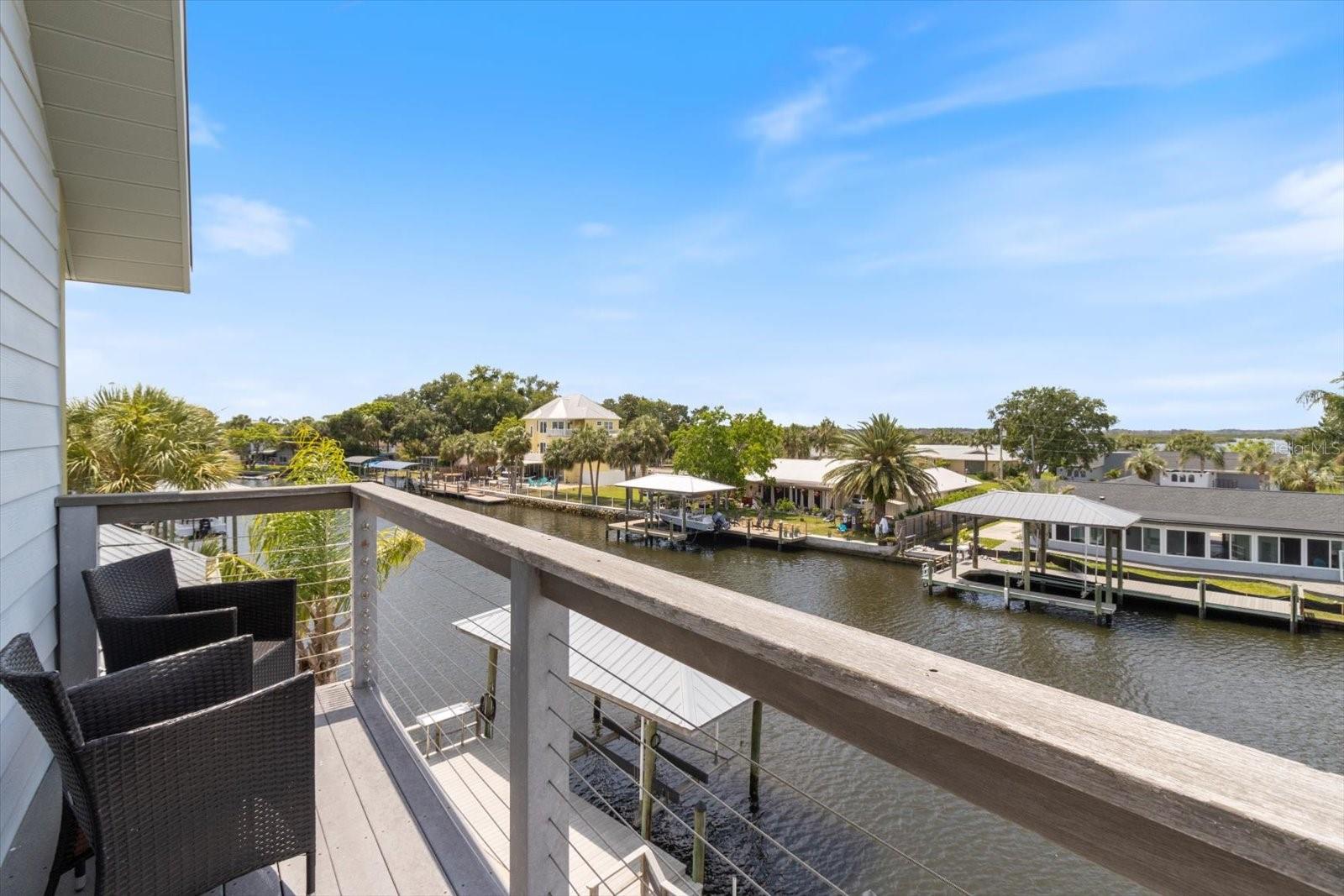 A casa luxuosa totalmente mobiliada fica ao longo de um canal sereno a poucos minutos do Golfo, promissores dias de aventura ensolarados. Esta residência sofisticada possui 3 quartos e 2 banheiros, complementados por duas varandas exibidas e uma impressionante varanda mestre de 3º andar, todas oferecendo vistas pitorescas à beira-mar. Além disso, a propriedade possui mais de 100 pés de paredão, completa com uma estação de doca e pesca, além de um chuveiro ao ar livre para lavagens rápidas. No interior, as TVs inteligentes de tela plana enfeitam todos os quartos, enquanto uma lareira elétrica acrescenta calor nas noites mais frias. A sala de estar, localizada no segundo andar, possui tetos elevados, janelas expansivas e portas francesas de vidro que levam a ambos os pátios selecionados, inundando o espaço com luz natural. A cozinha gourmet mostra balcões de quartzo envolventes, utensílios de aço inoxidável, incluindo uma grade de gás Jennaire e forno de parede dupla, fornecendo tudo o que é necessário para criar seus pratos favoritos. Aninhado no 3º andar está a suíte master, completa com um banheiro privativo com um chuveiro separado e uma banheira jacuzzi, juntamente com um banheiro e bidê privados. Uma varanda pessoal tem vista para o Golfo, oferecendo um local ideal para o café da manhã ou testemunhando o pôr do sol de tirar o fôlego.