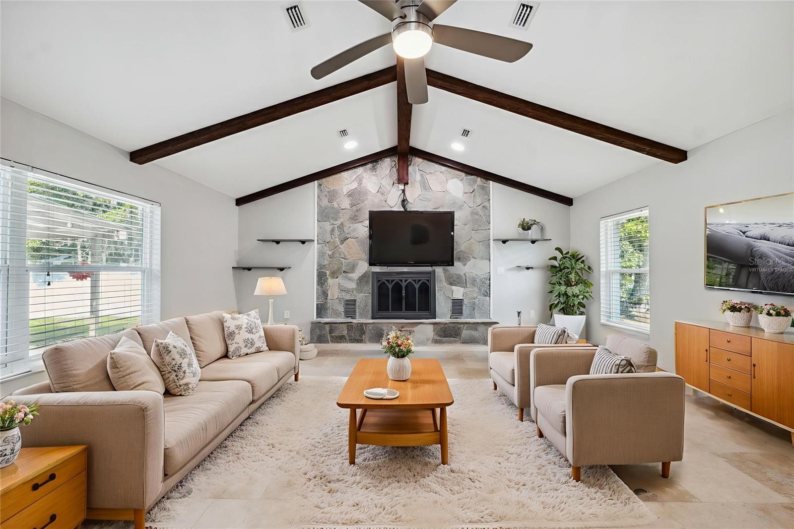 Uma ou mais fotos foram praticamente encenadas. Passe por portas da frente dupla em um hall de ladrão acolhedores que se abre para um espaço deslumbrante, cheio de caráter e conforto, tudo em pouco menos de meio hectare que oferece espaço para respirar e usabilidade. A expansiva sala de estar apresenta tetos altos da catedral com vigas de madeira expostas, uma impressionante lareira de pedra e piso de azulejos que corre por toda a casa. As portas de vidro deslizantes levam a uma marquise de azulejos forrada com janelas, trazendo luz natural e oferecendo um espaço perfeito para relaxar ou entreter. O layout de conceito aberto conecta a área de estar a um espaço generoso de jantar e uma cozinha lindamente remodelada, onde armários azuis escuros são combinados com bancadas de granito reluzentes, utensílios de aço inoxidável e um armário de despensa para armazenamento extra. Ambos os quartos são cuidadosamente projetados-a suíte primária de grandes dimensões inclui uma janela grande, portas deslizantes para a marquise, um closet e um banheira privilegiada moderna com vaidade dupla, chuveiro com barragens de vidro, um chuveiro de chuva e um banco. O segundo quarto possui armários embutidos duplos, e o segundo banheiro completo foi totalmente atualizado para combinar com a sensação elegante e elegante do resto da casa. Lá fora, o quintal é fechado com uma cerca de vinil e inclui um pátio com uma pérgola, além de um galpão para armazenamento adicional. Uma garagem para entrada lateral e um estacionamento extra adicionam conveniência, e o telhado tem apenas quatro anos. Este local oferece mais do que apenas uma linda casa-fica a menos de 3 km do Hunter Springs Park, conhecido por áreas de caiaque, exibição de peixe-boi e natação cristalina. A Three Sisters Springs, um refúgio natural de primavera e vida selvagem de renome mundial, fica a apenas 3,5 quilômetros de distância. O Crystal River Preserve State Park, um paraíso para caminhadas, observação de pássaros e atividades aquáticas, fica a apenas 6 km de distância. Para os passageiros, o Suncoast Parkway (SR 589) fica a apenas 13 quilômetros da propriedade, fornecendo acesso direto a Tampa e arredores, evitando rodovias congestionadas - tornando -a uma escolha prática para aqueles que desejam uma vida costeira pacífica com uma rota suave para a vida da cidade.