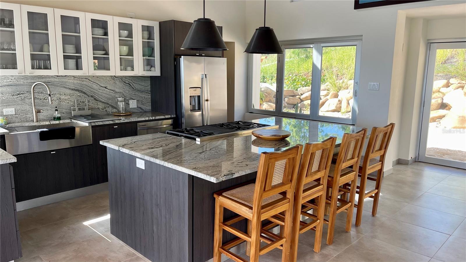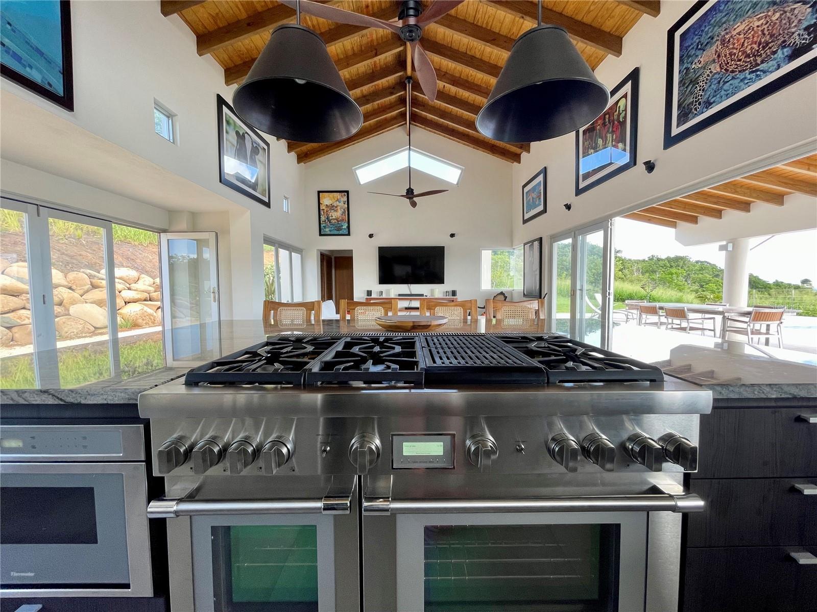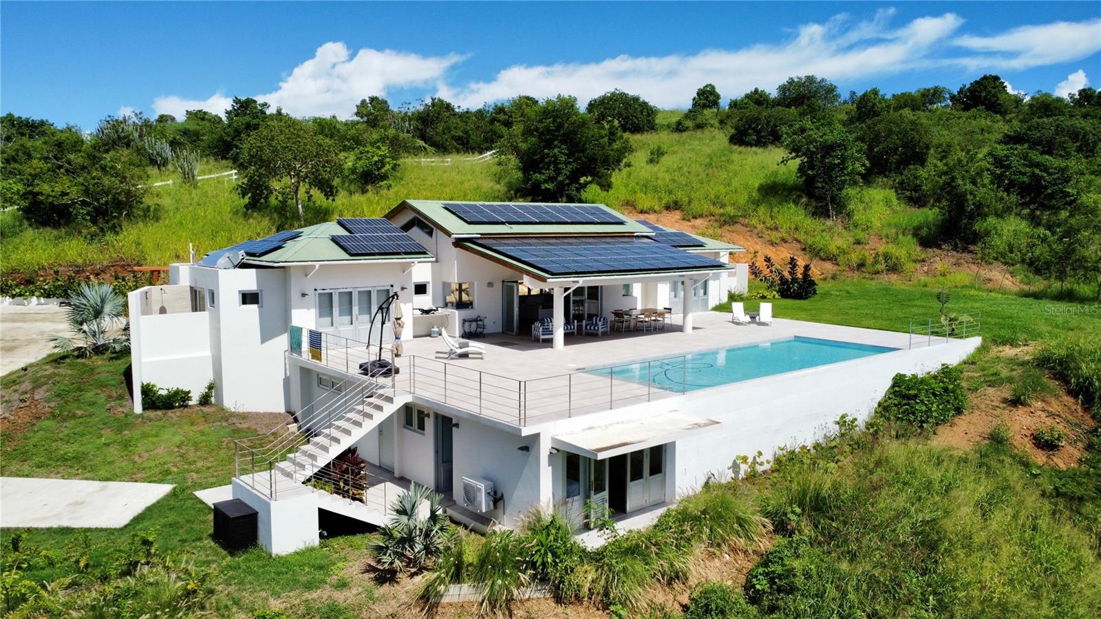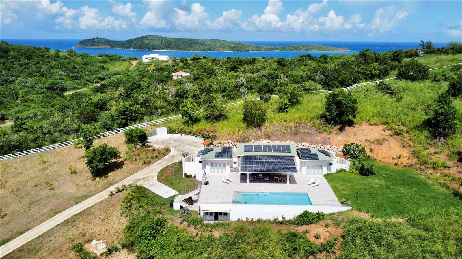 Esta casa recém-construída oferece vistas deslumbrantes da Baía de Las Pelas e do lado leste da bela Ilha Culebra. A propriedade ocupa uma área de cinco acres na cobiçada Northview Estates, que compartilha um cais comunitário de 120 pés e fica a apenas 1,6 km de Zoni Beach. Os grandes interiores dos quartos têm tetos altos abobadados, área de estar em plano aberto e fantásticas vistas para o mar. Possui portas de vidro retráteis que se abrem para o amplo pátio e piscina, ideais para entretenimento ou para relaxar e apreciar todas as belíssimas paisagens. A cozinha está equipada com eletrodomésticos topo de gama, incluindo uma gama Thermador de 6 bocas com grelhador. Todos os quartos têm ar condicionado, casas de banho privativas com lindos chuveiros exteriores e vistas magníficas. Esta nova casa é autossuficiente, com 56 painéis solares, três baterias Tesla e uma cisterna de 50.000 galões com sistema de filtragem de última geração. A casa também está conectada ao sistema municipal de água e conta com medição líquida caso seja necessária mais eletricidade.