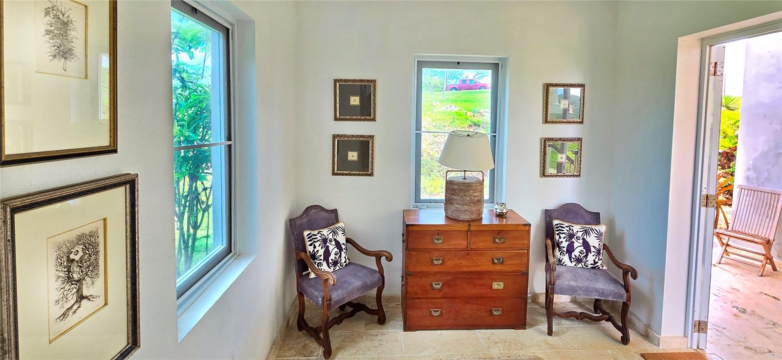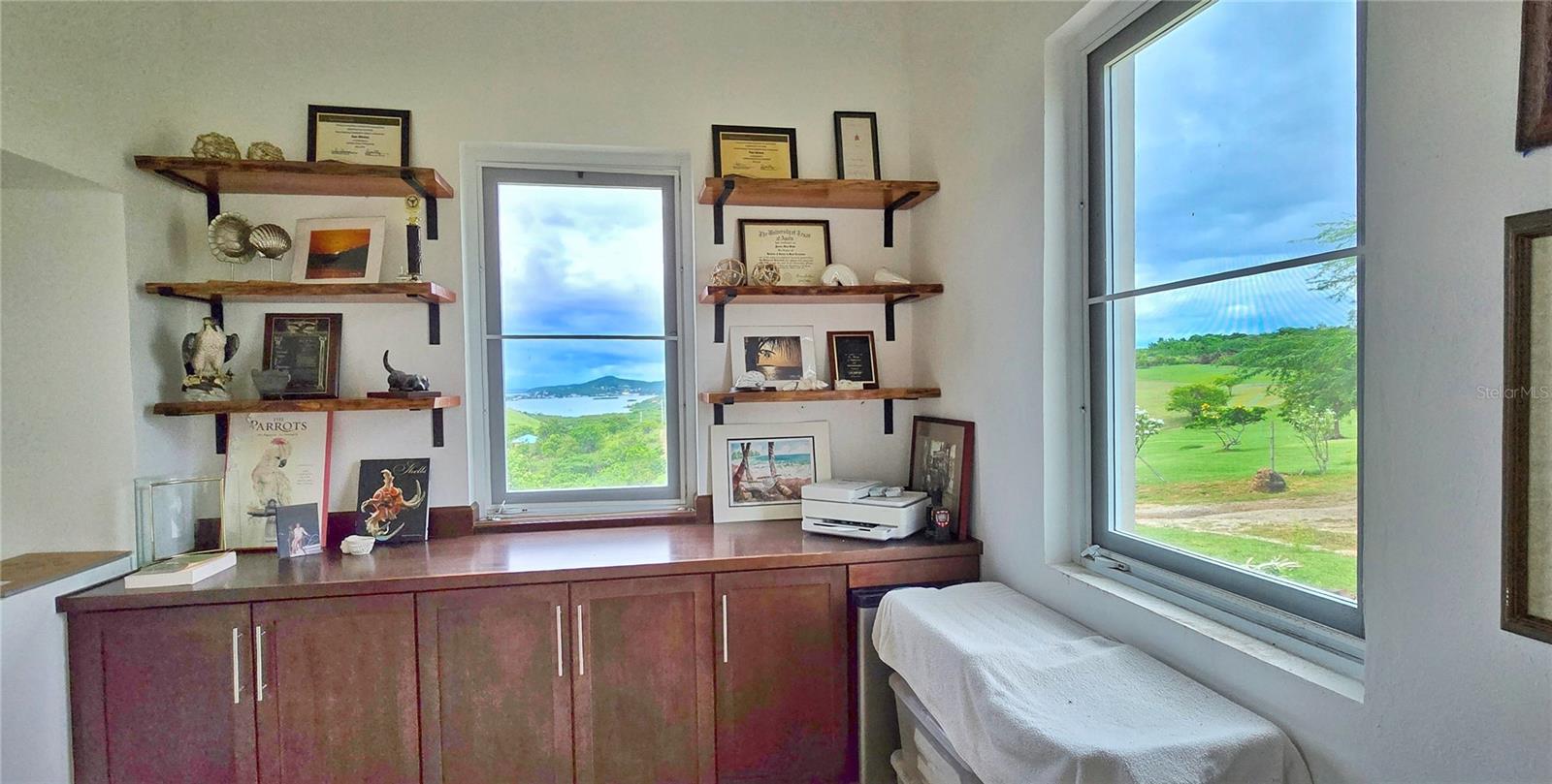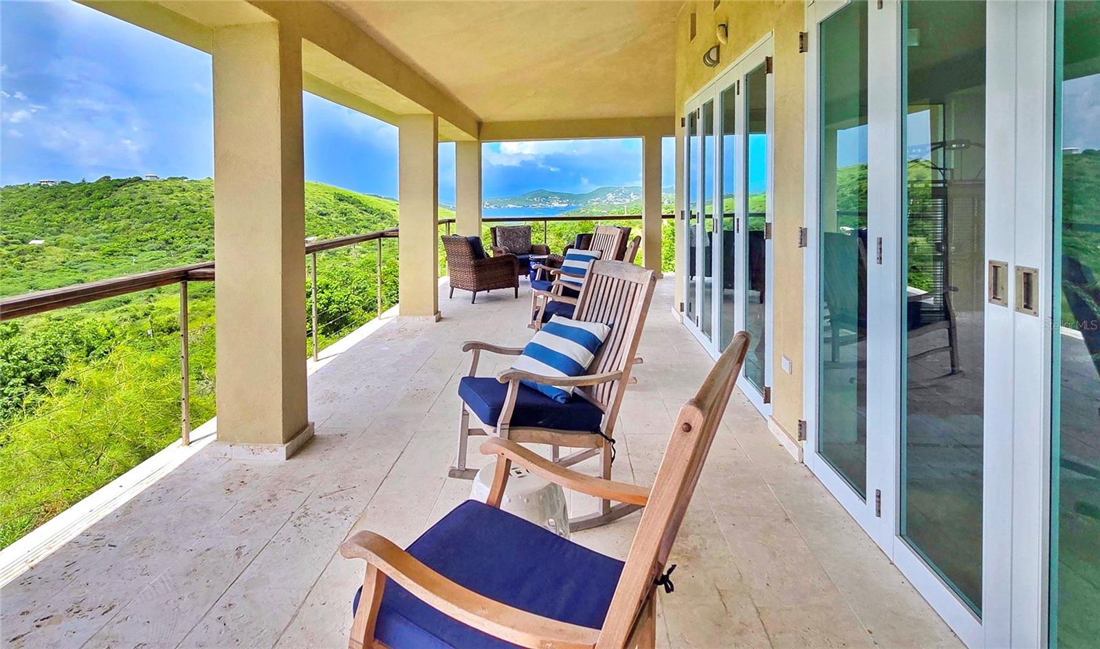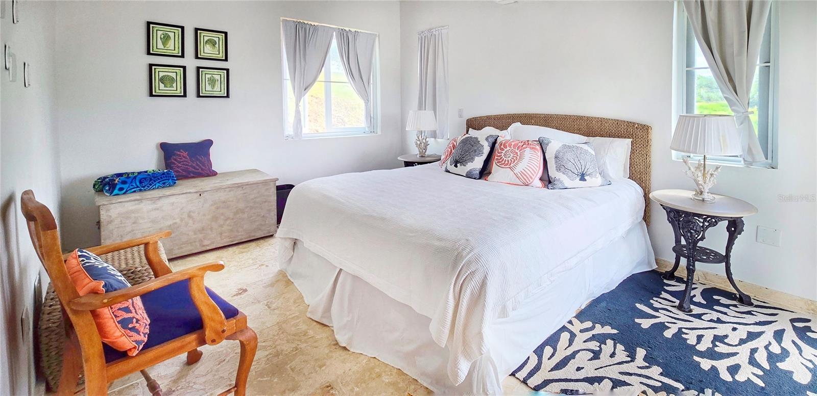 Esta propriedade de 5 hectares está dividida em dois edifícios ligados por um alpendre. O edifício principal possui alpendres cobertos que oferecem vistas panorâmicas da baía e das montanhas circundantes. Possui cozinha e sala em open space, com pé direito alto e ar condicionado para refrescar o espaço nos meses quentes de verão. Portas duplas abrem para a varanda com lindas vistas, churrasqueira e área de jantar ao ar livre ideal para entretenimento. A espaçosa cozinha tem um bar molhado. No andar de cima, o arejado quarto principal e o banheiro principal têm varandas privativas que permitem apreciar a paisagem. Um segundo edifício abriga os dois quartos de hóspedes com grandes armários e banheiro completo com box amplo. Este edifício também oferece aos hóspedes uma pequena área de cozinha. No piso inferior encontra-se uma lavandaria com casa de banho completa e um armário com amplo espaço para roupa de cama. Uma grande garagem tem espaço suficiente para 4 carros e muita arrumação. Um elevador vertical Legacy Cargo facilita o acesso ao último andar a partir da garagem.