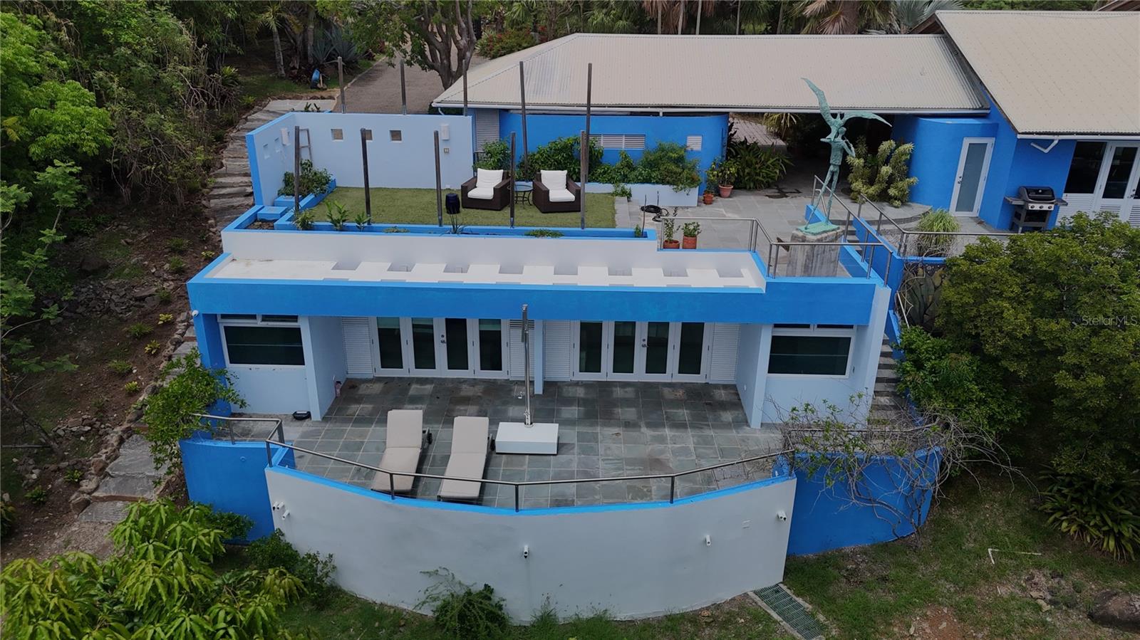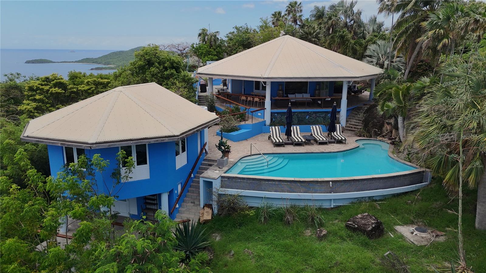 Villa Navillus Sur, Las Quintas #3, está no topo de Punta Melones com vistas de 300 graus da grande ilha de Porto Rico, Luis Pena, Vieques, St Thomas e, em um dia claro, St Croix, mais de 55 milhas distantes. A propriedade, meticulosamente paisagística, com mais de 25 variedades de palmeiras de todo o mundo, possui uma espetacular teto abobadado em um grande salão com embrulho em volta da varanda, cozinha de forno duplo, armário de guitarra e espaço para dançar. Este lugar é o paraíso dos músicos. Saia para o deck de ioga astro-Turfado e a erva e a horta e a horta e a horta e você pode assistir ao pôr do sol espetacular que apenas Culebra sabe. Caminhe para o leste e deite -se no deck das estrelas, uma plataforma de teca e futon e observe os planetas e a lua subindo, em meio à Via Láctea claramente visível - durma lá durante os chuveiros de meteoros e acorde para o nascer do sol sobre o porto de Ensenada. Existem 4 quartos: uma suíte master na piscina, com jacuzzi, chuveiro de clarabóia e vistas panorâmicas - o sol nasce à esquerda da cama e se coloca à direita; um quarto completo em suíte abaixo da suíte master com deck privado; Dois quartos lado a lado da suíte com vista para os jardins e a reserva natural de Luis Pena, estão abaixo de um lance de escada para a máxima privacidade - as crianças podem dormir enquanto a música toca acima. A ilha de Culebra em si é uma pequena ilha idílica, localizada a cerca de 17 quilômetros a leste de Porto Rico, a 20 quilômetros a oeste de St. Thomas das Ilhas Virgens dos Estados Unidos. Conhecida por sua beleza natural intocada, Culebra é um refúgio para os amantes da natureza, entusiastas da praia e buscadores de aventura. Sua atmosfera tranquila, águas cristalinas e praias intocadas o tornam um dos destinos mais procurados do Caribe. Esteja você procurando relaxar nas praias de classe mundial, explorar maravilhas subaquáticas ou mergulhar na natureza, a Culebra oferece uma experiência inesquecível do Caribe. Las Quintas, a 1,6 km da cidade, sem tráfego e tranquilo como pode ser, é um dos locais mais procurados em Culebra, uma gema costeira rara que oferece acesso direto às águas mais claras da ilha e recifes de coral vibrantes, que se reúnem em todo o mundo. A praia, parte do canal Luis Peña Reserve Nature Preserve, frentes águas protegidas que não permitem a ancoragem de barcos nem pesca. Melones Beach, literalmente, possui os mais vibrantes recifes de coral, formações rochosas subaquáticas, grama do mar, repleta de uma variedade de vida marítima, peixe colorido, tartarugas marinhas, raios de picada, manati e muito mais. Em relação às praias da ilha de Culebra e a Watersports La Quinta #3 fica a 11 quilômetros de todas as praias de Culebra, incluindo, mas não se limitando às seguintes praias: Melones Beach - 1/4 de milha; Datillas Beach - 1 1/4 milhas; Flamenco Beach - 3 1/4 milhas; Tamarindo Beach - 3 1/4 milhas; RESACA Praia - 3/4 milhas (3/4 milhas a pé); Ponto do soldado - 3 1/2 milhas; Carlos Rosario - 4 milhas (3/4 milhas a pé); Brava Beach - 4 1/2 milhas (3/4 milhas a pé). Em suma, Navillus Sur é uma das propriedades de luxo mais desejadas na ilha de Culebra. Uma casa para apreciar o melhor da vida do Caribe. Este lugar precisa ser visto para se acreditar.