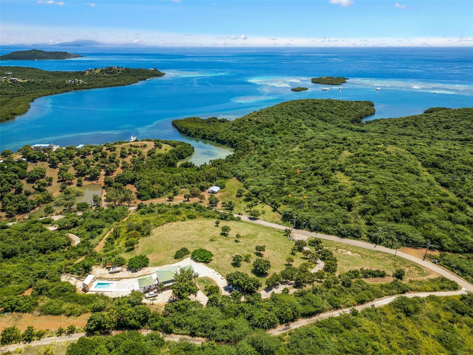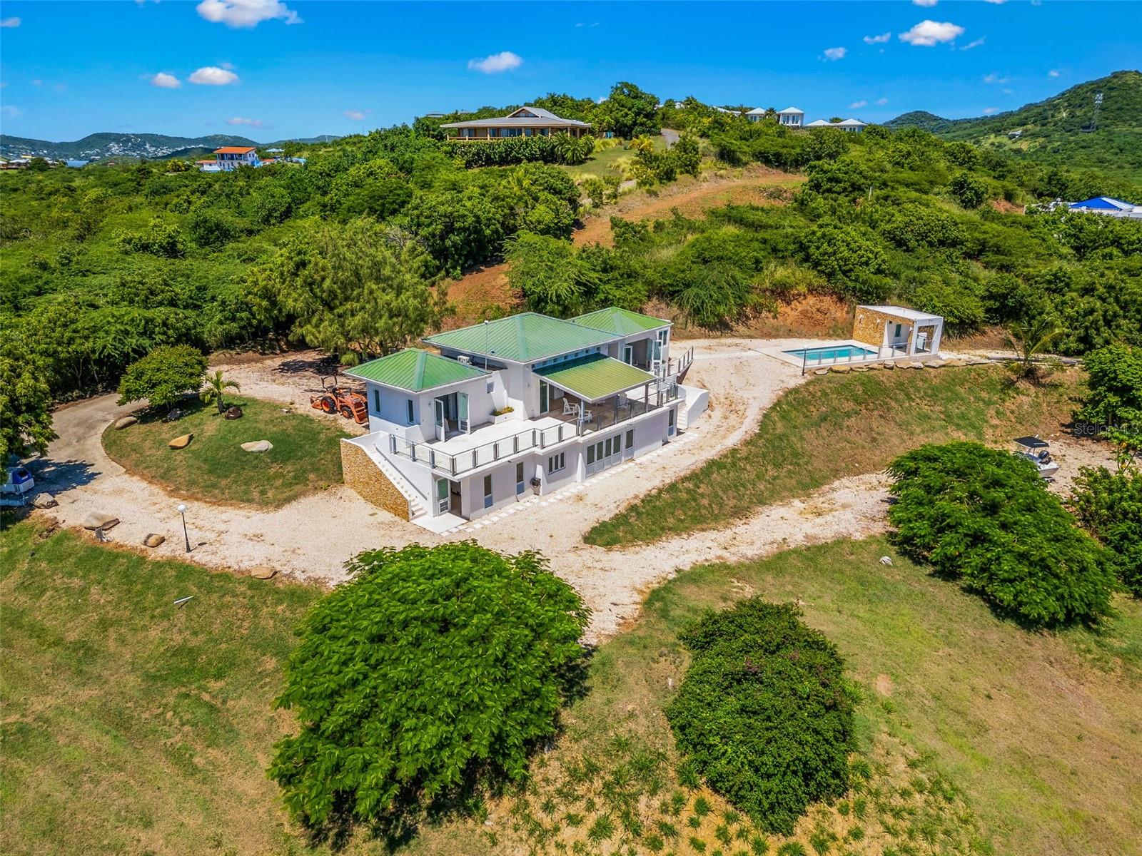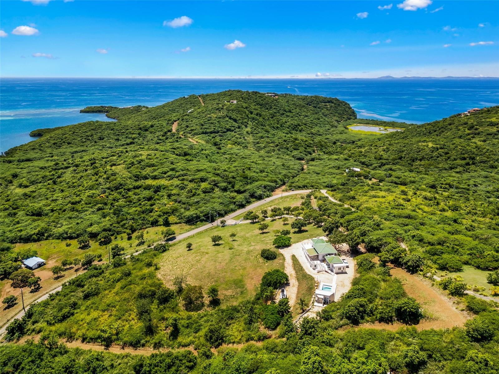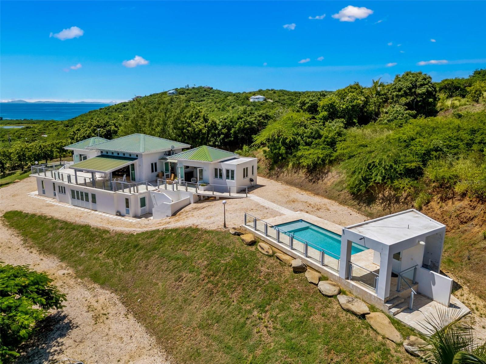 Lote de Culebra 21 Las Pelas Propriedade única e espetacular localizada em um dos pontos mais altos na costa leste da ilha de Culebra. Desfrute de vistas deslumbrantes do oceano e da montanha do nascer ao pôr do sol. Esta propriedade de 4 camas de 5 banheiros fica em um belo lote de 5 acres com uma construção de 3000 pés quadrados. Vistas panorâmicas desobstruídas, grandes janelas e tetos altos definem um estilo de vida de elegância relaxada. No nível principal, existem dois quartos privados, sala de estar, cozinha e varanda lado a lado. O nível mais baixo tem dois quartos, 2 banheiros, garagem e espaço de armazenamento. Piscina de água salgada com aquecedor de água, gerador completo, cisterna de água de 600 galões e serviço de água AAA.