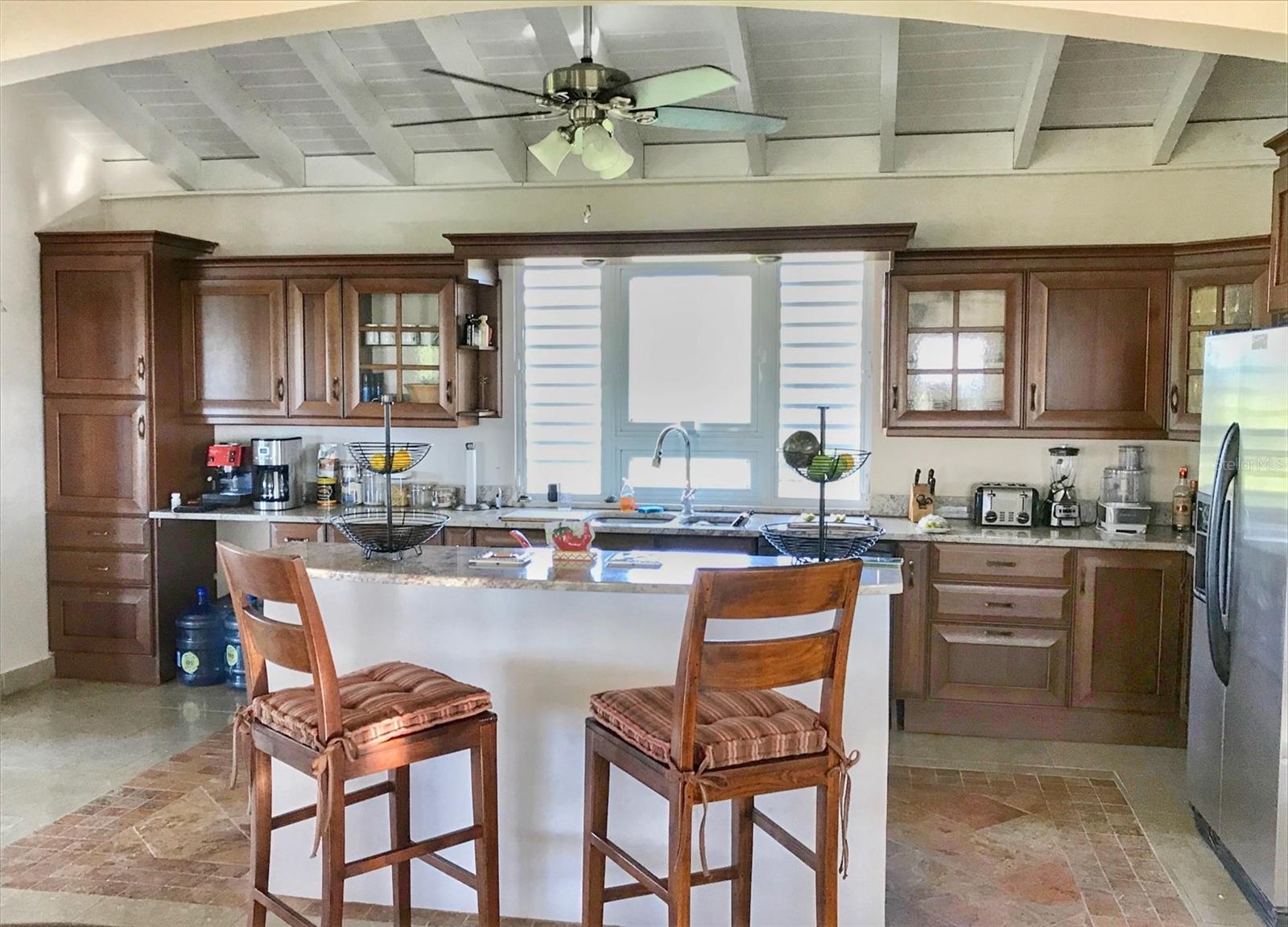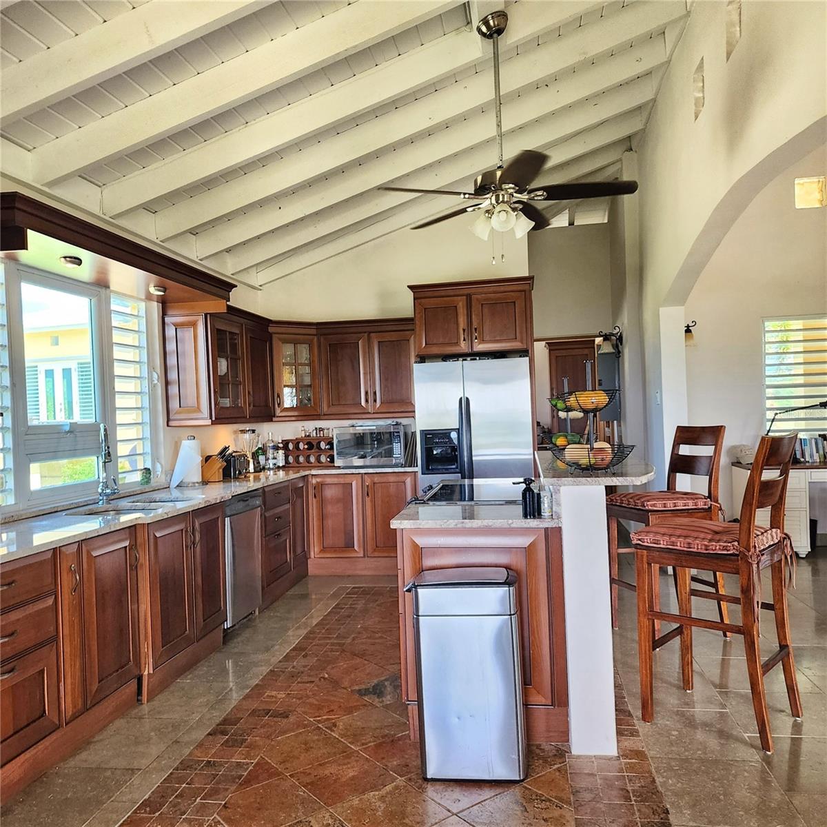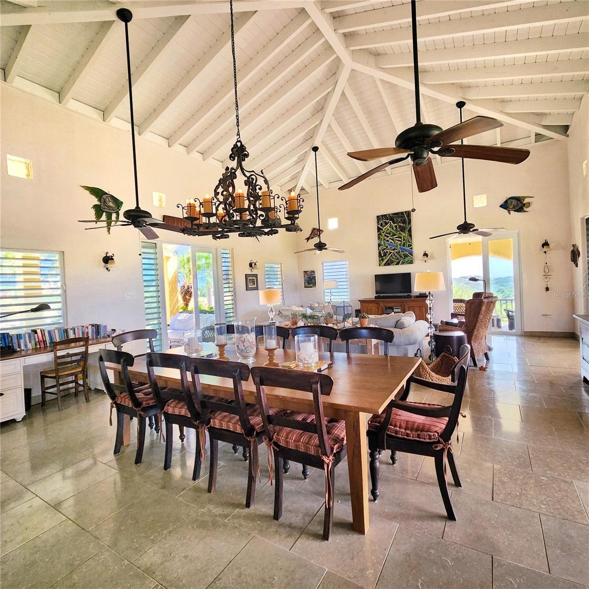 Esta extraordinária propriedade de 5 acres celebra a vida costeira com seu layout de três edifícios, mostrando a elegância atemporal da arquitetura do Caribe com seus tetos altos e telhados distintos de 4 arremessos. A generosa estrutura principal ancora o composto com seu atencioso design de dois níveis. O nível superior flui sem esforço da cozinha através de uma elegante sala de estar cheia de luz, onde portas de vidro cercam a estrutura, enquadrando perfeitamente as vibrantes cores tropicais da ilha enquanto convidam a refrescante arezes cruzadas para fluir naturalmente em toda a casa. No nível mais baixo, o estilo de dois quartos, fornece acomodações confortáveis com conveniência e privacidade compartilhadas. A magnífica varanda principal oferece amplo espaço para grandes reuniões e jantar ao ar livre, enquanto as varandas íntimas do quarto criam configurações perfeitas para o pôr do sol romântico e a contemplação silenciosa. A estrutura dedicada da suíte master fornece privacidade final, onde você pode acordar com vistas para o oceano desde a sua cama. A terceira estrutura abriga dois quartos adicionais, cada uma se abrindo em varandas particulares que oferecem espaços íntimos para o café da manhã ou o relaxamento da noite, para que seus visitantes desfrutem do equilíbrio perfeito de conforto e privacidade.
