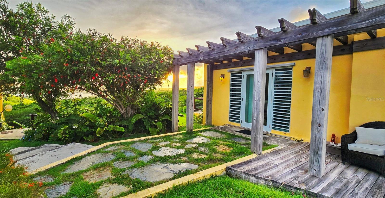 Varanda, portas francesas, jardim, persianas de furacões, grelha ao ar livre, sarjetas, armazenamento