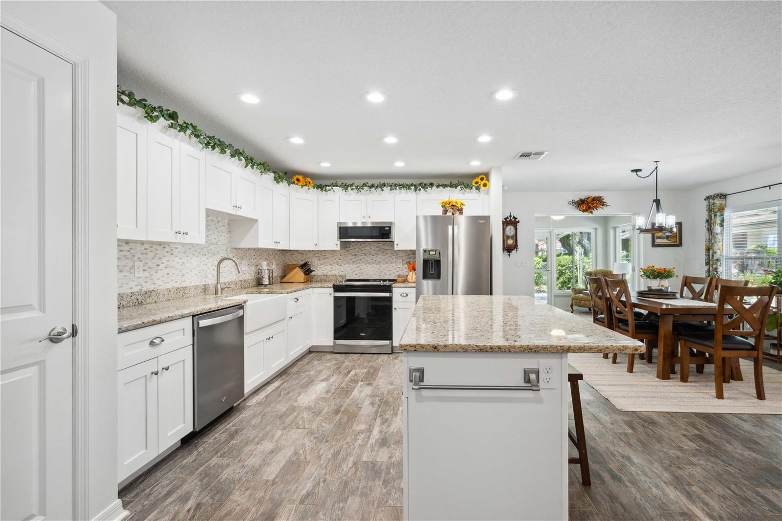 Bem -vindo à sua casa de sonho no coração de Dade City! Esta impressionante casa de 4 quartos e 2 banheiros oferece 1.953 pés quadrados de espaço de estar lindamente criado. Entre para descobrir uma planta baixa aberta, com pisos de ladrilhos por toda parte e uma cozinha aberta brilhante que vem completa com uma barra de café da manhã, utensílios de aço inoxidável, um backsplash chique, uma despensa e bancadas de granito luxuosas. O quarto principal é um verdadeiro retiro, com um banheiro privativo com um chuveiro e um amplo closet. As conveniências adicionais incluem uma espaçosa sala de lama e uma lavanderia dedicada escondida para maior privacidade. Relaxe na encantadora sala da Flórida ou entre no quintal sereno, onde uma linda cachoeira, pérgola e flores vibrantes criam uma fuga pacífica. O quintal também possui um galpão de armazenamento com a Electric para todas as suas necessidades. Além disso, você está a poucos passos da trilha resistente e a uma curta caminhada do centro de Dade City, onde pode desfrutar de uma variedade de lojas e restaurantes. Além disso, esta casa fica a 10 minutos a pé das escolas de ensino fundamental, médio e médio e a apenas 15 a 20 minutos a pé do recinto de feiras! Não perca esta oportunidade incrível - agende uma visualização hoje!