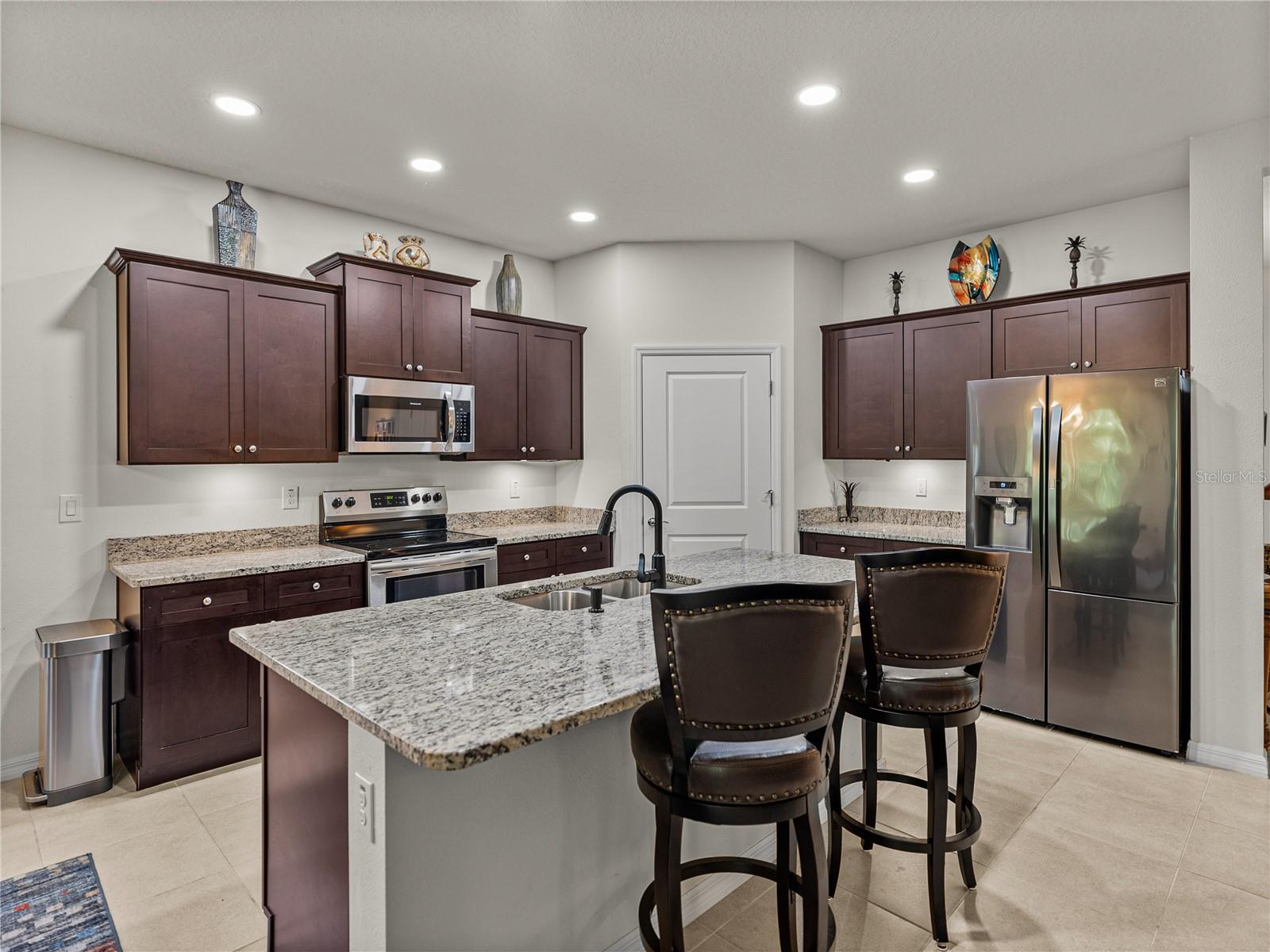 Aninhado em Eastpointe, uma seção fechada do lago Jovita, este encantador 3 quartos, 2 banheiros, 2 carros, oferece um cenário pacífico e sem saída com um cenário arborizado e sem vizinhos traseiros. O exterior lindamente paisagístico e a entrada frontal coberta proporcionam uma primeira impressão acolhedora. No interior, uma planta baixa aberta e convidativa se desenrola com o streaming de luz natural e o piso de ladrilho fácil de manter em todas as principais áreas de estar. A espaçosa sala de estar flui perfeitamente para a área de jantar, cozinha localizada centralmente e para o lanai exibido através de portas de vidro deslizantes- criando um espaço sem esforço para a vida e o entretenimento diárias. A cozinha é cuidadosamente projetada com bancadas em granito, uma ilha central com assentos de barra de café da manhã, iluminação embutida, um pacote de aparelhos de aço inoxidável de 4 peças e armazenamento generoso de despensa. Muito bem escondido dos quartos secundários, a suíte primária possui carpete, um banheiro privativo com pias duplas, armário de água separado e um chuveiro de walk-in fechado por vidro. É bem equipado com um espaçoso closet. Os quartos 2 e 3 estão divididos e estão situados perto da frente da casa para obter maior privacidade e compartilhar o segundo banheiro completo, que inclui uma combinação de banheira/chuveiro. A lavanderia tem prateleiras extras e está convenientemente localizada perto da garagem e dos quartos secundários. Ao ar livre, relaxe no lanai coberto e rastreado, completo com ventiladores de teto duplo e vistas pacíficas da vista arborizada exuberante além. Este espaço é ideal para desfrutar do seu café da manhã ou relaxamento fácil da noite. Aproveite o estilo de vida, o luxo e a segurança do Lake Jovita, um principal condomínio fechado que oferece dois campos de golfe do campeonato, quadras de tênis, um centro de fitness, trilhas cênicas, um clube vibrante, quadras de pickleball, um playground, um parque de cães e muito mais! Agende sua exibição particular hoje!