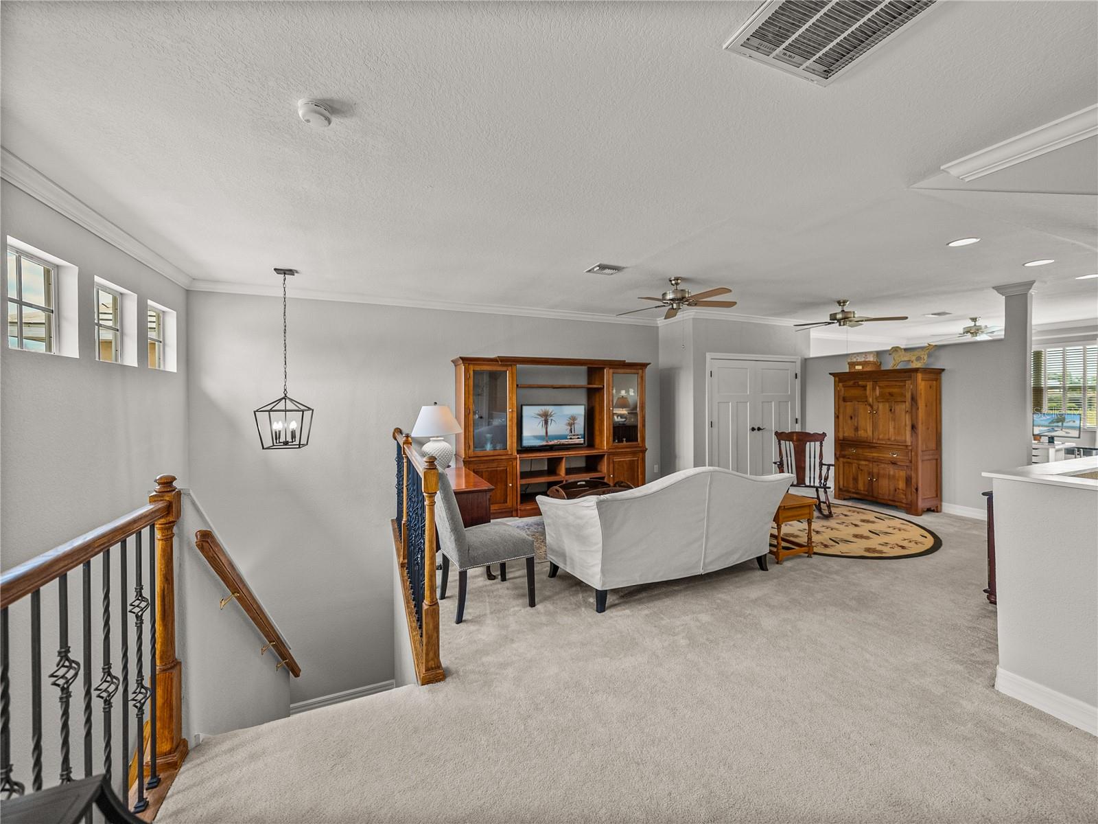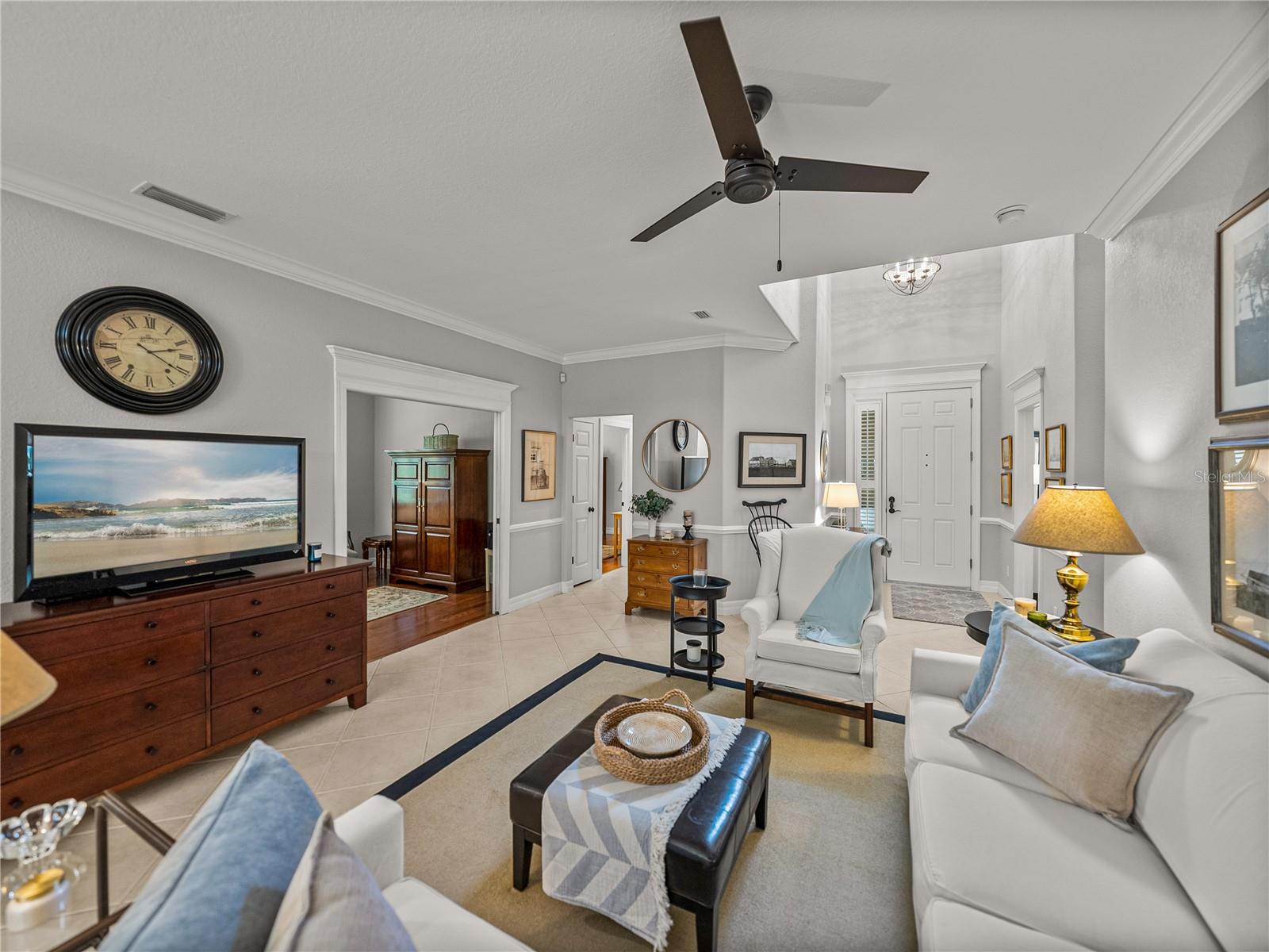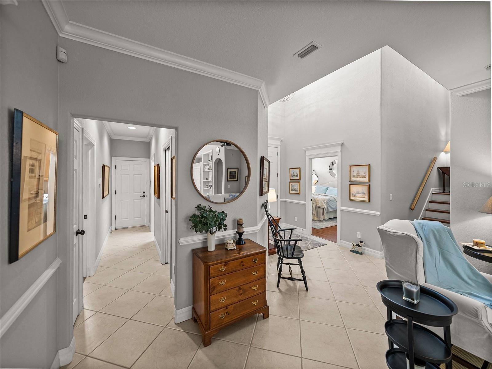 MELHORIA DE PREÇO! Uma vida luxuosa e sem esforço o aguarda nesta ampla villa de 3 quartos, 4 banheiros e 2 andares, situada em um campo de golfe premium em The Heathers at Lake Jovita. A atratividade do meio-fio está repleta de paisagismo exuberante e maduro, um pátio fechado, uma entrada coberta e uma espaçosa garagem para 3 carros. Tetos altos, pintura interna fresca, sancas, iluminação atualizada, embutidos personalizados e piso de cerâmica de fácil manutenção dão o tom para uma vida refinada no interior. O design de conceito aberto flui perfeitamente da generosa sala de estar para a área de jantar formal e para a cozinha bem equipada. Aqui, bancadas de granito, assentos no balcão de café da manhã, despensa, eletrodomésticos de aço inoxidável, backsplash decorativo, fogão e uma sala de jantar aconchegante com vista para o quintal se combinam para criar uma experiência culinária funcional e bonita. Ao lado da sala de estar, um escritório dedicado com piso de madeira e portas duplas oferece o espaço perfeito para leitura ou trabalho remoto. Todos os três quartos têm piso de madeira e estão cuidadosamente localizados no primeiro andar, separados um do outro. A suíte principal é um retiro tranquilo com piso de madeira rico, sancas, closets duplos e um luxuoso banheiro privativo com pias duplas, box amplo e vaso sanitário. O quarto 2 possui banheiro privativo próximo à frente da casa, ideal para visitantes, enquanto o quarto 3 está localizado no lado oposto da casa, próximo a um terceiro banheiro completo. Uma escada decorativa de ferro forjado e madeira leva a um segundo andar versátil. Um grande loft aberto com três ventiladores de teto, uma sala bônus (um espaço de escritório privativo perfeito) com varanda privativa com vistas deslumbrantes do campo de golfe, um recanto de escritório embutido, armários de armazenamento generosos e um quarto banheiro completo com banheira/chuveiro combinado oferece flexibilidade infinita para entretenimento, hobbies ou vida multigeracional. Ao ar livre, a varanda coberta e protegida é cercada por um paisagismo maduro para maior isolamento, criando um oásis tranquilo no quintal. The Heathers é um enclave livre de manutenção dentro da comunidade altamente desejável e fechada (com guarda 24 horas) do Lago Jovita, oferecendo comodidades de classe mundial, incluindo dois campos de golfe profissionais de 18 buracos, um parque comunitário, quadras de tênis, pickleball, uma academia, trilhas panorâmicas para caminhada e um clube impressionante com restaurantes e eventos sociais. Não perca a oportunidade de experimentar esta casa excepcional; ligue hoje para sua exibição privada.