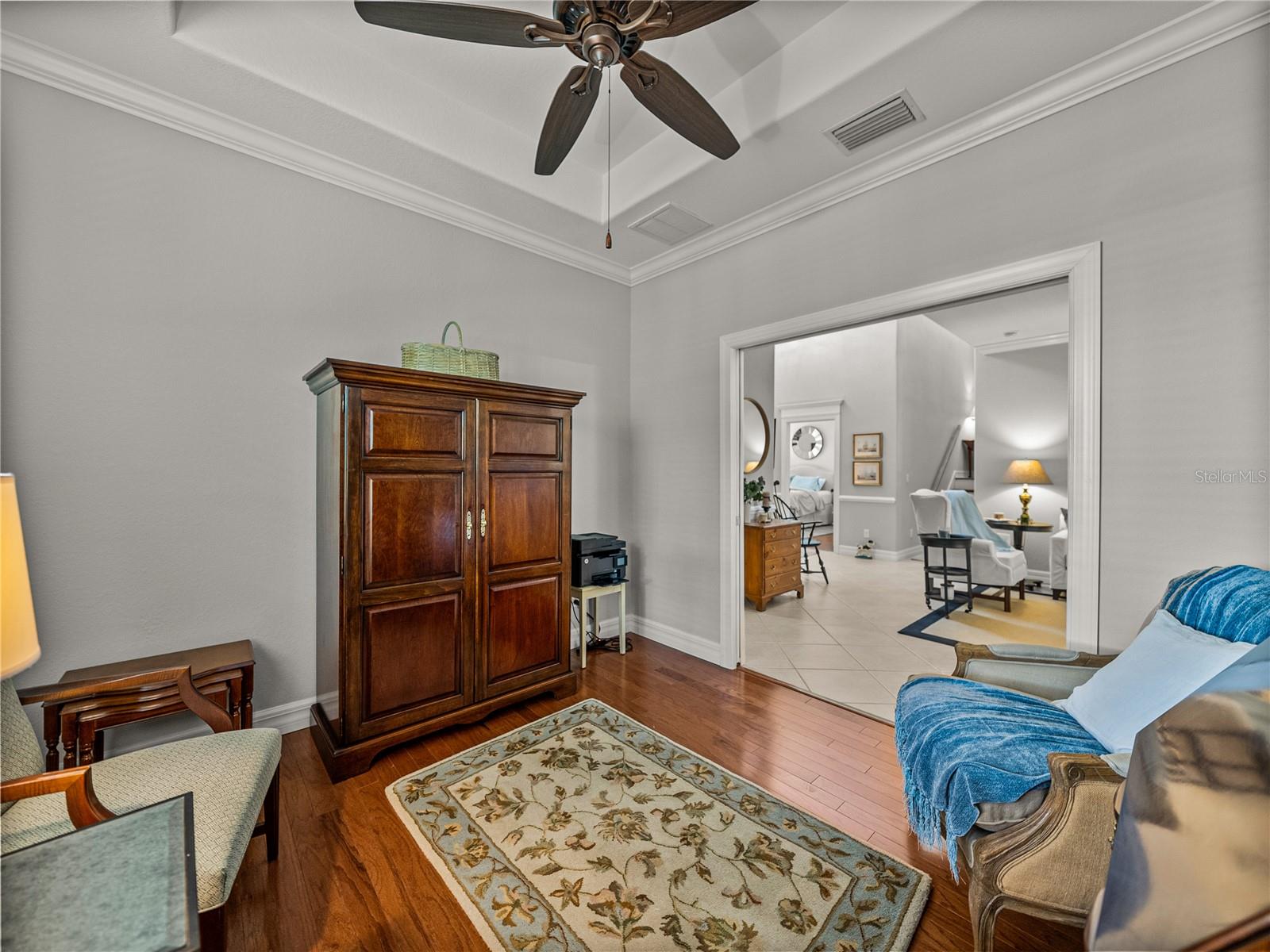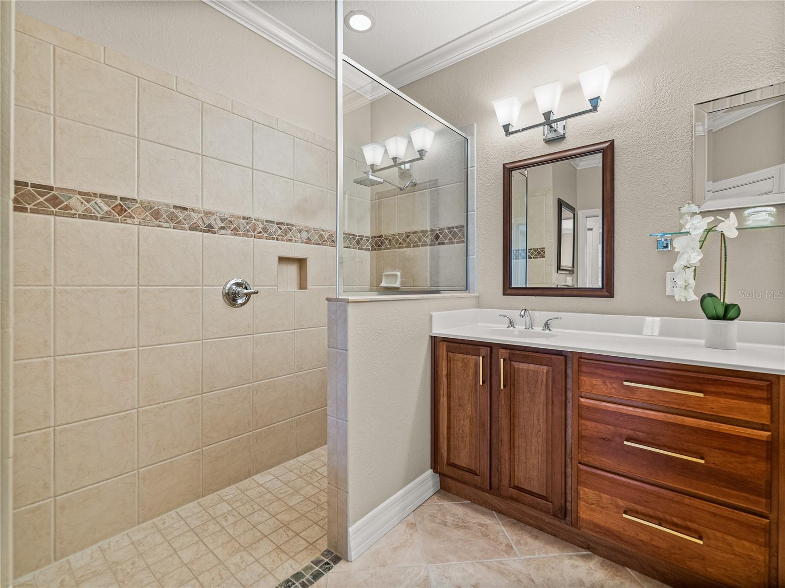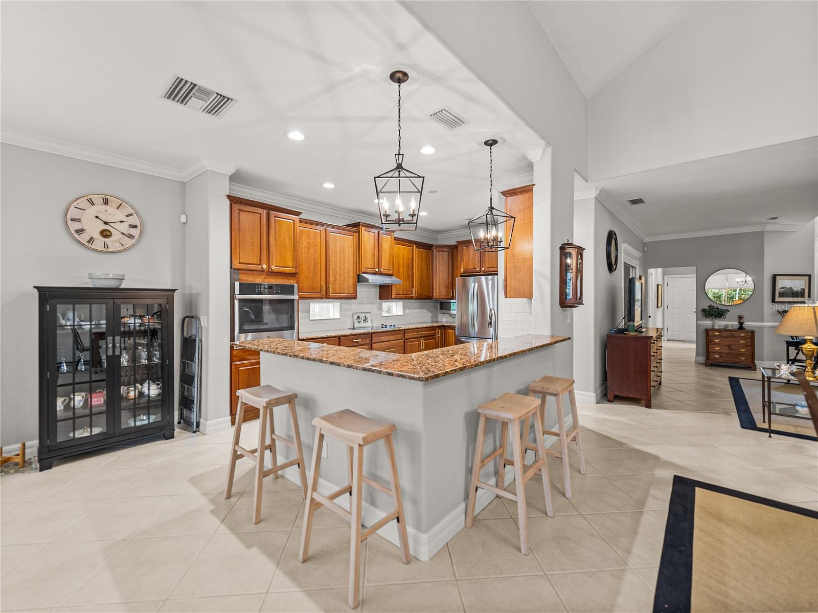 MELHORIA DE PREÇO! Uma vida luxuosa e sem esforço o aguarda nesta ampla villa de 3 quartos, 4 banheiros e 2 andares, situada em um campo de golfe premium em The Heathers at Lake Jovita. A atratividade do meio-fio está repleta de paisagismo exuberante e maduro, um pátio fechado, uma entrada coberta e uma espaçosa garagem para 3 carros. Tetos altos, pintura interna fresca, sancas, iluminação atualizada, embutidos personalizados e piso de cerâmica de fácil manutenção dão o tom para uma vida refinada no interior. O design de conceito aberto flui perfeitamente da generosa sala de estar para a área de jantar formal e para a cozinha bem equipada. Aqui, bancadas de granito, assentos no balcão de café da manhã, despensa, eletrodomésticos de aço inoxidável, backsplash decorativo, fogão e uma sala de jantar aconchegante com vista para o quintal se combinam para criar uma experiência culinária funcional e bonita. Ao lado da sala de estar, um escritório dedicado com piso de madeira e portas duplas oferece o espaço perfeito para leitura ou trabalho remoto. Todos os três quartos têm piso de madeira e estão cuidadosamente localizados no primeiro andar, separados um do outro. A suíte principal é um retiro tranquilo com piso de madeira rico, sancas, closets duplos e um luxuoso banheiro privativo com pias duplas, box amplo e vaso sanitário. O quarto 2 possui banheiro privativo próximo à frente da casa, ideal para visitantes, enquanto o quarto 3 está localizado no lado oposto da casa, próximo a um terceiro banheiro completo. Uma escada decorativa de ferro forjado e madeira leva a um segundo andar versátil. Um grande loft aberto com três ventiladores de teto, uma sala bônus (um espaço de escritório privativo perfeito) com varanda privativa com vistas deslumbrantes do campo de golfe, um recanto de escritório embutido, armários de armazenamento generosos e um quarto banheiro completo com banheira/chuveiro combinado oferece flexibilidade infinita para entretenimento, hobbies ou vida multigeracional. Ao ar livre, a varanda coberta e protegida é cercada por um paisagismo maduro para maior isolamento, criando um oásis tranquilo no quintal. The Heathers é um enclave livre de manutenção dentro da comunidade altamente desejável e fechada (com guarda 24 horas) do Lago Jovita, oferecendo comodidades de classe mundial, incluindo dois campos de golfe profissionais de 18 buracos, um parque comunitário, quadras de tênis, pickleball, uma academia, trilhas panorâmicas para caminhada e um clube impressionante com restaurantes e eventos sociais. Não perca a oportunidade de experimentar esta casa excepcional; ligue hoje para sua exibição privada.