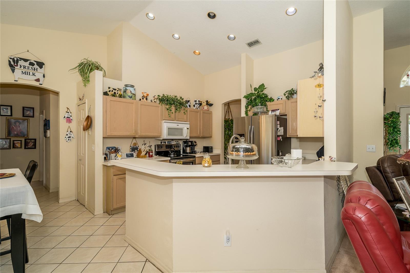 LINDA CASA COM PISCINA 3/2/2 construída por Hampton Homes na popular comunidade de Whispering Oaks Estates. A partir do momento de sua chegada, você certamente notará muitos recursos maravilhosos, começando pelo apelo geral do bairro e pelo quintal com paisagismo imaculado. À noite, a frente da casa é enriquecida com lindas luzes solares que piscam como velas - tão lindas! Há uma bela porta de entrada de vidro gravado para cumprimentá-lo ao entrar na entrada de azulejos e uma grande sala com tetos volumosos, tão artisticamente decorados e com vistas instantâneas da área da piscina traseira - um ótimo lembrete de que aqui você pode desfrutar da verdadeira vida na Flórida! A cozinha totalmente equipada tem um balcão para café da manhã e uma área de jantar para refeições casuais! Depois, do outro lado da cozinha, você encontrará uma elegante sala de jantar formal, ótima para diversão durante todo o ano. Há uma espaçosa lavanderia interna com acesso direto à ampla garagem para 2 carros. Os quartos são divididos para maior privacidade, e o banheiro de hóspedes também serve como banheira de piscina. O quarto principal tem porta de acesso direto à piscina e está lindamente decorado. O banheiro principal possui piso de cerâmica, 2 pias, banheira de jardim e chuveiro grande. A piscina é cercada por uma gaiola telada, e há também uma área coberta, ótima para grelhar e relaxar à sombra. Whispering Oaks Estates é uma comunidade planejada com estradas privadas e um centro recreativo. As taxas anuais do HOA são de apenas $ 264. No fechamento, o sortudo Comprador receberá um ANO DE GARANTIA DE CASA como presente do Vendedor! Exibida com hora marcada, esta casa de luxo AGORA ESTÁ DISPONÍVEL POR US$ 337.500 - UAU!