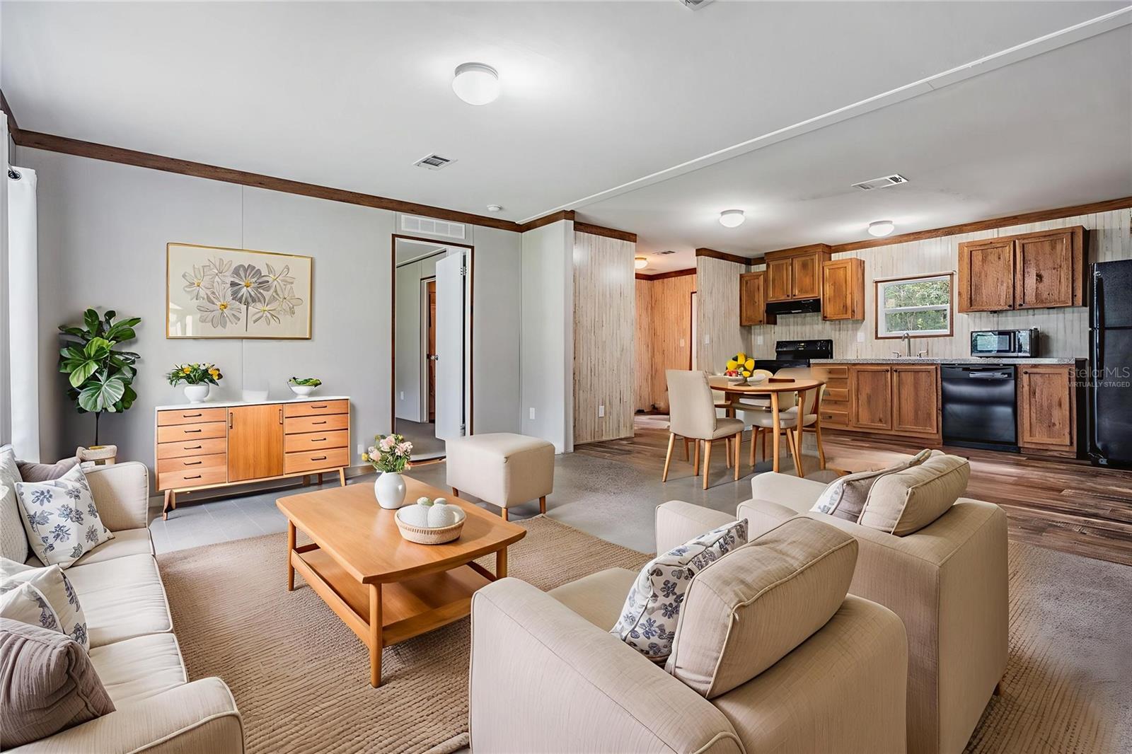 Uma ou mais fotos foram praticamente encenadas. Melhoria de preços! Bem -vindo ao 34930 Emily Drive em Beautiful Dade City! Esta casa manufaturada de 2023, fica quase meio hectare na pacífica comunidade do Talisman North. Oferecendo 3 quartos e 2 banheiros, a casa possui um layout aberto com piso de vinil na cozinha e banheiros e carpete aconchegante nas principais áreas de estar e quartos. A cozinha brilhante e de comer inclui um fogão a cozinha, microondas, lava-louças e geladeira, todos com vista para a espaçosa sala de estar/família-perfeita para relaxar ou divertir. Novo ar central, ventiladores de teto por toda parte e uma lavanderia dedicada, esta casa é confortável e conveniente. O lote grande, cercado e fechado, juntamente com a garagem de 4 carros, oferece muito espaço para vida e estacionamento ao ar livre. Novo campo de drenagem séptica. Dois galpões de volta para armazenamento adicional. Localizado em um cenário tranquilo, mas perto das comodidades da cidade, esta casa pronta é uma mistura perfeita de charme moderno e funcionalidade cotidiana. Sem HOA e sem taxas de CDD - apenas uma vida fácil da Flórida! Agende sua exibição particular hoje!