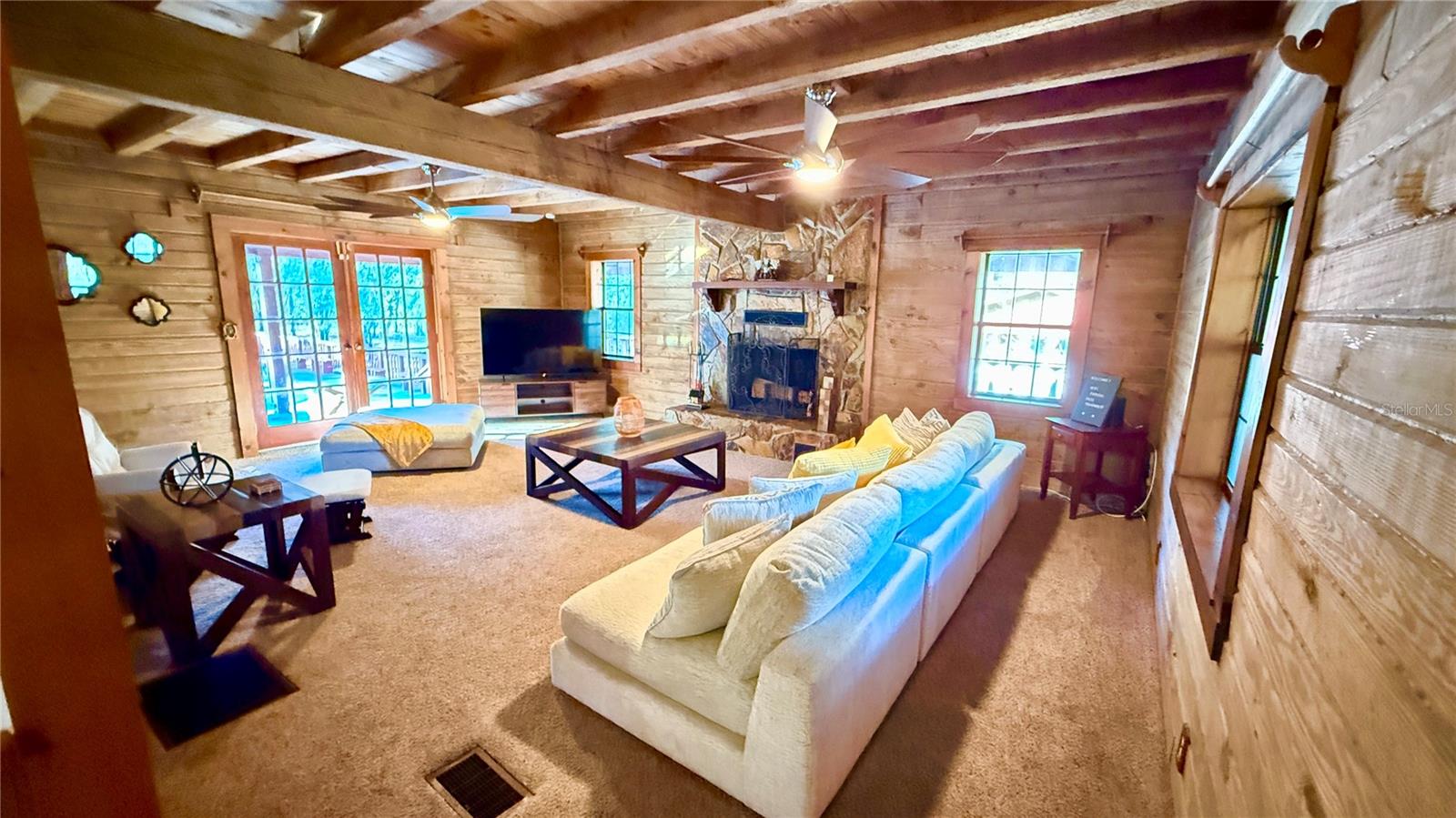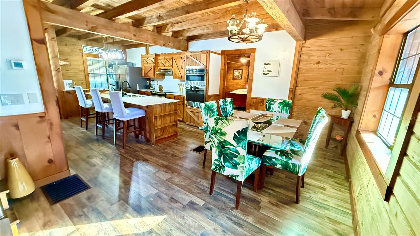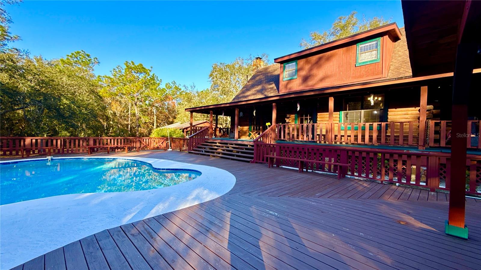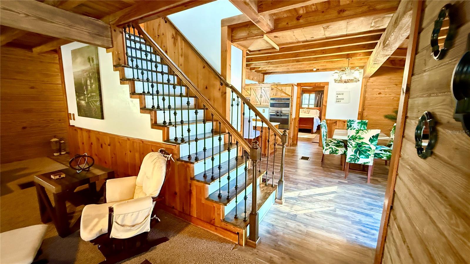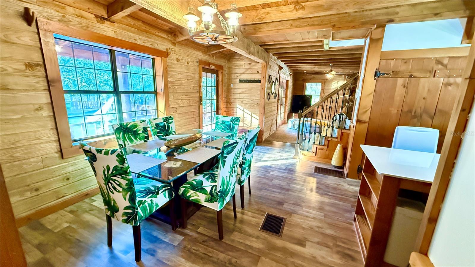 Aninhado em 3,5 acres de paisagem isolada e exuberante da Flórida, esta cabine de madeira de 2.288 pés quadrados premium, atualizada recentemente em 34256 Belt Dr é um verdadeiro santuário do deserto que combina luxo e natureza no seu melhor! Desde o momento em que você chega, o autêntico charme é inegável, com uma vista clássica de uma cabine de telhado de estilo e uma varanda da frente perfeita para cafés serenos da manhã. No interior, a casa é uma obra-prima de elegância rústica, centrada em uma magnífica lareira de madeira de pedra do chão ao teto na sala grande, onde tetos albatados com vigas expostas criam uma atmosfera amada e arejada. O layout de conceito aberto flui para uma cozinha espaçosa, ideal para reunir, enquanto a suíte primária de nível principal oferece privacidade conveniente. Um piso superior expansivo oferece 3 quartos espaçosos com toneladas de espaço no armário e banheiro de Jack N "Jill. Projetos ou barco sem fim, RV, armazenamento de 4 rodas. Withlacoochee River Park, a Hardy Trail é uma reserva de deserto sombreada e sombreada.
