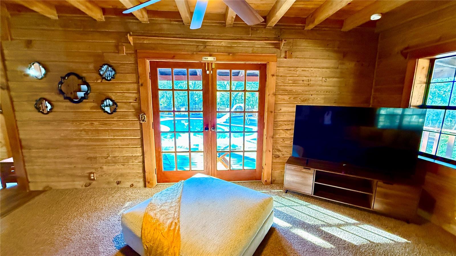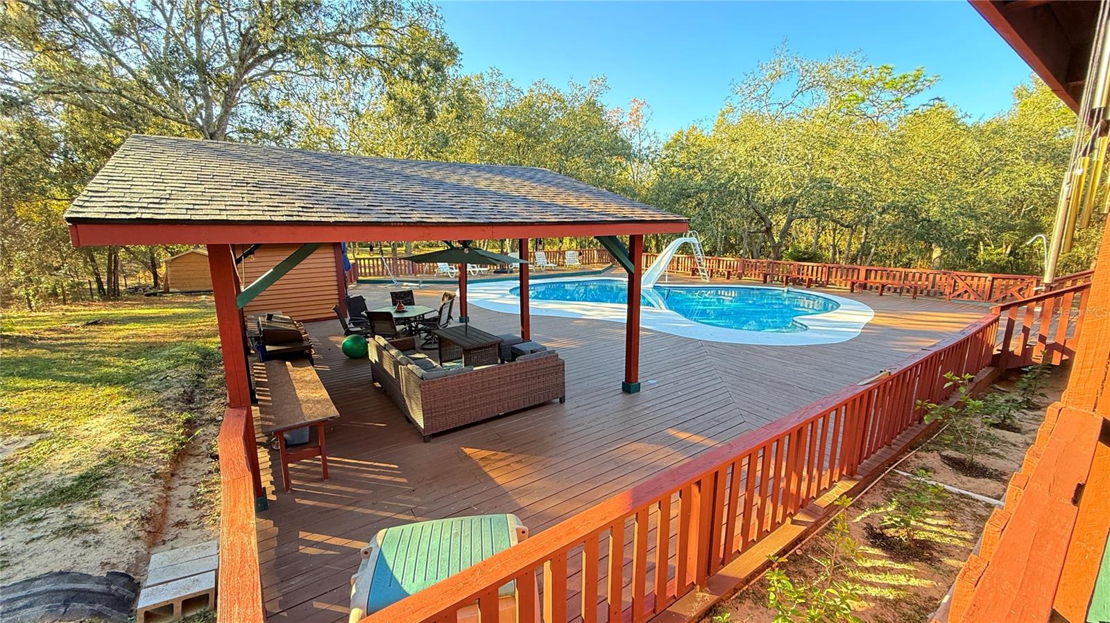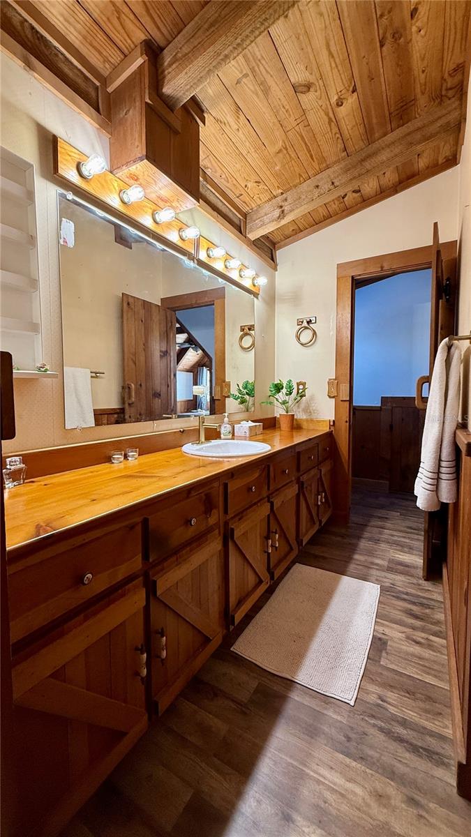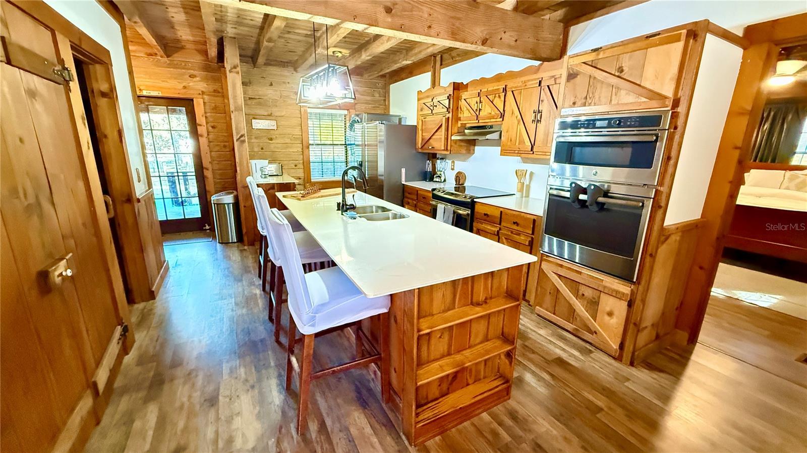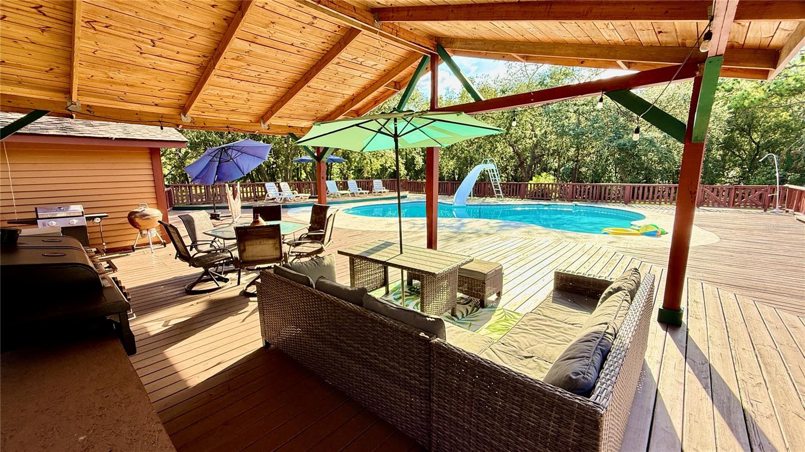 Aninhado em 3,5 acres de paisagem isolada e exuberante da Flórida, esta cabine de madeira de 2.288 pés quadrados premium, atualizada recentemente em 34256 Belt Dr é um verdadeiro santuário do deserto que combina luxo e natureza no seu melhor! Desde o momento em que você chega, o autêntico charme é inegável, com uma vista clássica de uma cabine de telhado de estilo e uma varanda da frente perfeita para cafés serenos da manhã. No interior, a casa é uma obra-prima de elegância rústica, centrada em uma magnífica lareira de madeira de pedra do chão ao teto na sala grande, onde tetos albatados com vigas expostas criam uma atmosfera amada e arejada. O layout de conceito aberto flui para uma cozinha espaçosa, ideal para reunir, enquanto a suíte primária de nível principal oferece privacidade conveniente. Um piso superior expansivo oferece 3 quartos espaçosos com toneladas de espaço no armário e banheiro de Jack N "Jill. Projetos ou barco sem fim, RV, armazenamento de 4 rodas. Withlacoochee River Park, a Hardy Trail é uma reserva de deserto sombreada e sombreada.