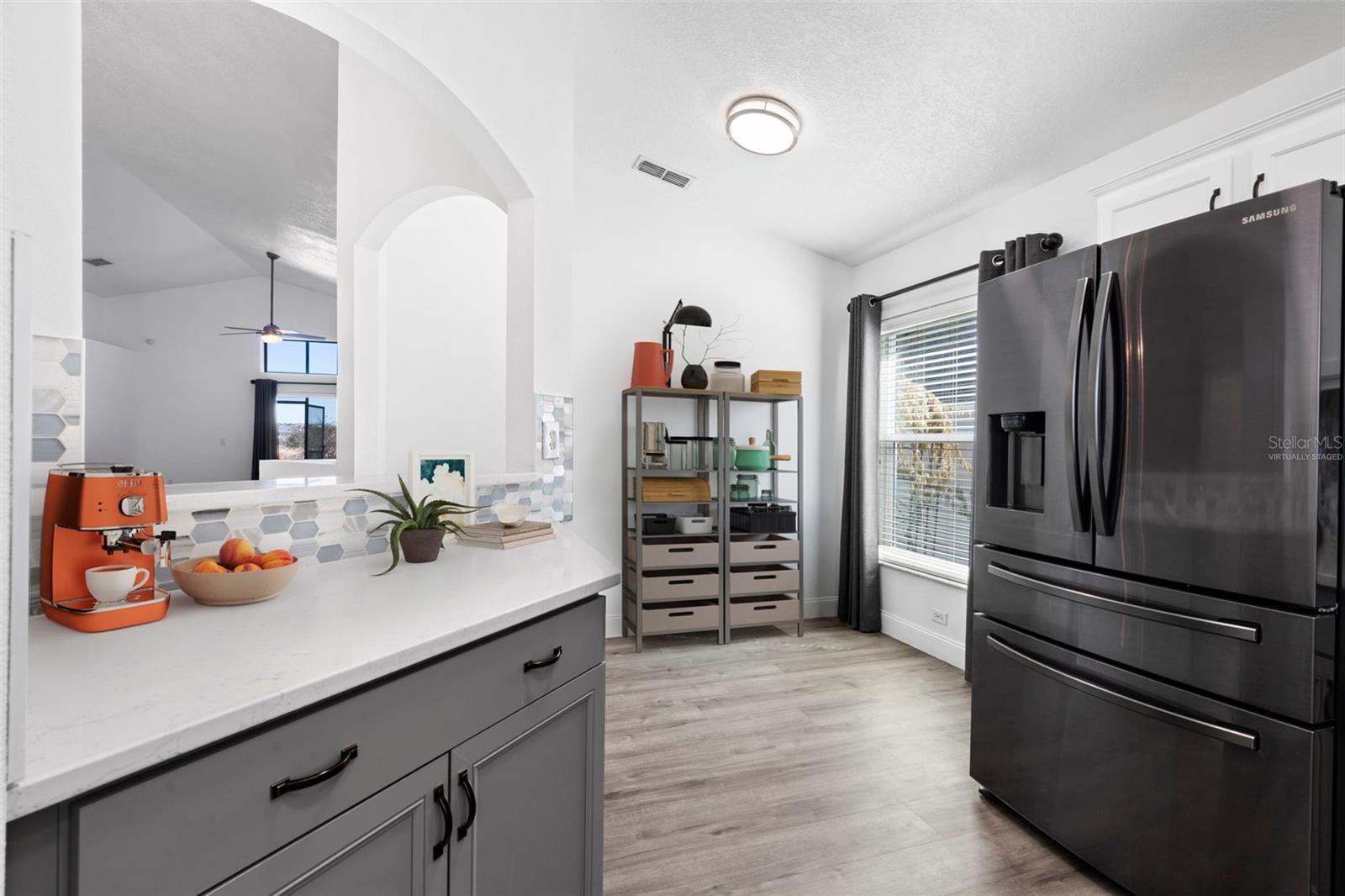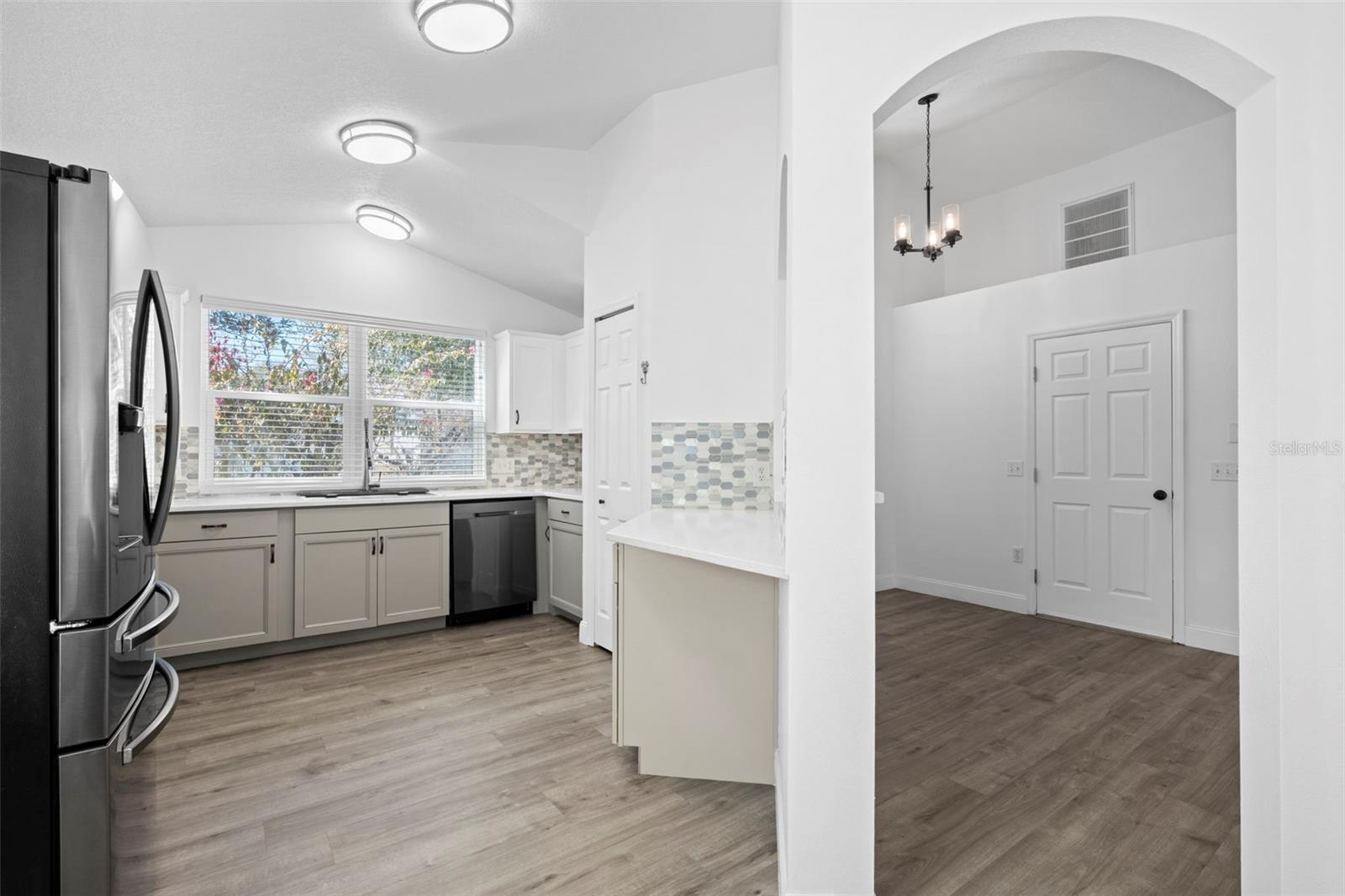 Uma ou mais fotos foram virtualmente encenadas. Vista para o lago completamente atualizada e casa com eficiência energética, sem vizinhos traseiros. As atualizações incluem um novo aquecedor de água quente a gás, telhado e HVAC mais novos, todas as novas janelas e pintura externa com eficiência energética, luxuoso piso de pranchas de vinil por toda parte e um sistema solar para toda a casa e carregador de veículo elétrico na garagem. A cozinha remodelada oferece novos eletrodomésticos de aço inoxidável escuro, fogão a gás, bancadas de quartzo, armários modernos, backsplash de mosaico, recanto para comer e um bar de passagem. A suíte principal possui tetos altos, vista para Crystal Lake, um amplo closet fechado e banheiro privativo totalmente remodelado com pia dupla de quartzo, banheira de imersão independente, box amplo de vidro com azulejos e vaso sanitário separado. Dois quartos adicionais separados da área de estar compartilham um banheiro completo atualizado com box amplo. Os destaques externos incluem um quintal totalmente cercado, pátio com tela, galpão de armazenamento, quintal parcialmente gramado e vistas deslumbrantes do lago. Convenientemente localizado perto da FL HWY-27, com acesso rápido a lojas, hospitais e entretenimento.