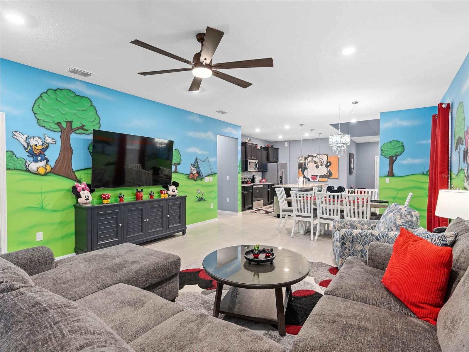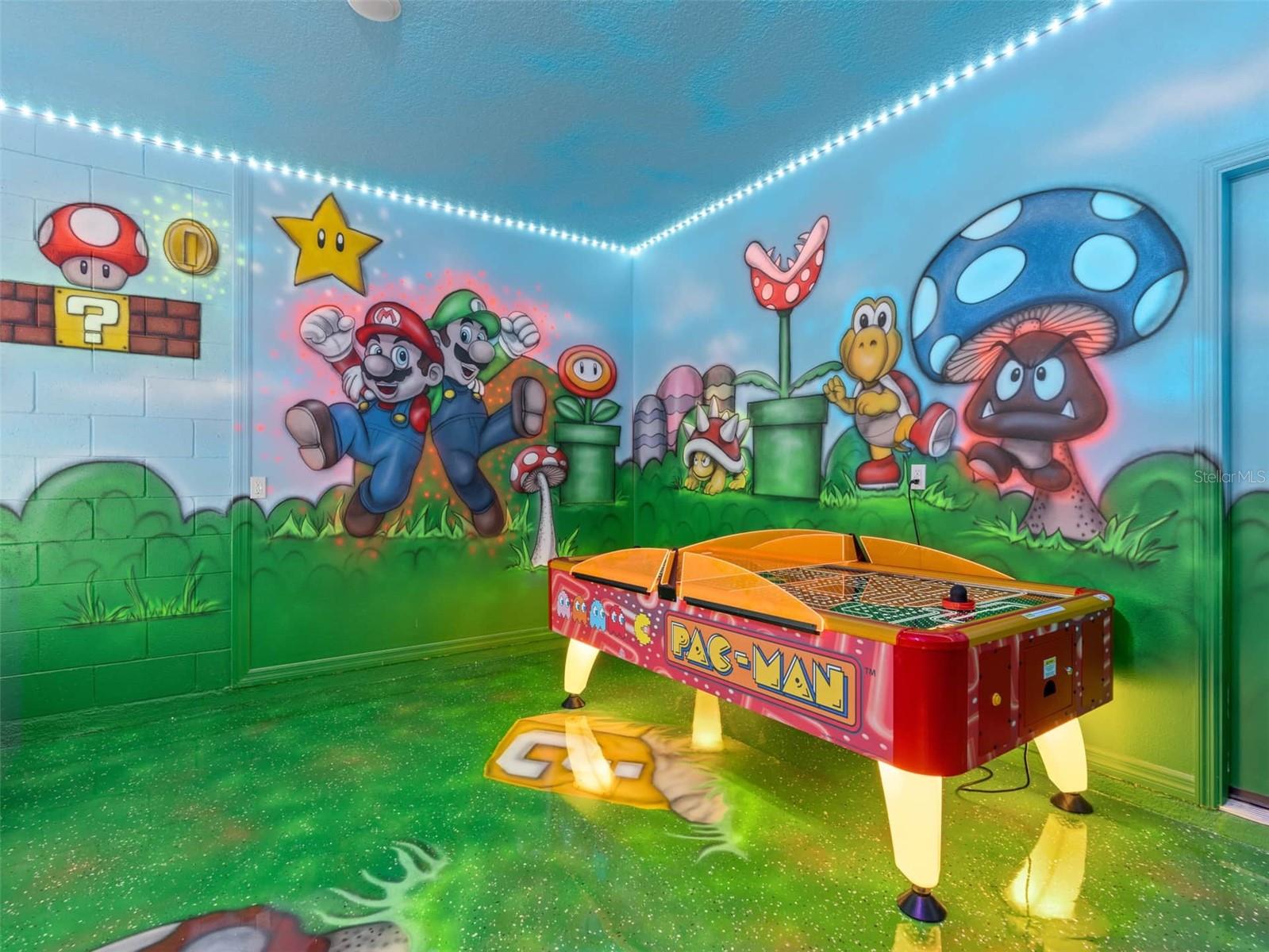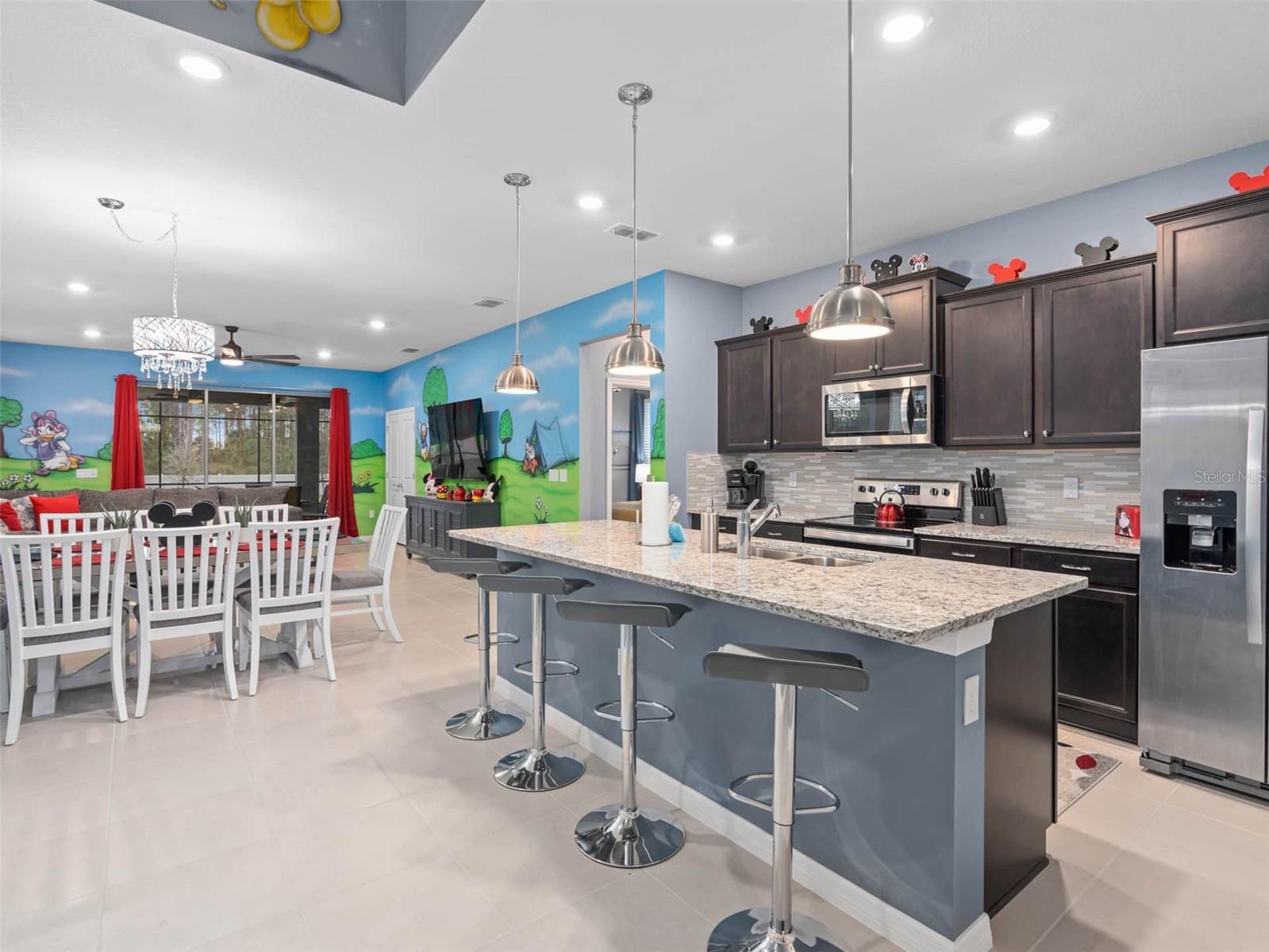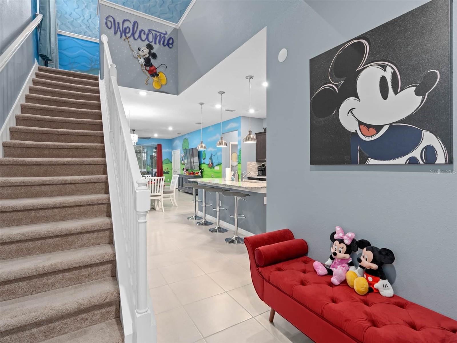 Entre em um mundo de encantamento com esta cativante residência com tema da Disney, aninhada no coração de Kissimmee, na Flórida. Esta morada mágica de 7 quartos e 5 banheiros é um retiro extravagante, projetado para encantar os jovens e os jovens no coração. Ao entrar, seja recebido pelo ambiente encantador que celebra os amados personagens e histórias da Disney por toda parte. De detalhes inspirados no Mickey Mouse a quartos lindamente temáticos, esta casa é uma homenagem à magia da Disney, proporcionando uma experiência imersiva para todos os hóspedes. O primeiro andar possui uma área de estar espaçosa e convidativa, adornada com a decoração encantadora, um espaço perfeito para reuniões de família ou noites aconchegantes. A cozinha totalmente equipada continua o tema, tornando a preparação das refeições uma parte agradável da aventura. O entretenimento não conhece limites aqui-descobriu a emoção da sua sala de arcade privada, onde os jogos de arcade e as atividades divertidas aguardam. E quando é hora de esfriar e relaxar, saia para o seu próprio oásis privado. A piscina espumante acena, cercada por uma área de pátio exibida, ideal para relaxar e absorver o sol da Flórida. Suba as escadas para encontrar mais quartos inspirados na Disney, garantindo que todo hóspede se sinta transportado para seus reinos mágicos favoritos. O Den do segundo andar fornece um espaço adicional para relaxar, assistir filmes ou simplesmente abraçar a atmosfera encantadora. Localizada a meros momentos de distância da emoção do Disney World, esta propriedade oferece a mistura perfeita de proximidade com as atrações e um refúgio pacífico para relaxar após emocionantes aventuras do parque. As opções de refeições, compras e entretenimento próximas aumentam o fascínio dessa escapada com tema da Disney. Esteja você procurando férias de família memoráveis ou um retiro mágico com os amigos, esta cativante casa com tema da Disney em Kissimmee, na Flórida, promete uma experiência cheia de momentos maravilhosos e queridos. Venha e deixe a mágica se desenrolar!