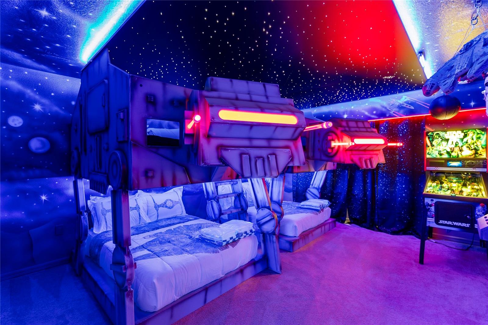 Experimente luxo e conforto no seu melhor com esta magnífica casa de férias de 5 quartos e 4,5 banheiros, aninhada dentro de um condomínio fechado em Orlando. Esta casa lindamente projetada possui uma mistura perfeita de estilo e funcionalidade, proporcionando uma fuga sonhadora durante os hóspedes que ficam na cidade mágica. Localizado em um bairro muito procurado, esta casa de férias oferece não apenas conveniência, mas também tranquilidade. A propriedade está situada em uma comunidade bem colocada, garantindo que você tenha acesso fácil a todas as atrações que Orlando tem a oferecer ao desfrutar da paz e do silêncio que você deseja. Passo insidethis para casa, onde você encontrará um espaço meticulosamente decorado. Todos os cômodos desta casa construída em 2023 estão impressionando o tema e projetado com perfeição, tornando-a uma das propriedades mais esteticamente agradáveis de toda a comunidade. Quando você não está explorando as maravilhas de Orlando, desfrute do relaxamento final do seu santuário particular. A casa possui uma área de lazer completa, permitindo que você relaxe com estilo. Esteja você descansando na piscina, desfrutando de um jogo amigável na sala de jogos ou simplesmente se aproxima da diversão do ambiente lindamente paisagístico, esta casa de férias oferece uma experiência que é realmente incomparável. Reserve sua exibição agora e mergulhe no ambiente encantador desta casa de férias requintadamente decorada.