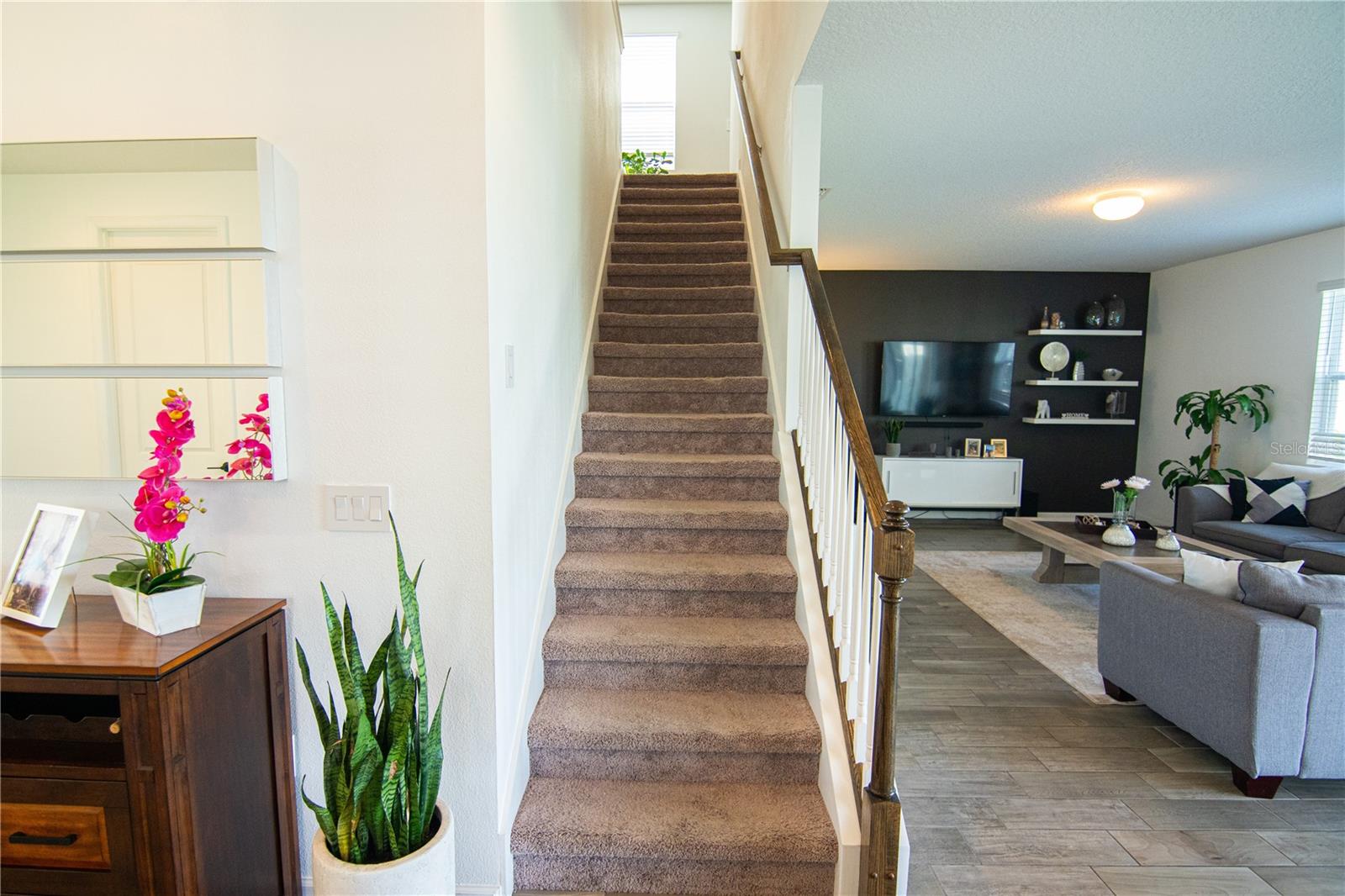 Lindamente mantido e projetado com luxo moderno, esta jóia de dois andares está esperando por você! Construído em 2019 com quatro quartos e três banheiros completos com 2.636 pés quadrados em um lote de 0,13 acres. Você se apaixonará assim que entrar, pois a casa é brilhante e aberta, com belos pisos de azulejos que fluem perfeitamente por todo o primeiro andar. Entrando pela porta da frente emoldurada de vidro gravada, você recebe um quarto e um banheiro. Perfeito para amigos ou familiares divertidos, a casa possui uma cozinha moderna com despensa, alcance de gás, microondas, ilha com barra de café da manhã, pia embutida e lava-louças, armários leves e backsplash de telha de vidro, e está aberto para a sala de jantar e a sala de estar. Portas deslizantes abertas ao quintal e espaço do pátio ideal para churrascar ou relaxar após um longo dia. O segundo andar abriga um loft espaçoso, cercado por três quartos adicionais, dois banheiros completos e uma lavanderia para maior conveniência. O retiro dos proprietários fornece privacidade e apresenta um banheiro grande com um armário, chuveiro, vaidade de pia dupla e um armário de água separado. A garagem para dois carros fornece espaço de armazenamento adicional. Esta casa é uma casa inteligente com energia solar com recursos energéticos, então reduza suas contas de eletricidade! Localizado em Bella Verona, um bairro familiar, perto da Disney World, Champions Gate, principais estradas, ótimas escolas e compras. Faça sua consulta para vê -lo! Garantia básica de um ano fornecida.