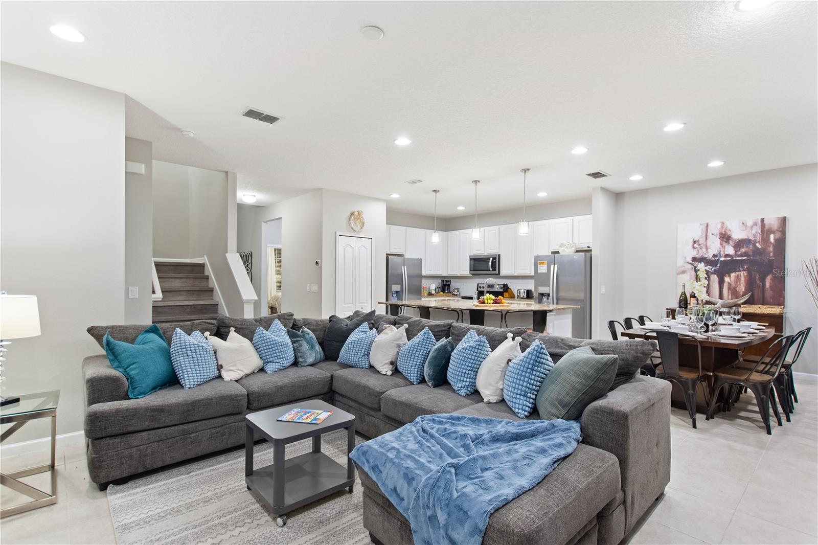 De volta ao mercado - Inspeção limpa! - O comprador não conseguiu depositar o EMD. Vendedor motivado! Faça deste um feriado inesquecível!!! A apenas 20 minutos da porta da Disney, entregue-se à magia dos seus sonhos mais fantasiosos nesta espetacular casa com piscina de 8 quartos e 5 banheiros e desfrute de privacidade e vista para o mar. O sol banha este retiro de férias quente e imaculado, adornado exclusivamente com luxuosos pisos de pranchas de vinil e azulejos de cerâmica, sem carpete em qualquer lugar. Ancorada por uma ampla ilha de cozinha semicircular, a grande sala em plano aberto exala elegância moderna, enquanto a inclusão de geladeiras duplas e máquinas de lavar louça garante que todas as ocasiões sejam impecavelmente atendidas. Emoldurada por dois bancos de portas de vidro deslizantes, a sala de estar tripla e as portas duplas da sala de jantar revelam vistas deslumbrantes do amplo deck, da piscina aquecida de grandes dimensões, do spa elevado e do tranquilo lago de conservação, proporcionando amplo espaço para recreação e relaxamento, garantindo privacidade. Entre na varanda coberta, que abrange toda a largura da casa, oferecendo um cenário perfeito para refeições ao ar livre e conversas tranquilas, completa com um conveniente chuveiro ao ar livre. Os espaçosos quartos de hóspedes e principais do primeiro andar acomodam facilmente camas king-size. A suíte principal possui portas de vidro deslizantes que rivalizam com as da sala em tamanho e vista. Enquanto isso, a garagem é um paraíso para jogos e jogadores, com um mural grandioso dos Vingadores da Marvel, air hockey, jogo de basquete, PlayStation, cinco cadeiras de jogos, duas TVs e uma mesa de cartas/jogo com quatro lugares e AC dedicado para o máximo conforto. No andar de cima, um vasto loft de entretenimento com assentos contemporâneos é ideal para noites de cinema ou jogos. Seis quartos adicionais flanqueiam o loft, incluindo dois reis (um em suíte), duas rainhas e dois quartos com temas encantadores com gêmeos, um Star Wars e outro inspirado no Encanto da Disney. A conveniência de uma lavanderia no andar de cima, complementada por uma segunda lavadora/secadora no andar de baixo, garante uma vida sem esforço. E se tudo isso não bastasse, apenas uma caminhada de 5 minutos leva ao clube do resort, café e comodidades no local, onde uma grande piscina aquecida e tobogã o aguardam, ao lado de uma piscina tranquila em um rio lento para uma flutuação tranquila. Se você preferir aumentar a temperatura, há um grande spa resort, vá para uma partida de tênis, pickleball ou vôlei de areia, ultrapasse seus limites pessoais na academia ou simplesmente relaxe na sede do clube - tudo antes mesmo de se aventurar nos parques! Esta casa excepcional em um condomínio fechado aguarda ansiosamente a sua presença, pronta para se tornar o cenário para suas memórias queridas e aventuras sem fim. A casa tem inquilinos de longo prazo e só está disponível para exibição mediante aviso prévio e aprovação. A compra de casa seria "Sujeito ao arrendamento atual"