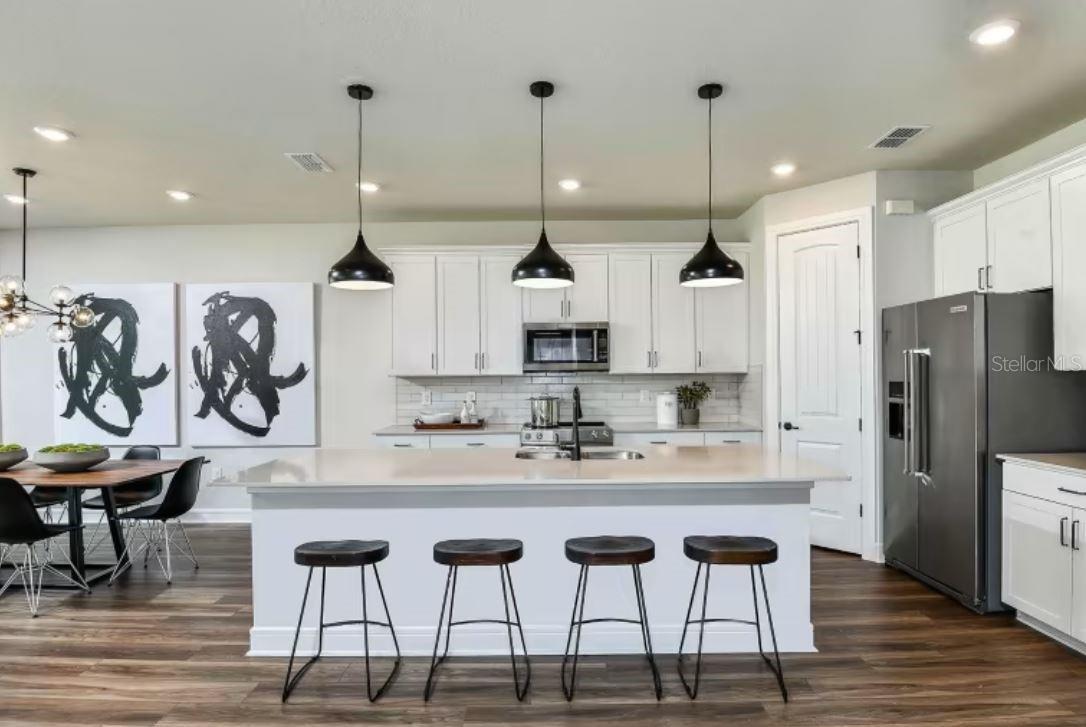 Na Pulte, construímos as nossas casas a pensar em si. Cada centímetro foi cuidadosamente projetado para melhor atender às suas necessidades, tornando sua vida melhor, mais feliz e mais fácil. A nova casa Talon de dois andares desfruta de um espaço verde aberto sem vizinhos traseiros e apresenta nosso exterior Coastal, pacote Move-In Ready, pacote de design Premier Calm, 5 quartos, 3 banheiros, um loft, garagem para 2 carros, um varanda coberta estendida e armazenamento por toda parte. A cozinha de conceito aberto abre-se para o seu café e sala de reuniões e possui uma ilha central, despensa, eletrodomésticos Whirlpool em aço inoxidável, exaustor com ventilação direta, armários brancos, backsplash em cerâmica e bancadas de quartzo Lagoon. A varanda coberta, logo depois do café, facilita muito o entretenimento interno e externo. O Talon também possui um quarto e banheiro completo no andar principal – perfeito para visitas ou para uso como escritório. O segundo andar oferece amplo espaço e comodidade para todos com amplo loft, lavanderia, três quartos adicionais, um terceiro banheiro completo e a Owner's Suite, que possui um amplo closet, banheiro privativo com tampo duplo de quartzo branco penteadeira, pias duplas, armário de roupa de cama e box amplo. As seleções de design com curadoria profissional para esta casa incluem nosso exterior Coastal, pacote de design Premier Calm, lavadora, secadora, geladeira, persianas, armários Villanova com bancadas de quartzo, piso de cerâmica Palma branca em todas as áreas de estar do primeiro andar, nos banheiros e na lavanderia quarto, carpete Ornamental Gate macio e resistente a manchas nos quartos e no segundo andar e muito mais! Esta espaçosa casa Talon oferece o espaço perfeito para descontrair e relaxar com a família e amigos. Belle Haven oferece casas unifamiliares e sobrados em Davenport, a poucos minutos da Hwy-27, I-4, SR-429, dos parques temáticos e do centro comercial, gastronômico e de entretenimento de 80 acres ao ar livre do Posner Park. As comodidades no local incluem uma piscina comunitária com cabana, espaços verdes abertos e um parque infantil comunitário. Internet de alta velocidade e TV Spectrum gigabit estão incluídas nas taxas HOA e não há CDD. Belle Haven está vendendo rapidamente - visite hoje mesmo!