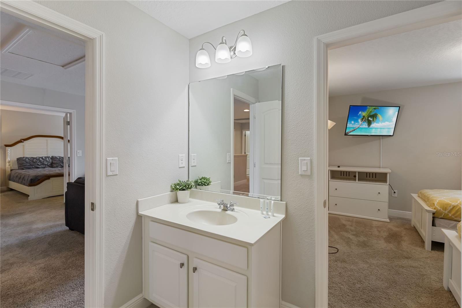 "A economia de hipotecas pode estar disponível para compradores desta listagem." Oportunidade de investimento em férias de férias! Esta bela casa 100% mobiliada está localizada em Solterra- uma comunidade de aluguel de curto prazo e está idealmente situada a poucos minutos de todas as atrações mundiais de Orlando, parques temáticos, golfe, jantar, compras e muito mais! Com mais de 3200 pés quadrados, 6 quartos e 5,5 banheiros, esta casa possui uma planta baixa e aberta, perfeita para entretenimento. A cozinha possui uma ilha de grandes dimensões com muitos assentos, armários brancos, eletrodomésticos e bancadas em granito. A grande sala oferece controles deslizantes para uma piscina e spa aquecidos privados, alinhados com pátio coberto de pavimentação que é revestido de sebes para a privacidade final. O espaço de jantar formal oferece flexibilidade. Quartos primários duplos- um convenientemente localizado no piso principal. No andar de cima, uma segunda suíte primária oferece uma banheira de imersão, chuveiro de telha e vaidade dupla. Grande sala de bônus com projetor e tela embutidos. Quatro quartos de tamanho generoso com 3 banheiros compartilhados. Desfrute de uma manutenção fácil com piso de azulejos de cerâmica em todo o primeiro andar e tranquilidade com um teto de ladrilho durável. A Solterra oferece uma riqueza de comodidades, incluindo um clube que possui uma grande piscina de entrada zero, escorregadores de água, um lounge semelhante ao pub com TVs de tela plana, um rio preguiçoso, cabanas de piscina, um centro de fitness totalmente equipado, quadras de tênis, um campo de futebol, trilhas para caminhada. A taxa HOA inclui atendimento básico à Internet e gramado! Não perca a oportunidade de fazer esta linda casa a sua - agende uma turnê privada hoje!