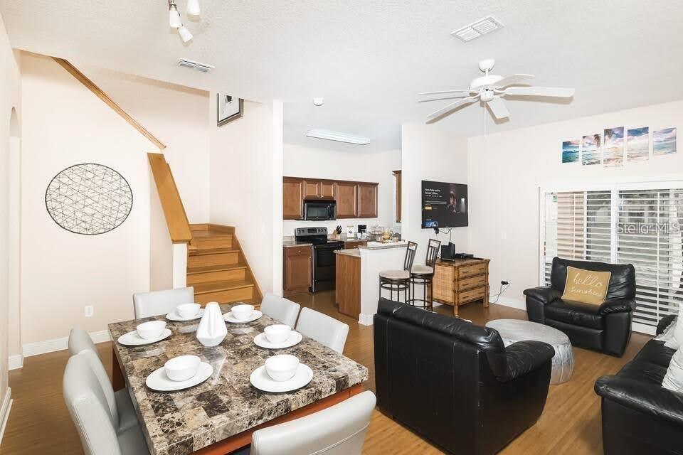 Linda casa e ótima oportunidade para investidores 4 quartos /3 Bath Townhome na comunidade Regal Palms Resort. Venha ver esta incrível casa no Regal Palms Resort 4 Bed 3 Bath Town Home em Bated Regal Palms Resort. *Mobiar totalmente*a casa possui balcões de granito, pisos laminados e utensílios inoxidáveis. Ótima localização. A Regal Palms é uma comunidade exclusiva de resorts fechados e privados, localizada a apenas 15 minutos das saídas do portão principal da Disney World. O complexo consiste em casas de estilo 600 da cidade em um encantador cenário de estilo da Toscana Villa com várias comodidades. Você ficará encantado com nossa piscina tropical de 2 1/2 acres e oásis de rio Lazy, completo com piscinas aquecidas, deslizamento de água com cachoeiras, jacuzzi externo e interno. Terraços de banho de sol, um playground e uma quadra de vôlei com um bar "Tiki" do lado da piscina. O Centro de Fitness possui um jacuzzi terapêutico, sauna a vapor e sauna, juntamente com equipamentos elípticos. O spa permite que você se mime com massagem, manicures e pedicures, etc. No interior, você pode desfrutar de jantar em nosso restaurante e bar, navegar na Internet no seu laptop usando Wi-Fi grátis