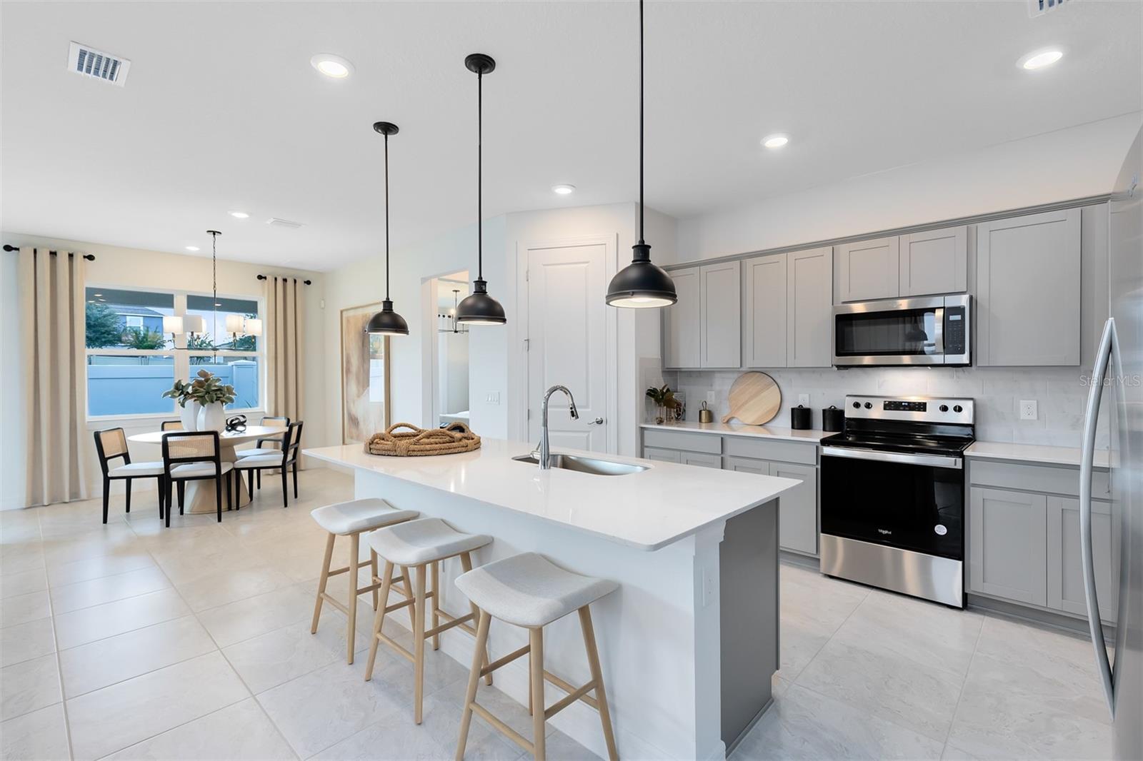 Bem-vindo ao Hartford Terrace em Davenport! O novo condomínio mais badalado de Pulte, na próspera cidade de Davenport, contará com uma coleção de residências unifamiliares e sobrados com uma variedade de comodidades no local e uma localização perto de tudo – lojas, restaurantes, entretenimento, escolas e principais rodovias. Localizado próximo à rodovia 27, Hartford Terrace oferece tecnologia Smart Home em todas as casas, uma piscina comunitária estilo resort com cabana, campo esportivo, playground, estações para cães, trilhas para caminhada e internet de alta velocidade de 1 GB e streaming de TV incluídos no HOA. Entre na Medina by Pulte, uma casa térrea que oferece 3 quartos espaçosos, uma sala flexível fechada e 3 banheiros lindamente decorados. O layout de conceito aberto conecta perfeitamente a cozinha, o café e a sala de reuniões, criando uma atmosfera arejada. As diversas janelas banham todo o espaço com luz natural, enquanto o teto da sala de reunião acrescenta um toque extra de sofisticação, elevando a sensação geral de abertura. O coração da casa é a cozinha inspirada no chef, onde os armários Tilden White encontram as luxuosas bancadas Lyra Quartz. Um backsplash de azulejos decorativos e uma pia de tigela única em aço inoxidável melhoram o espaço, enquanto os eletrodomésticos Whirlpool em aço inoxidável - incluindo um micro-ondas ventilado - garantem que você tenha tudo o que precisa para as refeições diárias e ocasiões especiais. A cozinha flui facilmente para o café e a sala de reuniões, onde uma porta de vidro deslizante leva à varanda coberta, tornando esta casa ideal para uma vida interna e externa integrada. Retire-se para a luxuosa suíte do proprietário, um santuário sereno com um closet espaçoso e um banheiro privativo tipo spa. Lavatórios duplos, box de vidro sem moldura, vaso sanitário fechado e armário de linho completam o espaço tranquilo. Os dois quartos extras adicionais e dois banheiros oferecem amplo espaço para entes queridos e convidados, com um dos quartos tendo seu próprio banheiro anexo. Esta casa também possui uma sala flexível fechada, oferecendo infinitas possibilidades como home office, sala de hobby ou qualquer outro espaço que atenda às suas necessidades. Cada detalhe desta casa foi cuidadosamente selecionado, desde o piso de vinil luxuoso com aparência de madeira nas principais áreas de estar, também com piso de cerâmica nos banheiros e lavanderia até o carpete Shaw macio e resistente a manchas nos quartos. Os acabamentos selecionados pelo designer elevam todos os cantos desta casa, incluindo porta frontal com inserção de vidro, calhas, pré-fio pendente, portas internas de 8" e acabamento de base atualizado. Aproveite a conveniência da vida moderna com um termostato e campainha inteligentes e iluminação embutida de LED. Agende um horário hoje para ver a casa dos seus sonhos ganhar vida!
