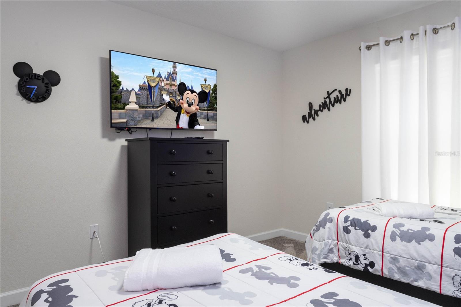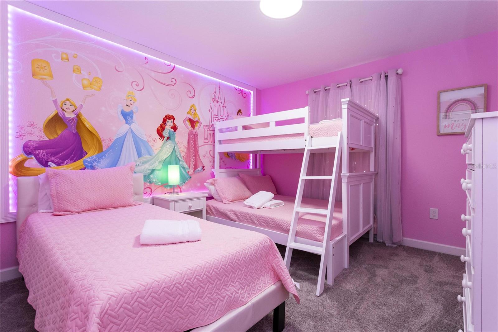 Townhome de 4 quartos lindamente mobiliado na comunidade de resorts de campeões procurados! Nenhum vizinho traseiro, este layout de dois andares apresenta um conveniente quarto no térreo e banheiro completo, além de uma espaçosa suíte master no andar de cima e dois quartos adicionais. O design de conceito aberto inclui uma cozinha moderna que flui para a sala de estar brilhante e arejada, levando a um pátio privado com uma piscina-ideal para convidados relaxantes ou divertidos. No andar de cima, dois quartos temáticos criam uma experiência divertida e imersiva para os hóspedes - um inspirado em Mickey Mouse e outro com um motivo de princesa. A suíte master de tamanho generoso inclui um banheiro bem equipado com pias duplas e muita luz natural. Como parte do Championsgate, os moradores gostam de acesso a um clube de classe mundial com restaurante, bar, fitness center, cinema e muito mais. As comodidades ao ar livre incluem uma piscina em estilo resort, bloco de respingos, lâminas de água e um rio preguiçoso. Pouco menos de 11 quilômetros da Disney, esta casa é perfeita para aluguel de curto prazo, férias em família ou uma segunda casa no coração do corredor de entretenimento de Orlando.