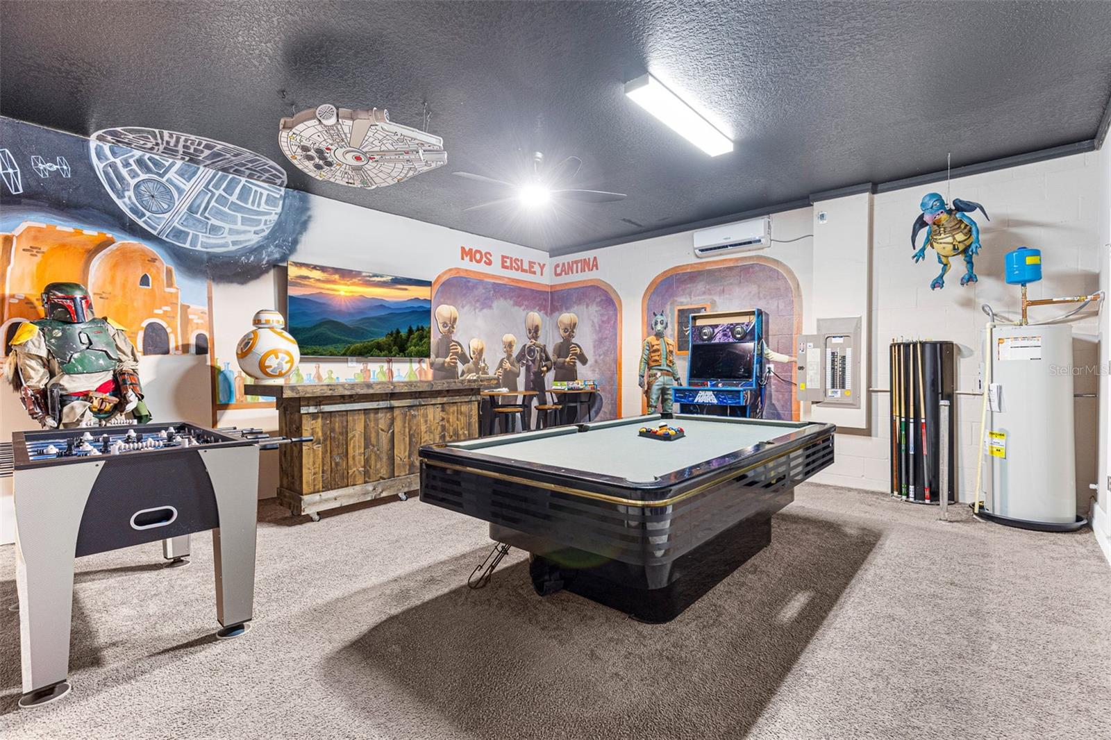Vendedor muito motivado ** Bem-vindo a este deslumbrante retiro totalmente mobiliado com 8 quartos e 5 banheiros no fechamento do GATE DE CHAMPIONS GATE. O coração da casa possui uma espaçosa sala de estar com assentos macios, uma TV montada na parede e grandes portas de vidro deslizantes que banham o espaço em luz natural. A área de jantar adjacente oferece assentos para todo o grupo, enquanto a cozinha totalmente equipada possui bancadas em granito, utensílios de aço inoxidável, uma grande ilha com assentos de café da manhã e armários amplos para armazenamento. Logo depois, vá até a Lanai exibida com uma piscina privada e spa brilhante - perfeita para tardes ensolaradas ou noites relaxantes. O pátio coberto oferece assentos sombreados para refeições ao ar livre, e o gabinete de piscina atualizado (2024) fornece tranquilidade. A suíte primária do primeiro andar oferece um retiro calmo com uma cama king size, closet e banheira de suíte, semelhante a um spa, com vaidades duplas, uma banheira de imersão e um chuveiro separado. Um segundo quarto no nível principal foi projetado para conforto e conveniência, ideais para hóspedes ou vida multigeracional. No andar de cima é onde a personalidade da casa brilha. Vários quartos temáticos criam uma experiência única, incluindo uma sala de inspiração de Guerra nas Estrelas ** com murais personalizados e beliches, uma sala com tema congelado ** com decoração caprichosa, uma sala de super-heróis, com uma sala de super-heróis. Os quartos adicionais no andar de cima apresentam decoração moderna e neutra, com camas rei e queen para atender a uma variedade de necessidades de hóspedes. O loft no andar de cima foi convertido em uma sala de cinema ** **, completa com assentos de teatro em camadas, duas cadeiras de massagem e uma configuração de tela grande-ideal para noites de cinema imersivas. No nível principal, a garagem foi convertida profissionalmente em uma sala de jogos ** com ar-condicionado ** com carpete, um mural com tema de Star Wars Cantina **, uma TV Nanocell LG de 70 polegadas, mesa de sinuca, mesa de bola de bola e um gabinete de jogos de arcada (atualmente em reparo). As atualizações recentes incluem ** duas novas unidades A/C (2024) ** e um novo aquecedor de água (2025) **. Uma lavanderia dedicada adiciona conveniência diária. Moradores e convidados desfrutam das comodidades do Oasis Club, incluindo piscinas em estilo resort, lâminas de água Lazy River, Water Slides, Tiki Bar, restaurante de serviço completo, cinema, centro de fitness e quadras esportivas. Idealmente localizado a apenas 15 minutos do Walt Disney World, com fácil acesso às principais rodovias, esta propriedade é perfeita como um aluguel de férias de Davenport, investimento de curto prazo ou casa de realocação de Orlando. Entre em contato conosco hoje para agendar sua exibição particular.