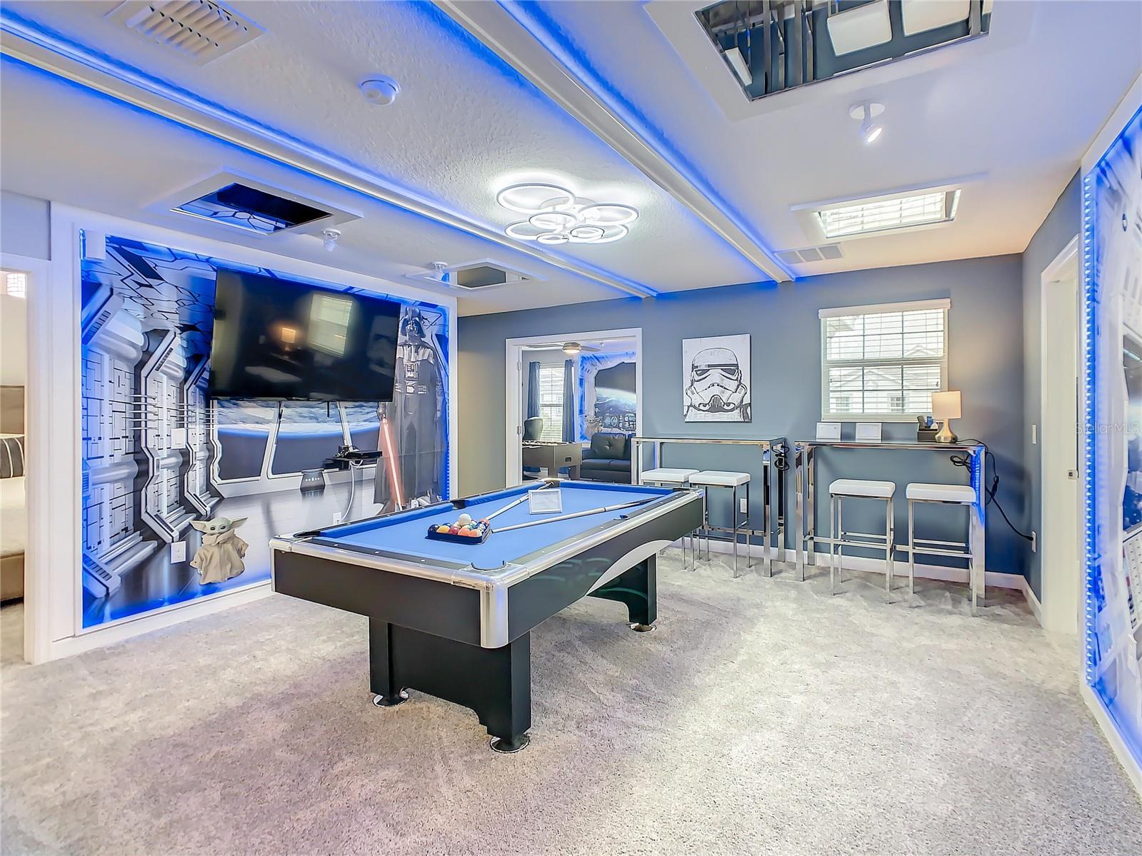Propriedade de aluguel de 8 quartos com tema de nave espacial futurista-minutos das atrações de Orlando Entre em outro mundo com esta propriedade turnkey única de 8 quartos. Recentemente renovado, esta casa imersiva oferece uma experiência de nave espacial futurista e totalmente temática. Com quartos inspirados em Star Wars personalizados, uma piscina privada, um cinema personalizado e uma sala de jogos, essa propriedade acomoda confortavelmente até 16 convidados. Localizado a poucos minutos dos parques temáticos mundialmente famosos de Orlando, esta casa tem a grande base para famílias e grupos que buscam uma estadia inesquecível. Projetado para ser mais do que apenas um lugar para dormir, esta casa parece um conjunto de filmes habitáveis - todos os detalhes criados para transportar convidados para uma galáxia muito, muito longe. Com um forte potencial de renda como aluguel e acesso a comodidades no estilo resort, esta propriedade de teclas está prontas para impressionar os dois hóspedes.