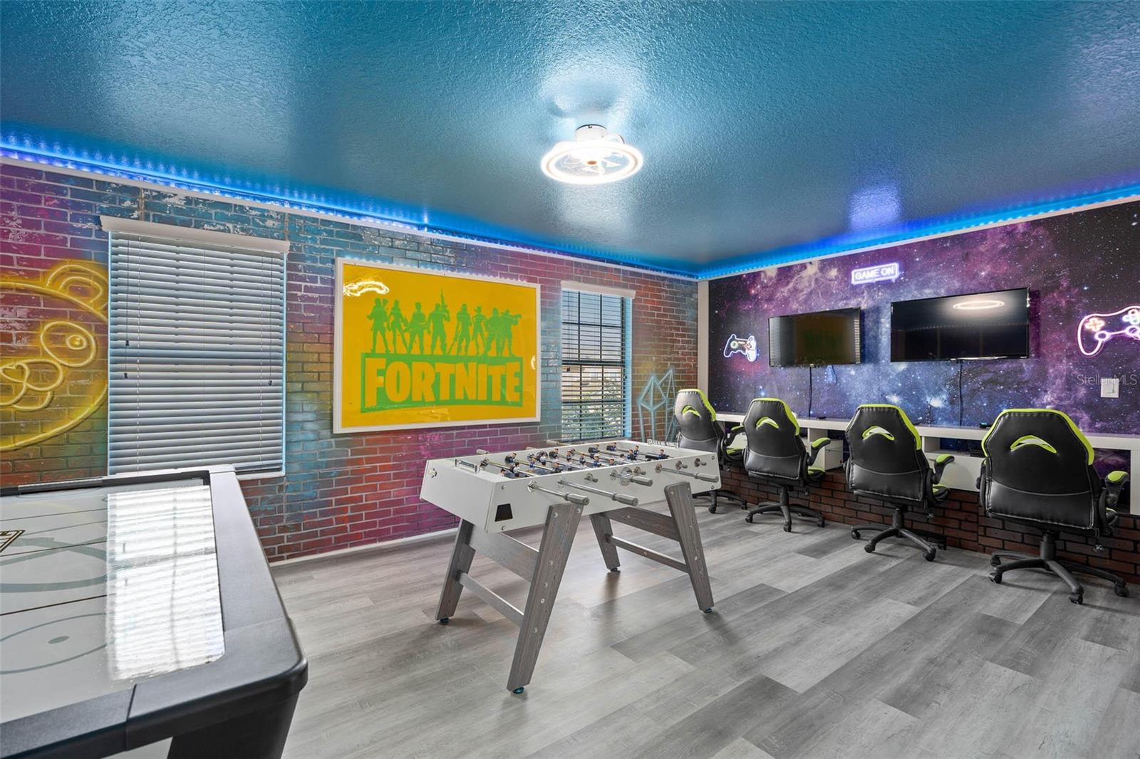 Entre em uma aventura única nesta casa totalmente personalizada de 8 quartos e 5 banheiros, localizada no procurado Champions Gate Resort. Projetado para cativar os hóspedes de todas as idades, esta propriedade tem uma experiência imersiva com recursos de destaque, como um cinema do castelo de Bowser personalizado e beliches criativos com slides embutidos. Cada quarto é de estilo exclusivo com designs vibrantes inspirados em caracteres. A casa inclui 6 camas reis, 3 camas duplas e 1 cama cheia, acomodando confortavelmente até 16 convidados. Uma sala de jogos de grandes dimensões oferece horas de entretenimento com consoles Xbox, hóquei no ar e pebolim. Lá fora, desfrute de uma piscina privada e spa - para relaxar após dias de aventura. O Champions Gate Resort possui comodidades premium, incluindo um clube, piscina em estilo resort, rio Lazy River, Fitness Center e muito mais-todos os minutos das principais atrações do centro da Flórida. Esta propriedade turnkey apresenta uma rara oportunidade em um local de alta demanda, com recursos excepcionais de design e entretenimento por toda parte.