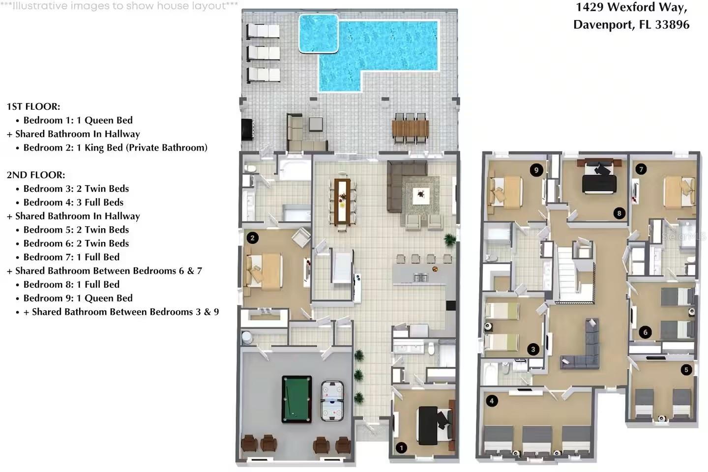 Preço reduzido !! Bem-vindo a esta deslumbrante casa de férias de 9 banheiros, totalmente mobiliada e lindamente decorada, no Campeão Portão do Campeão! Projetado para conforto e entretenimento, esta casa possui uma planta baixa aberta, utensílios de aço inoxidável e dois quartos convenientemente localizados no primeiro andar (um com um privado de suíte). No andar de cima, você encontrará sete quartos adicionais - alguns com uma decoração temática divertida - e uma segunda sala de estar/área de TV perfeita para noites de cinema em família. Saia para desfrutar de sua própria piscina aquecida privada e pátio espaçoso, ideal para relaxar depois de um dia nos parques. Localizado em um condomínio fechado, esta casa oferece acesso a comodidades de classe mundial. No Oasis Club, residentes e convidados desfrutam de uma enorme piscina em estilo resort, rio Lazy River, toboágua de dois andares, zona de respingo, arcade, cinema, centro de fitness, tênis e quadras de vôlei, além de restaurantes no local, incluindo um bar de tiki, restaurante de salão de grade e uma loja de irmãos convenientes. Para ainda mais divertido, o Retreat Club apresenta mini -golfe, slides de água, almofada de respingos, espreguiçadeiras à beira da piscina e uma piscina de resort. Os entusiastas do golfe também vão adorar o campo de golfe do Campeionsgate Country Club nas proximidades. Esta propriedade está perfeitamente situada perto das principais atrações de Orlando: apenas 9,6 milhas para a Disney, 12,9 milhas até o centro de convenções, a 17,5 milhas para o SeaWorld, 21,3 milhas para estúdios universais e 26,6 milhas para a Legoland. Seja para uso pessoal ou como um investimento de aluguel de curto prazo de alta demanda, esta propriedade oferece o estilo de vida final do resort no coração da Flórida Central!