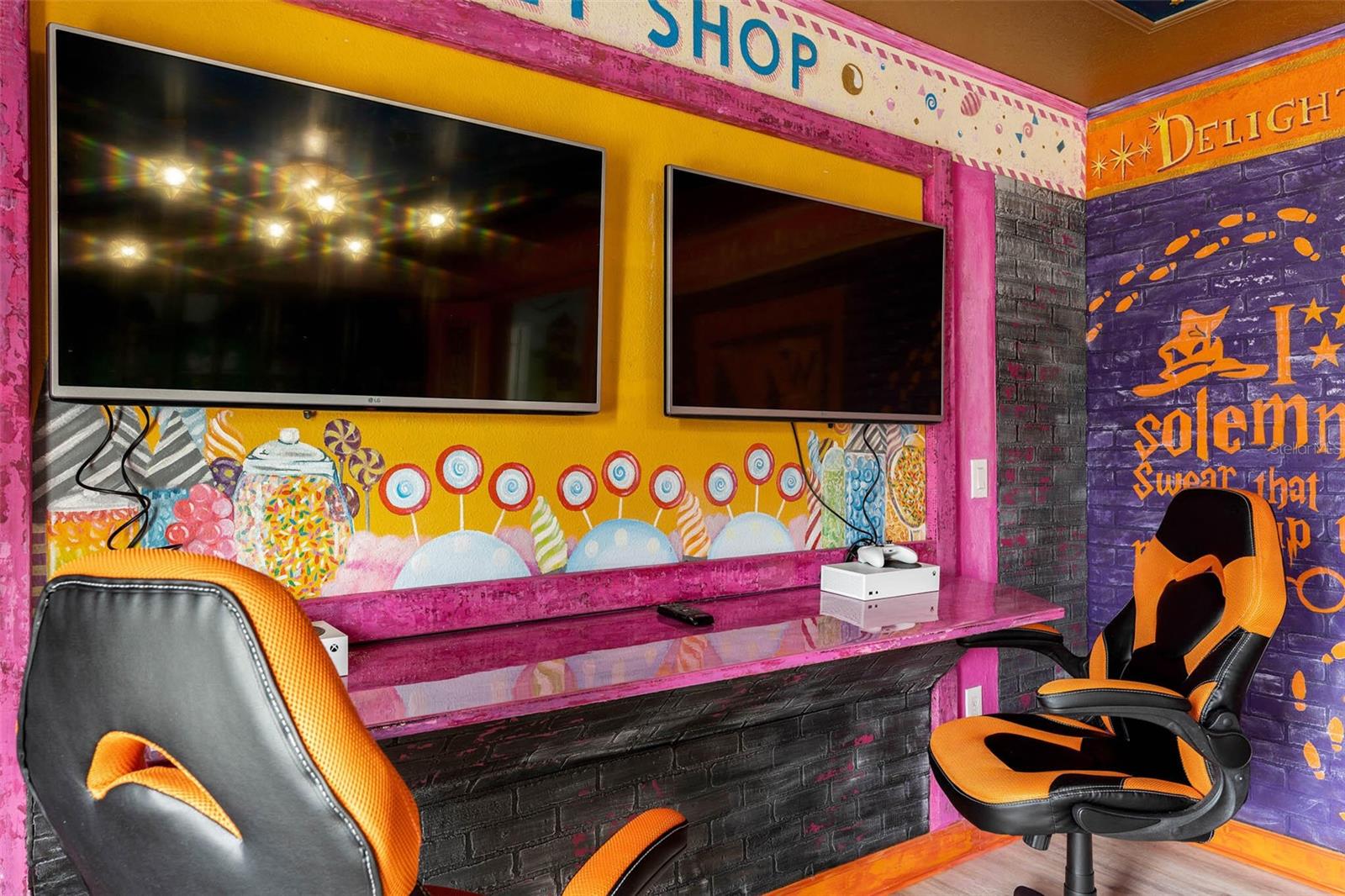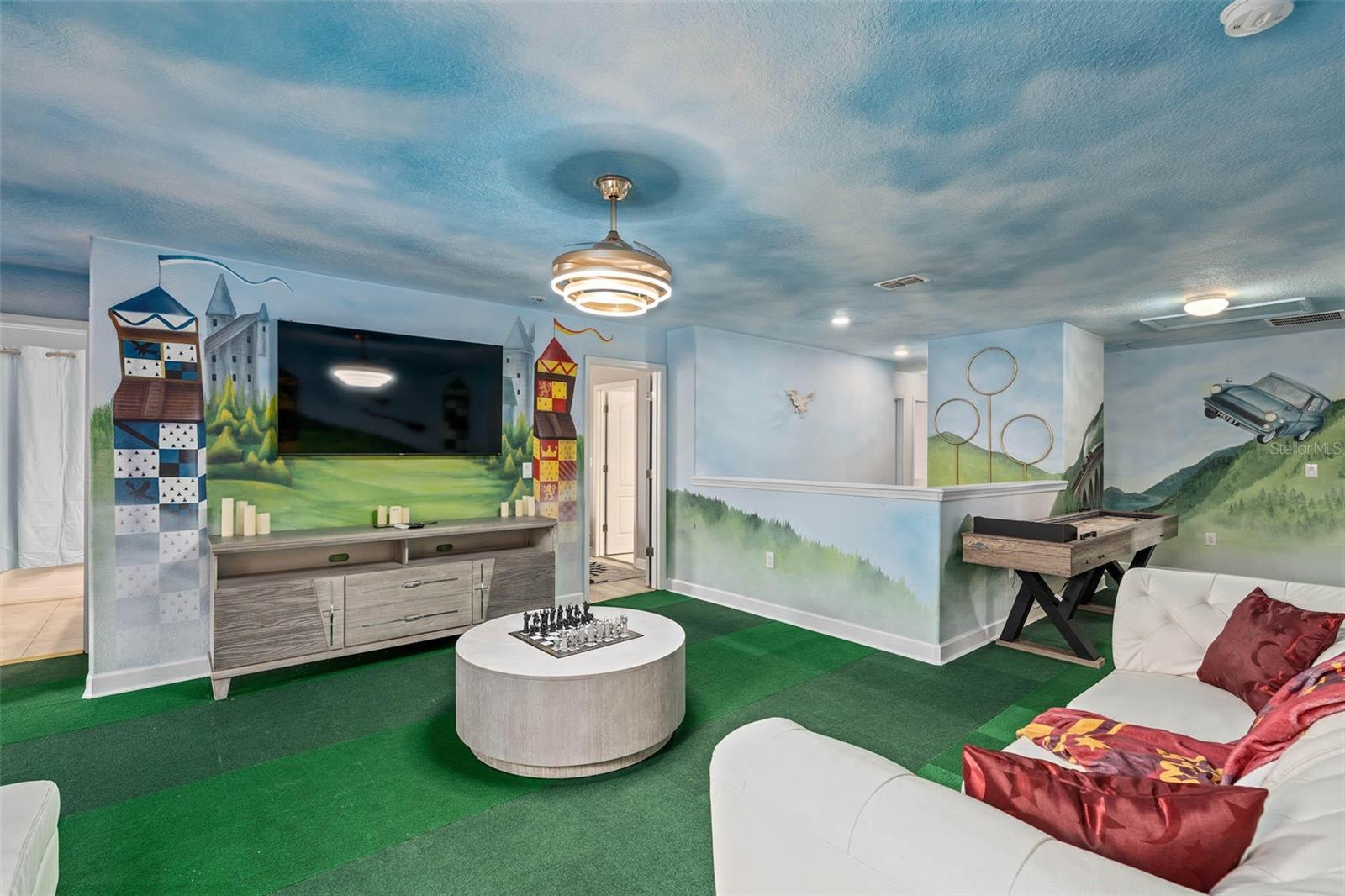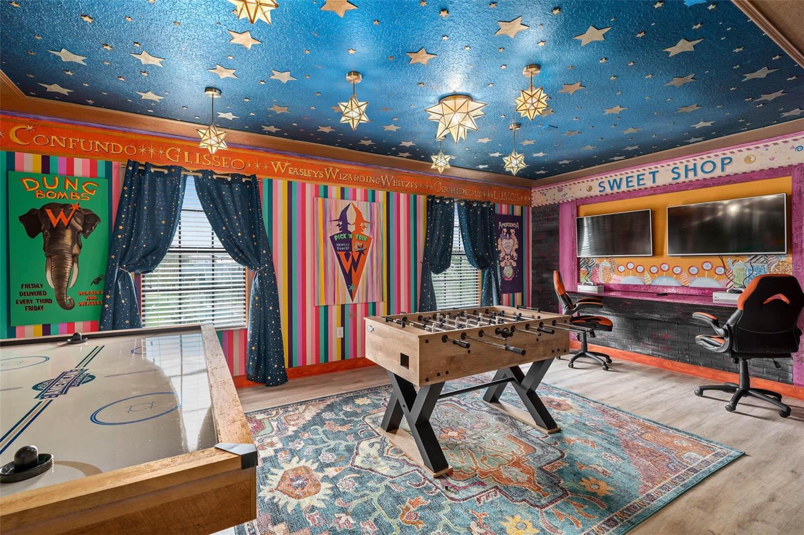 Villa temática mágica de 8 quartos no portão dos campeões-Wizard World Entre no Wizard World, uma vila recém-remodelada e totalmente temática de 8 quartos, projetada para cativar a imaginação de famílias e grupos. Localizada na comunidade Champions Gate, a poucos minutos do Walt Disney World e de outros parques temáticos de Orlando, essa propriedade excepcional acomoda até 16 convidados e tem uma rara oportunidade de possuir um aluguel obstinado ou uma segunda casa luxuosa. Destaques da propriedade: 8 quartos espaçosos com temas imersivos, incluindo Harry Potter, Frozen, Star Wars e Minions - cada sala, cuidadosamente projetada para criar uma experiência memorável para os hóspedes de todas as idades. Private Pool & Spa em um lanai exibido, ótimo para relaxar após um dia de aventuras do parque. O cinema dedicado tem uma experiência cinematográfica no conforto do lar. Sala de jogos personalizada com uma variedade de opções de entretenimento. Resort e comodidades comunitárias: Desfrute de acesso exclusivo às comodidades do Oasis Clubhouse, com: Piscina ao estilo de resort, rio preguiçoso e parque aquático com deslizamentos de água Centro de fitness e sala de teatro Sala de jogos e área de recreação Tiki Bar, quadras de tênis e quadra de vôlei de areia Campo de golfe de 36 buracos Comunidade fechada com segurança 24/7 para tranquilidade e fácil acesso por meio de um passe de estacionamento. Não perca a chance de possuir essa villa encantadora em uma das comunidades de férias mais procuradas da Flórida no centro da Flórida.