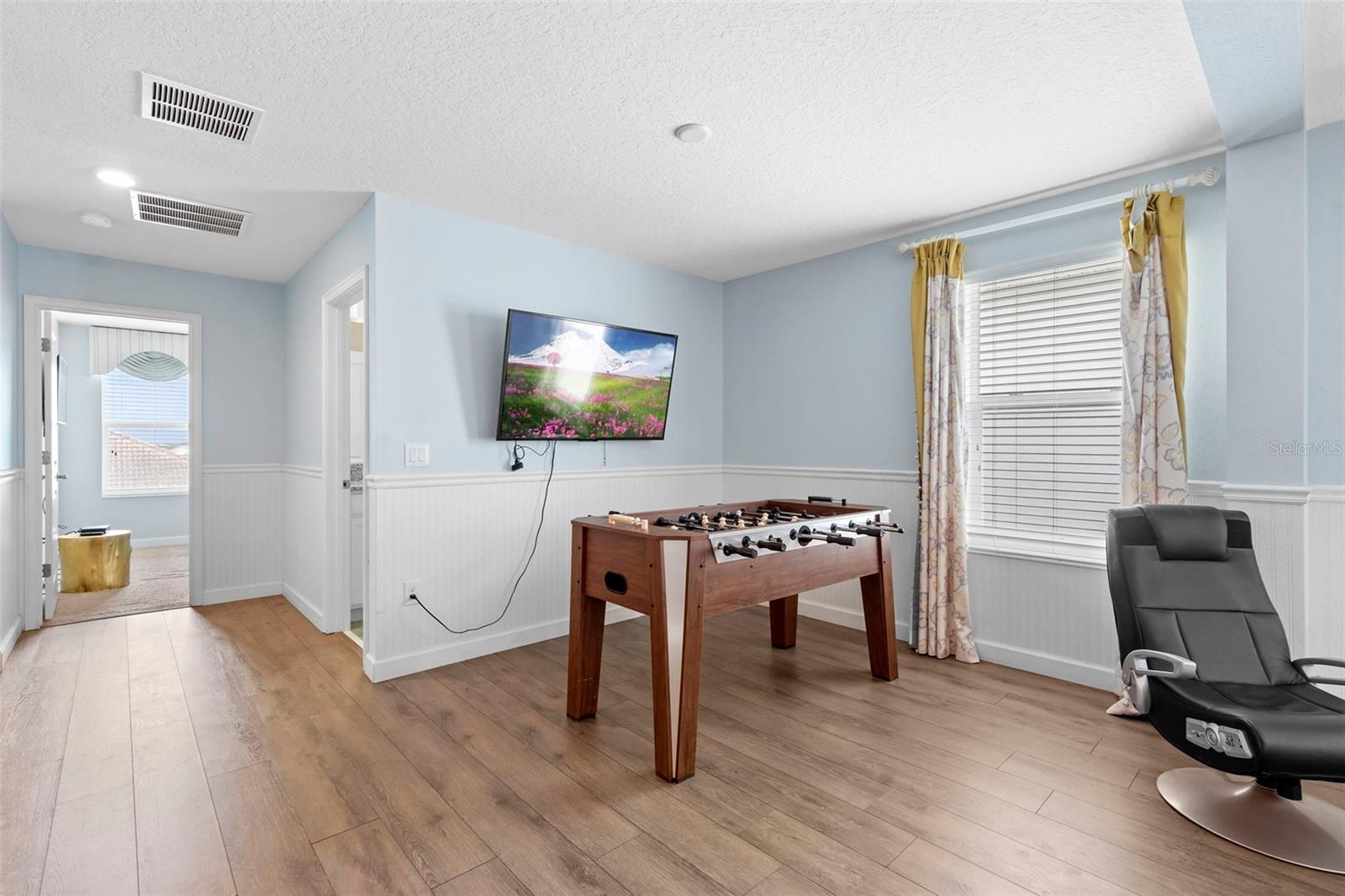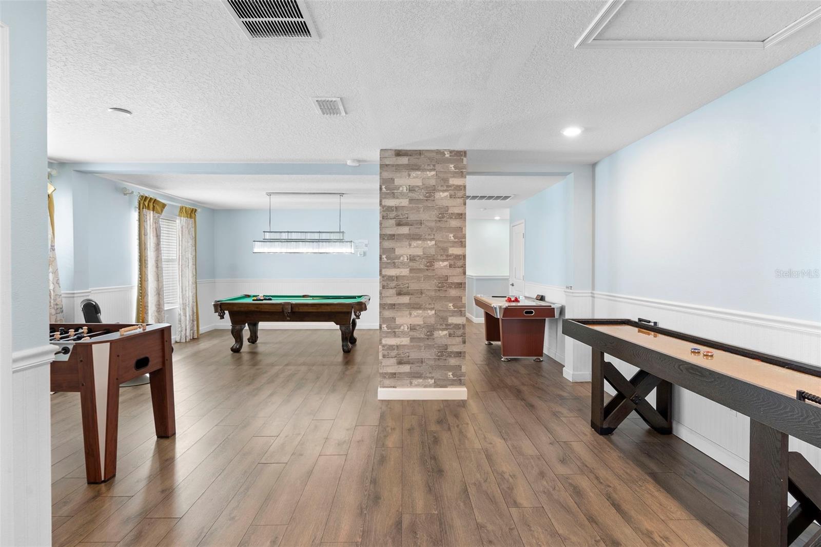 Villa móvel de 5 quartos em Championsgate Lindamente nomeado Villa de 5 quartos e 5 banheiros, com um loft de jogo de 500 pés quadrados de 500 pés quadrados com bilhar, pebolim, hóquei air e recanto de jogos. Os quartos temáticos incluem uma sala congelada com 3 camas cheias e uma sala de beliche de Guerra nas Estrelas com mural. Esta propriedade tem um histórico de aluguel sólido com reservas constantes, tornando -a uma excelente opção para uso pessoal e investimento. Championsgate oferece comodidades de classe mundial: Clubhouse de 15.000 pés quadrados, piscinas de resort, rio Lazy, toboáguas, spa, fitness center, teatro, bar de tiki e muito mais. Convenientemente localizado a poucos minutos da Disney, compras e refeições.