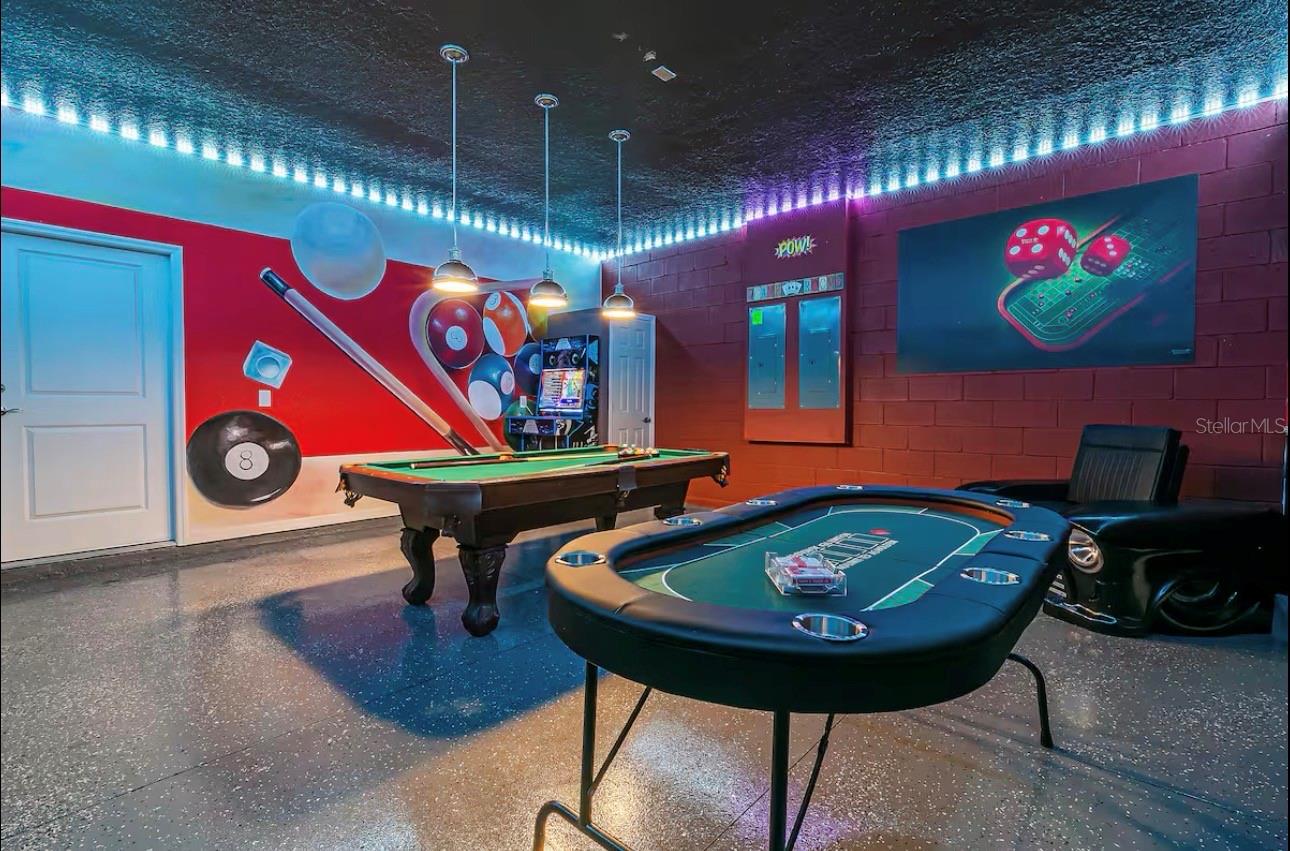 Esta casa conceitual de dez quartos e oito banheiros e um piso aberto oferece toda a sua família, amigos e possivelmente necessidade dos hóspedes! A cozinha de cozinha é perfeita para reuniões, e as vistas do belo quintal da piscina são incríveis. O quintal oferece um grande deck e a piscina inclui um jacuzzi inground. A cozinha possui todos os utensílios de aço inoxidável, armários de cores escuras e bancadas em granito com espaço para comer. Além disso, no nível principal, você encontrará a lavanderia, o meio banho e a garagem, que foi transformada na sala de jogos perfeita. Ao subir as escadas, você é recebido por este loft enorme e lindamente decorado. Todos os quartos temáticos foram cuidadosamente decorados para fazer com que seu convidado e família sintam como se estivessem de férias na Flórida. As comodidades do HOA incluem uma piscina de resort comunitária no estilo aquático com slides de duelo- Lazy River- Hot Hid Hid/ Spa-Splash Pad-Pool Lateral Miniature Golf Course- Bar ao ar livre e Dining- Fire Pit Area- Clubhouse- Fitness Center- Arcade/ Gaming Room- Playground- Tourts-Soccer Fields & More! Perto da Disney e outros parques temáticos, atrações locais, compras, restaurantes, Aeroporto Internacional de Orlando e grandes rodovias, levando você às praias ... a localização é fundamental!