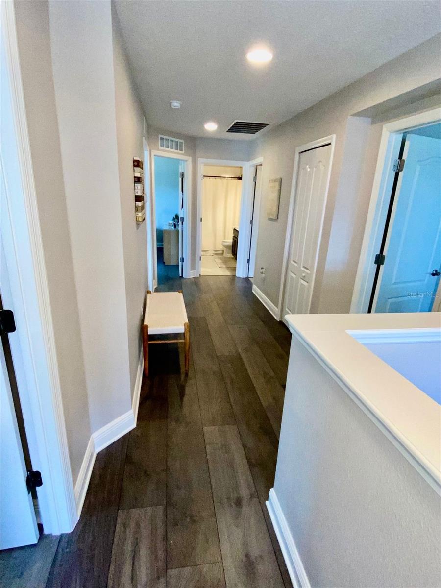 Entre nesta casa lindamente atualizada de 5 banheiros, oferecendo conforto e sofisticação. Inside, you’ll find 10-foot ceilings on the first floor, 5” baseboards, and a thoughtfully designed bedroom with a full bath and shower on the main level, ideal for guests or multigenerational living. The kitchen features 42' cabinets with crown molding, soft-close drawers, a barn door pantry, granite countertops, and a sleek tile backsplash. The open layout is flooded with natural light from multiple large windows, creating a bright and inviting atmosfera por toda parte. Stylish finishes continue with 12x24 ceramic tile flooring on the entire first floor, laundry room, and bathrooms, and luxurious 6” waterproof vinyl plank flooring on the stairs and throughout the second floor. The primary suite is a true retreat, boasting a huge walk-in closet, double sinks, quartz countertops, a garden tub, and a separate walk-in shower, all with tiled bath walls. Every bedroom and the living room are equipped with Os ventiladores de teto, e a casa é completada com uma porta da frente de vidro fosco decorativo que adiciona apelo e privacidade. Saia para desfrutar da varanda coberta de exibição, pátio de pavimentação estendido e área de churrasco, perfeita para entretenimento ou relaxamento enquanto assistia ao pôr do sol sobre a conservação e as vistas da lagoa. Sem vizinhos traseiros e sentados em um lote de grandes dimensões, você desfrutará de privacidade pacífica todos os dias. Localizados na altamente desejável comunidade de reservas de campeões, os moradores gostam de acesso a uma piscina ao estilo de entrada de zero e lote. Convenientemente situado a menos de 1,6 km do Downtown Champions Gate, com abundantes opções de refeições e varejo e mais na primavera de 2026. Você também está a apenas 1,6 km da I-4 e dos EUA 27, 2,6 milhas para o Posner Park Shopping Mall, a menos de uma milha para reunir compras da aldeia e apenas meia milha para o Hospital de Emergência e o Omni Resort e Golf. A celebração fica a apenas 15 minutos e você está a apenas 25 minutos do Walt Disney World.