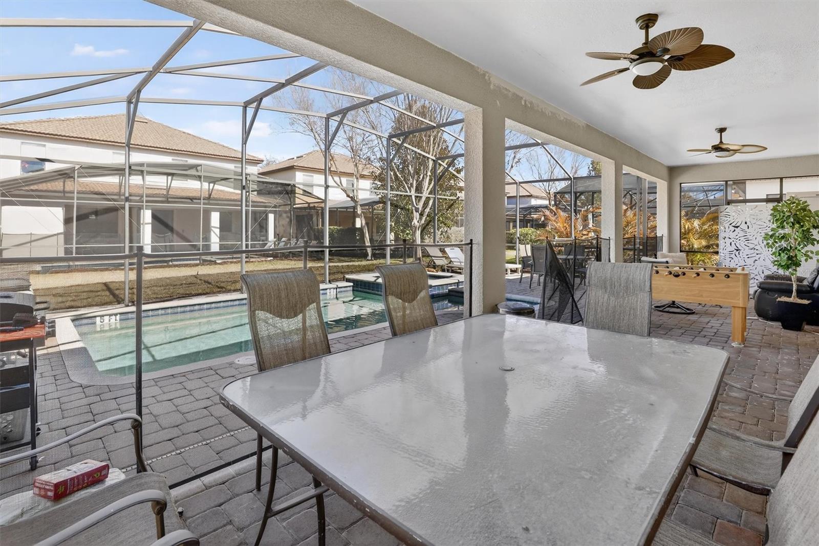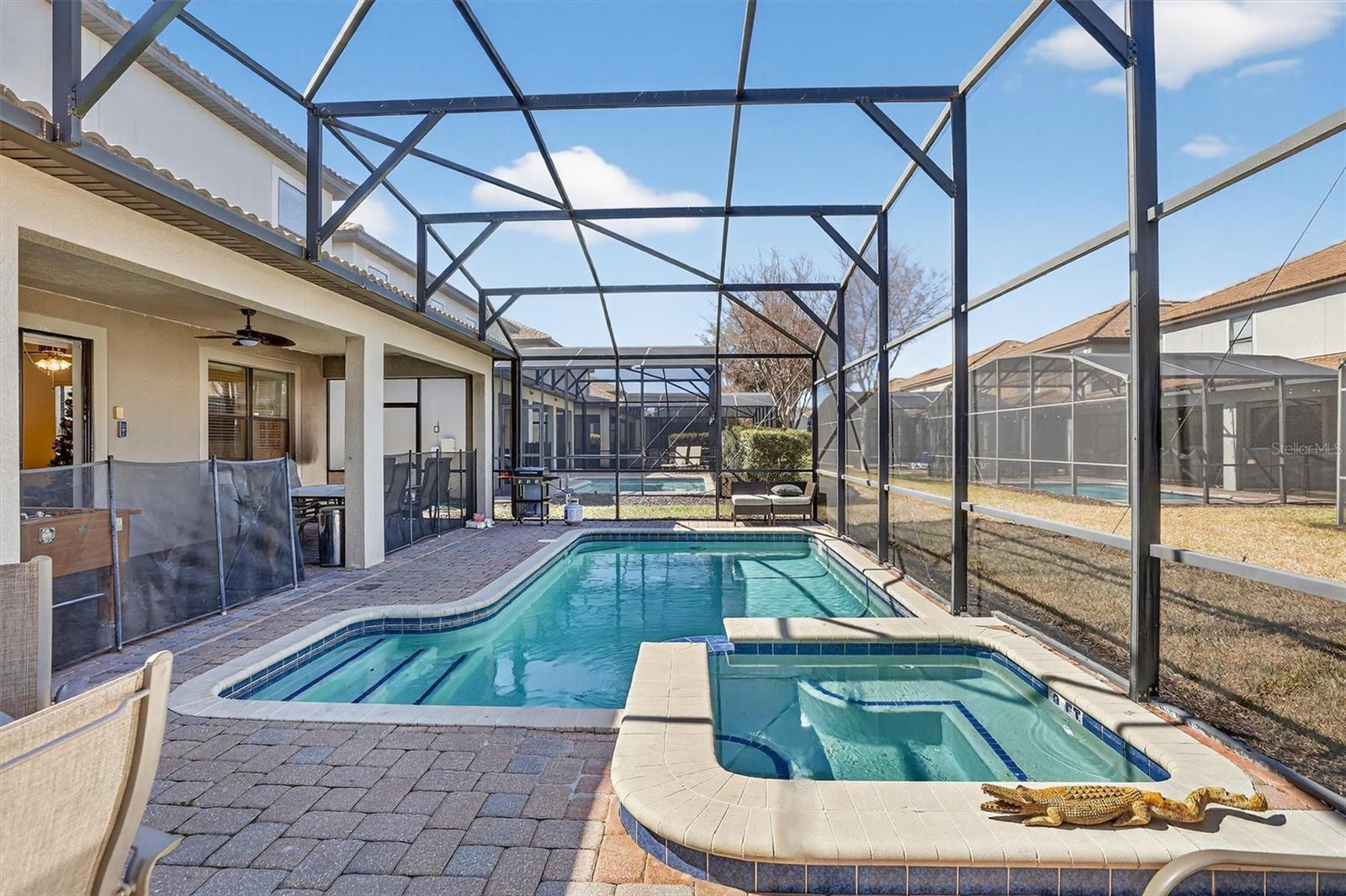 Não perca esta fantástica oportunidade de investimento na deslumbrante comunidade em estilo resort de Champions Gate, o destino ideal para uma vida de luxo ou para um aluguel por temporada de alto desempenho. Esta bela casa de 8 quartos e 5 banheiros está totalmente mobiliada e apresenta a planta perfeita para grandes festas que desejam entreter convidados, realizar uma reunião familiar ou simplesmente relaxar com amigos e familiares. A espaçosa cozinha aberta tem lindos armários brancos de 42", bancadas de granito, eletrodomésticos de aço inoxidável, um armário despensa e um enorme balcão para café da manhã e tem vista para as grandes salas de estar e jantar. Há dois quartos no primeiro andar, o quarto principal e um segundo que tem um banheiro conjugado. No andar de cima há mais 5 quartos, dois com banheiros conjugados, bem como uma relaxante sala de família e uma sala bônus com mesa de sinuca. Nos fundos há uma grande piscina aquecida e spa com deck de tijolos com vista para uma varanda enorme, o lugar perfeito para relaxar e aproveitar o sol da Flórida! Champions Gate atende a todos os requisitos do ponto de vista de comodidades com seu clube e piscina multimilionários que possuem um rio lento, cabanas internas com ar-condicionado, academia, fliperama, quadras de vôlei de praia, cinema, restaurante de serviço completo e o Tiki Bar na piscina para tomar uma bebida refrescante e fazer novos amigos. Champions Gate está no local perfeito, a apenas 15 minutos de carro da Disney! Parques e proximidade de muitos restaurantes, parques temáticos, rodovias e lojas. Esta casa totalmente mobiliada está realmente pronta para uso e pronta para seu novo proprietário.