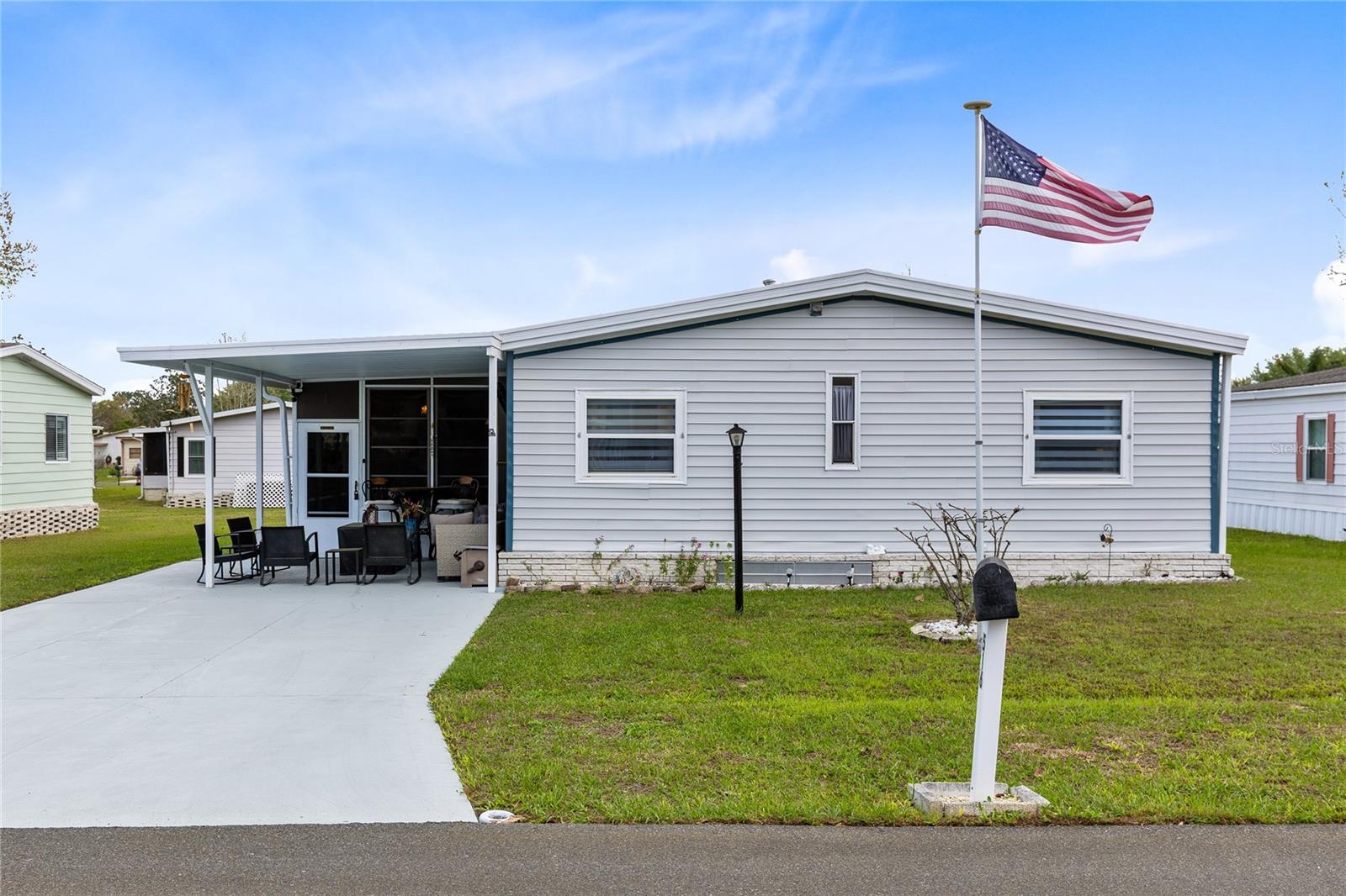 Bem-vindo ao Polo Park, onde conforto, conveniência e comunidade se unem nesta bem conservada casa pré-fabricada de 3 quartos e 2 banheiros duplos em terreno próprio. Escondida em uma linda quadra de baixo tráfego, esta casa oferece um layout aberto e funcional com piso de vinil atualizado em todas as áreas principais, uma sala bem iluminada, espaço para refeições dedicado e uma cozinha espaçosa com armários atualizados, eletrodomésticos de aço inoxidável, balcão generoso e ótimo fluxo para a vida cotidiana. O interior foi remodelado nos últimos cinco anos, conferindo à casa um ambiente actualizado e convidativo. O layout dos quartos divididos confere privacidade adicional à suíte principal, enquanto os quartos secundários estão posicionados no lado oposto da casa. Um dos destaques é a ampla marquise, repleta de janelas e espaço flexível para relaxamento, entretenimento, exercícios ou hobbies. Do lado de fora, você apreciará as áreas do pátio frontal e traseiro, entrada de automóveis extra grande, sistema de sprinklers cobrindo a frente, os fundos e as laterais, galpão de armazenamento incluído e novo revestimento externo concluído em 2026. Melhorias recentes adicionais incluem um novo AC instalado em janeiro de 2026 e um telhado com aproximadamente 7 anos. O Polo Park oferece um estilo de vida pensado para conexão e diversão, com duas piscinas comunitárias aquecidas, golfe, tênis, pickleball, shuffleboard, bocha, ferraduras e uma área dedicada para passear com cães, tudo com uma das taxas HOA mais baixas da região. Com localização central perto de lojas, restaurantes e principais atrações, esta casa é uma excelente opção para residência principal, retiro sazonal ou propriedade de investimento.