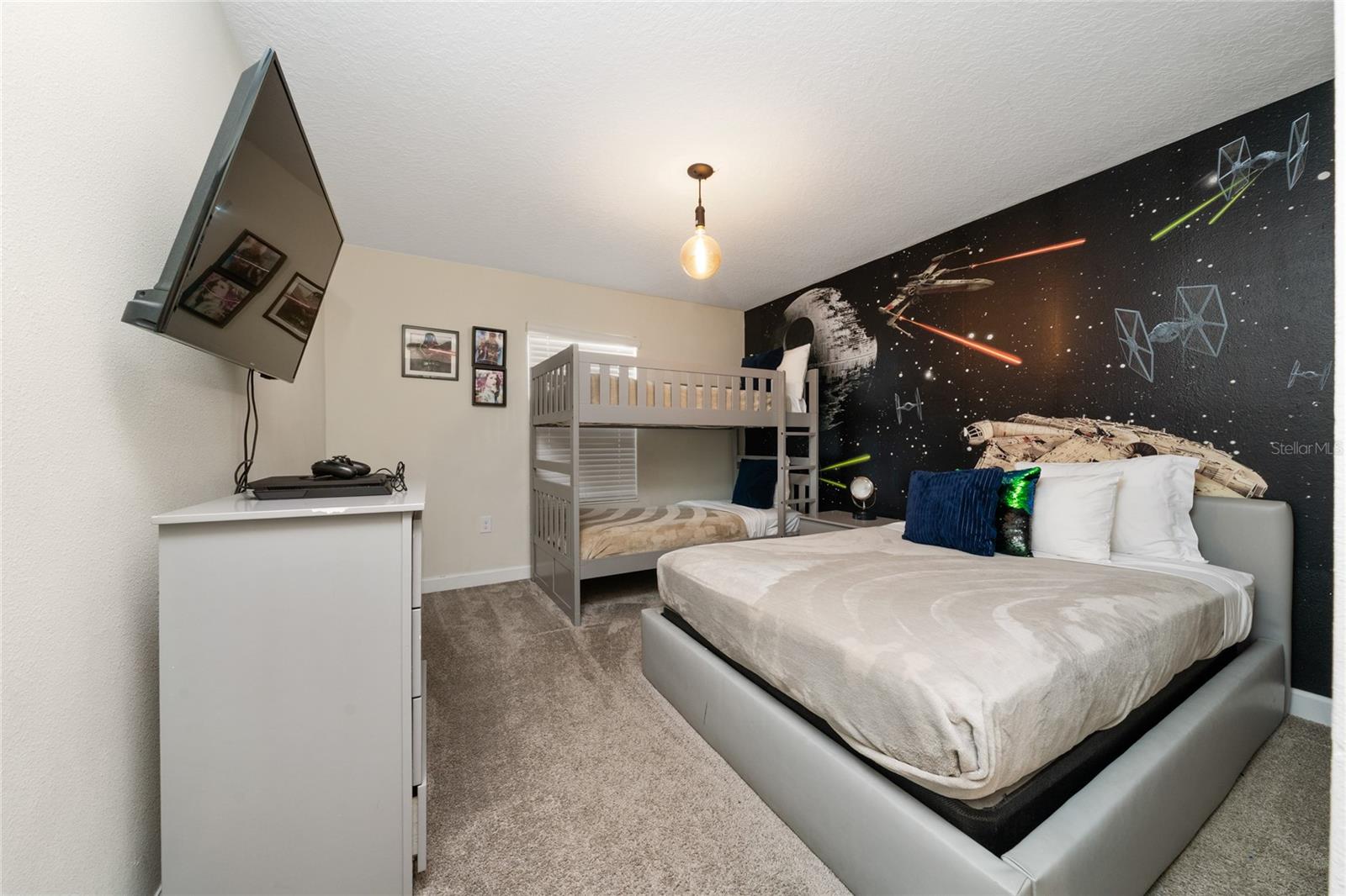 Entre nesta casa totalmente mobiliada de 4 quartos e 3 banheiros no The Retreat at ChampionsGate - uma oportunidade excepcional para investidores em aluguel de curto prazo ou famílias que buscam o melhor refúgio de férias. Esta residência moderna possui um layout de conceito aberto com cozinha gourmet, bancadas de quartzo, eletrodomésticos de aço inoxidável e móveis elegantes por toda parte. A espaçosa área de estar se abre para uma piscina privativa com tela e uma varanda coberta com mesas ao ar livre e TV - perfeita para entretenimento ou relaxamento após um dia nos parques. No andar de cima, a luxuosa suíte master inclui banheiro privativo com pia dupla e espaço de trabalho dedicado. Dois quartos infantis temáticos - um do Mickey Mouse e um do Star Wars - encantam os hóspedes mais jovens, enquanto o quarto quarto oferece duas camas de solteiro contemporâneas e um ambiente elegante e tranquilo. Todos os banheiros são atualizados com acessórios modernos, chuveiros de azulejos e amplo armazenamento. Localizado em um condomínio fechado em estilo resort, desfrute de acesso exclusivo a um parque aquático, rio lento, clube com academia e bar tiki, playgrounds, quadras de basquete e tênis e muito mais - tudo coberto pelo HOA, que também inclui paisagismo, TV a cabo, internet e manutenção externa. Idealmente situada a poucos minutos do Walt Disney World, das principais rodovias, lojas e restaurantes, esta casa oferece conveniência pronta para uso, forte potencial de aluguel e apelo familiar imbatível.