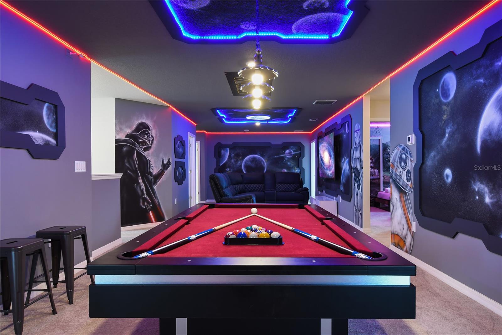 Casa de férias totalmente atualizada e temática na Ilha de Windsor! Entre em um mundo de luxo e imaginação com esta espetacular casa de férias de 10 quartos e 8 banheiros. Projetado para acomodar mais de 20 hóspedes, este retiro totalmente mobiliado é perfeito para escapadelas familiares inesquecíveis ou um lucrativo investimento em aluguel de curto prazo. O proprietário investiu US$ 170.000 em atualizações para criar uma casa que combina elegância, conforto e entretenimento. A partir do momento em que você entra, você será cativado pela decoração temática cuidadosamente selecionada, pelos acabamentos de alta qualidade e pelo amplo design de conceito aberto. A cozinha gourmet, a ampla área de jantar e a convidativa sala de estar proporcionam o cenário ideal para hospedagem e entretenimento. No andar de cima, uma sala de bônus colossal foi transformada em um teatro envolvente com tema de Star Wars, completo com mesa de sinuca, oferecendo diversão sem fim para hóspedes de todas as idades. A emoção continua do lado de fora, onde uma enorme varanda coberta tem vista para a piscina aquecida e o spa, situado em um deck lindamente pavimentado - o local perfeito para relaxar após um dia nos parques ou se divertir sob o sol da Flórida. Para ainda mais entretenimento, a garagem foi convertida numa sala de jogos totalmente equipada, garantindo diversão a cada passo. Localizada no muito procurado condomínio fechado de Windsor Island Resort, esta casa oferece acesso a comodidades de classe mundial, incluindo um clube de 8.000 pés quadrados, piscina aquecida e spa com rio lento, cabanas à beira da piscina, academia, restaurante e bar, playground, quadras de vôlei, tênis e basquete, sala de jogos e uma área de lounge relaxante com TVs. Convenientemente situado perto da US 192 e da I-4, esta localização privilegiada coloca você a poucos minutos da Disney, de lojas, restaurantes e de todas as principais atrações da Flórida Central.