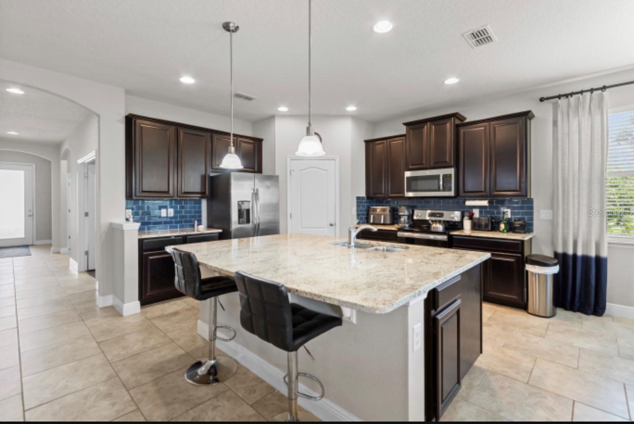 Maravilhoso e lindo lote de canto impressionante, espaçoso 4 quartos 5 banheiros, localizado na reserva de campeões altamente desejada. Entrando nesta casa, com o teto de 9,5 pés, é acolhedora e, quando você entra na cozinha com uma ilha de grandes dimensões, os aparelhos são de aço inoxidável, os armários são de 42 "de café, bem como uma despensa de tamanho grande, a sala de estar e a sala de jantar e a sala de jantares. O quarto quarto/bônus com meio banheiro e armário. Painel solar do sistema de áudio digital