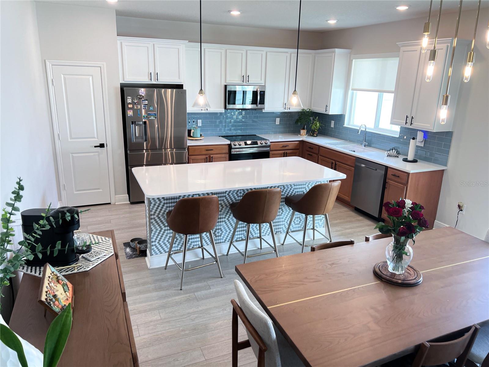 Esta é uma casa imaculadamente mantida, imperdível, com 5 quartos e 3 banheiros, situada perto do coração da Flórida Central. Ao entrar nesta casa como nova, você será saudado por uma planta ampla e aberta com vista direta para o pátio de grandes dimensões e uma espaçosa cerca no quintal. O andar de baixo apresenta detalhes decorativos impressionantes, como mosaicos de vidro quente personalizados para animar a ilha da cozinha com backsplash de azulejos de metrô lindamente coordenados, bancadas de quartzo, luminárias modernas e luxuoso piso laminado de vinil à prova d'água por toda parte. As personalizações de ponta não param por aí. Um sistema de alto-falantes embutido no teto leva o entretenimento de seus convidados a um nível totalmente novo! E a porta de vidro deslizante e a janela da escada foram equipadas com persianas elétricas para uma conveniência luxuosa, juntamente com outros recursos inteligentes, como um termostato inteligente e uma fechadura inteligente na porta da frente. As estantes personalizadas da California Closet atenderão às suas necessidades organizacionais e você dormirá tranquilamente à noite graças às câmeras de segurança externas e um sistema de segurança ADT. A garagem para dois carros tem piso em epóxi e prateleiras suspensas para todas as suas necessidades extras de armazenamento. Numa localização central desejável e apenas a 30 minutos da Disney World. Não deixe essa passar despercebida e agende sua exibição hoje mesmo!