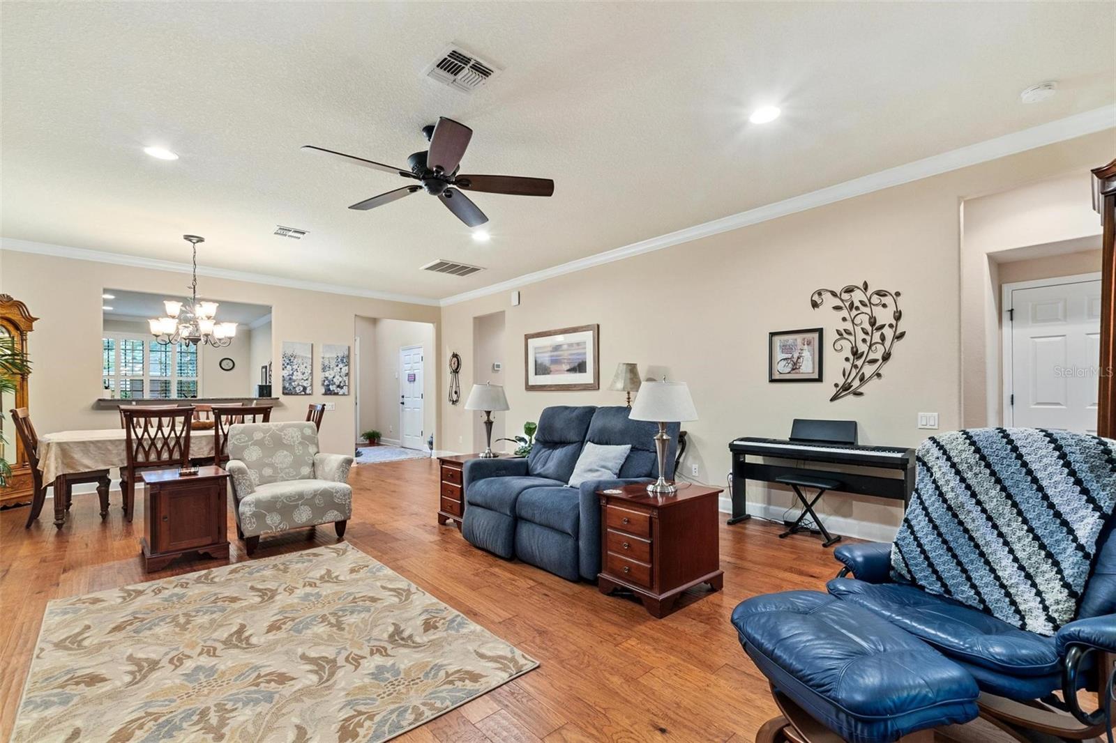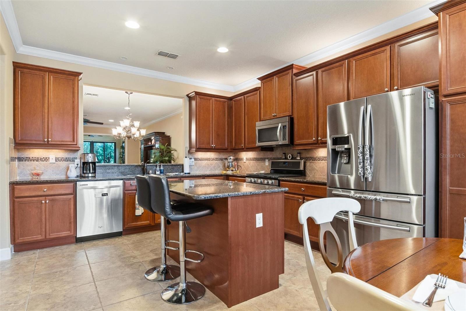 CASA impecável localizada no bairro Del Webb Orlando 55+, fechado 24 horas, na pitoresca cidade de Davenport, FL. Esta espaçosa casa possui uma planta bem projetada, abrangendo um total de 2.616 pés quadrados. Ao entrar, você será recebido por um acolhedor hall de entrada que o levará ao coração da casa, onde belos pisos de madeira e um ambiente acolhedor o aguardam. A sala de estar é um espaço convidativo, perfeito para relaxar ou receber convidados. Com seu design elegante e ambiente aconchegante, prepara o cenário para momentos memoráveis com seus entes queridos. A cozinha apresenta modernos eletrodomésticos de aço inoxidável com fogão a gás, iluminação superior e inferior do armário, amplo espaço no armário, bancadas de granito de 1-1/4" e uma barra de café da manhã conveniente. Esteja você preparando um banquete gourmet ou preparando uma refeição rápida, esta cozinha bem equipada certamente inspirará seu chef interior. A suíte master é um verdadeiro retiro com um quarto de tamanho generoso, um closet e um banheiro privativo com box amplo e pias duplas. Os quartos adicionais, sala / escritório / quarto e sala de bônus são espaçosos e versáteis, acomodando várias necessidades e estilos de vida. O quintal oferece total privacidade com sebes que revestem as janelas do FL Room fechado. piscina coberta, piscina externa e spa, fogueira, sala de artes e artesanato e taverna!! Há muitos clubes para mencionar também!! Aproveite a proximidade de shopping centers, restaurantes, parques temáticos de Orlando e opções de entretenimento, garantindo que você tenha tudo o que precisa ao seu alcance. armazenamento de escadas adicionado na sala de artesanato (2016), varanda remodelada em uma sala acabada de 4 temporadas (2015), garagem ampliada em 4 pés (2013), sistema de controle de pragas na parede (2013), armários adicionais adicionados na cozinha, banheiro e lavanderia (2013). o seu próprio. Agende uma visita hoje e experimente pessoalmente o fascínio da 507 Cadiz Drive. Esta pode ser a casa que você estava esperando - um lugar onde conforto, estilo e conveniência se cruzam perfeitamente.