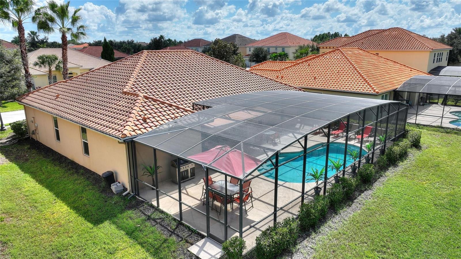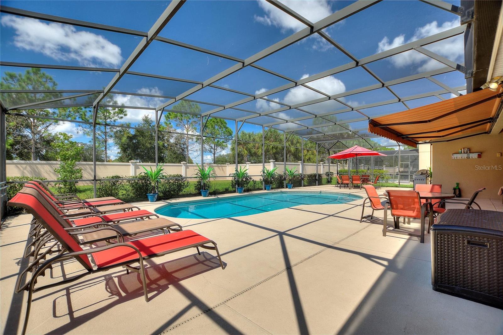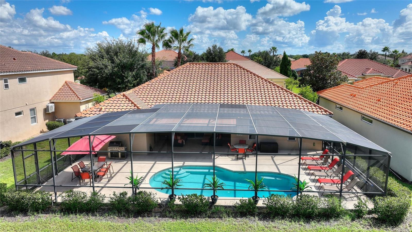 Bem-vindo a esta deslumbrante casa térrea de 5 quartos, onde cada detalhe é pensado para oferecer conforto e estilo. No momento em que você entra, os tetos abobadados e um layout aberto e arejado convidam você a um espaço perfeito para relaxamento e reuniões animadas. A sala de jantar formal, com capacidade para oito pessoas, flui perfeitamente para uma espaçosa área de estar projetada para entretenimento, enquanto a cozinha totalmente equipada e a elegante área de bar garantem que você esteja sempre no centro da ação. Do lado de fora, um amplo deck circunda a enorme piscina de 15'x30', oferecendo espaço para seis espreguiçadeiras, duas mesas de jantar para dez pessoas e uma aconchegante sala de estar ao ar livre sob o telhado, completa com TV na parede. Um elegante toldo retrátil de estilo veneziano com controle remoto adiciona um toque de luxo à sua experiência ao ar livre, tornando esta casa ideal para desfrutar de manhãs tranquilas e tardes repletas de diversão com a família e amigos. Perfeitamente mantida e repleta de móveis impecáveis e atemporais, esta casa oferece uma vibração elegante e descontraída, criando o retiro perfeito para residentes e hóspedes. Cuidado impecável foi dado a todos os aspectos desta casa, tornando-a verdadeiramente única. Além de casa, você se encontrará em uma comunidade vibrante conhecida por suas comodidades divertidas em estilo resort. Esteja você flutuando ao longo do Lazy River, descendo pelo Resort Slide, jogando vôlei na piscina ou curtindo uma partida nas quadras de tênis, as opções de recreação são infinitas. O clube oferece uma academia e um café no local, facilitando a adoção de um estilo de vida ativo e social. E a poucos minutos de distância, você encontrará campos de golfe profissionais, restaurantes fabulosos e lojas, proporcionando o máximo em conveniência e entretenimento. Esta casa e comunidade atingem o equilíbrio perfeito entre sofisticação e diversão, tornando-a um lugar ideal para viver, relaxar e se divertir.