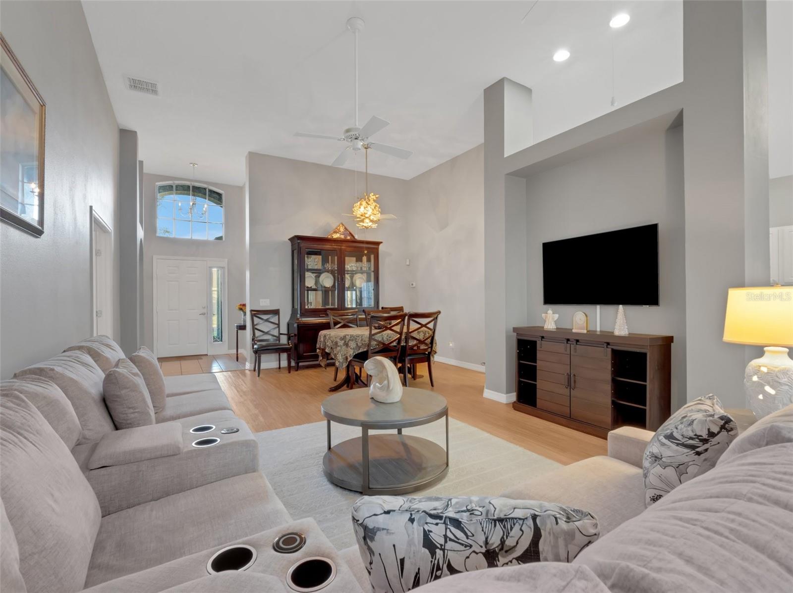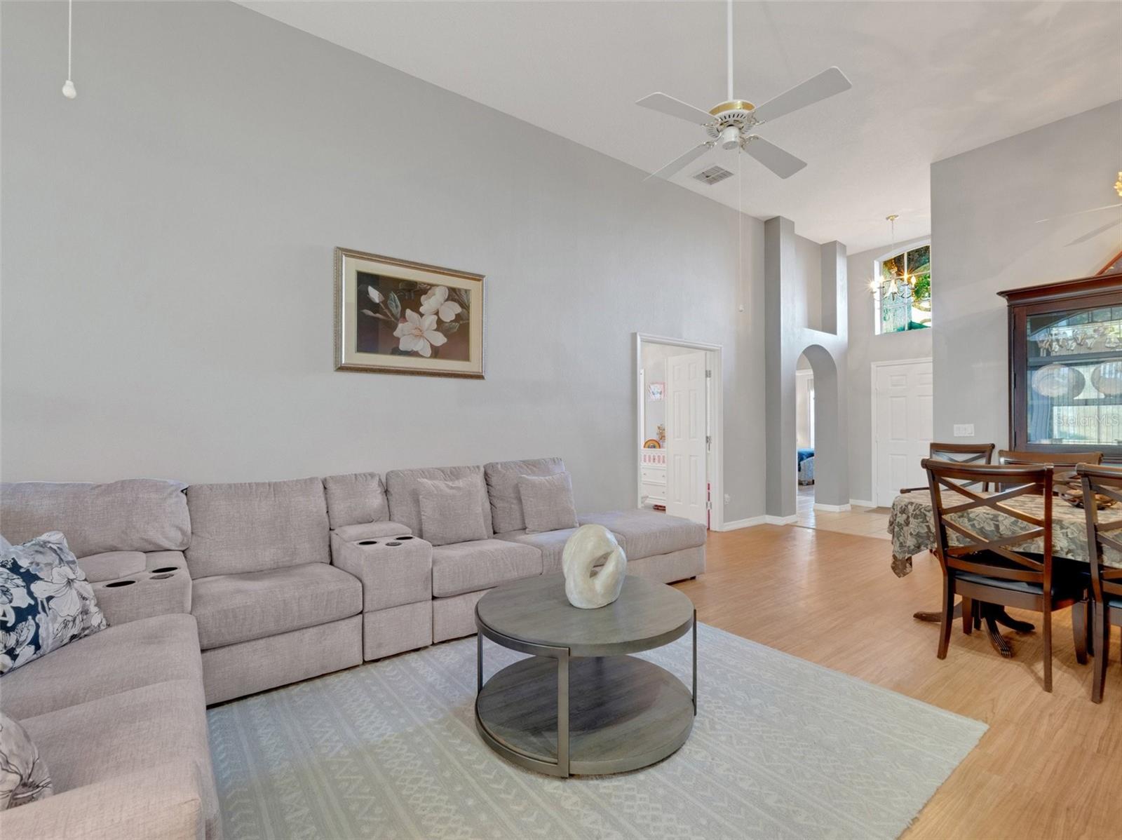 Esta casa é a popular planta RidgeDale dentro de High Vista, uma comunidade com mais de 55 anos. Situado num local desejável com a área de conservação por trás dele. A casa bem conservada tem 3 quartos e 2 banheiros, uma grande sala, salas de jantar formais e informais. Existem ventiladores de teto em todos os quartos e na sala. Os pisos são uma combinação de azulejos e laminado de madeira. Os sistemas substituídos são o HVAC em 2017, o telhado em 2016 e o exterior foi pintado em 2023. A varanda com tela nos fundos proporciona uma visualização confortável da área de conservação. O quarto principal é grande o suficiente para acomodar um rei. Pias duplas no banheiro principal, bem como banheira e chuveiro separados. As taxas HOA aqui custam apenas $ 220 e incluem manutenção do gramado e cabos básicos. As comodidades incluem um clube com pub, academia, piscina aquecida e spa, tênis, bocha, shuffleboard e pickleball. Muitas trilhas para caminhada e ciclismo, bem como lagos para pescar e soltar. Adjacente ao campo de golfe e perto de lojas, restaurantes, Advent Health Hospital e parques temáticos.