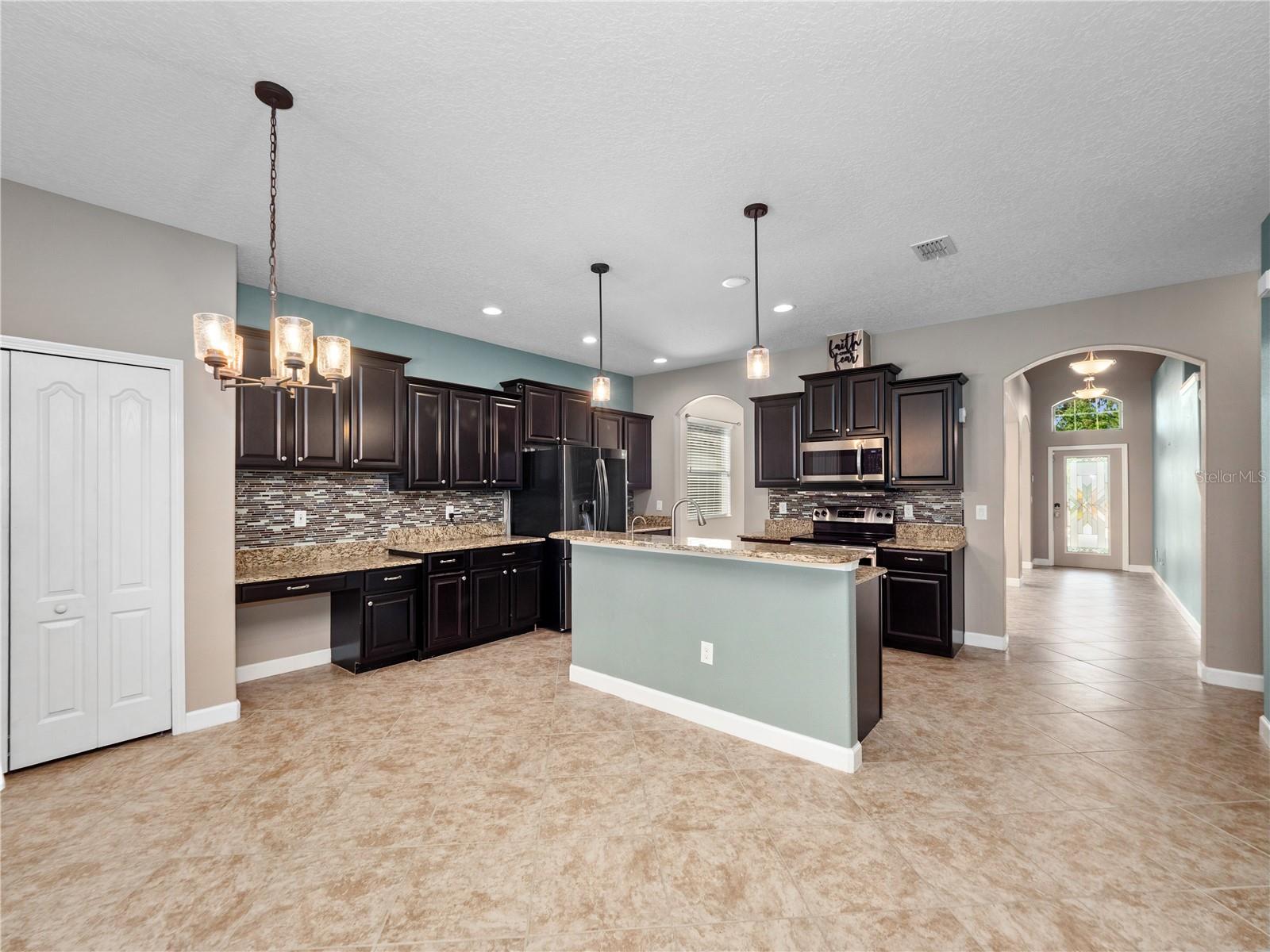 Bem-vindo a esta casa de piscina de 5 quartos e 3 banheiros, localizada no altamente desejável Comunidade de Providence. Projetado para conforto e estilo, esta casa espaçosa possui um teto de azulejo, calçada de tijolos e uma garagem de 3 carros em tamanho real com abridor automático. O meticuloso cenário e paisagismo maduro atualizam o apelo instantâneo, enquanto a porta da frente atualizada com inserção de vidro decorativo oferece uma recepção calorosa e elegante. Entre em um interior sem carpetes com pisos duráveis por toda parte. A planta de conceito aberto flui perfeitamente das salas de vida e jantar formal para a sala da família brilhante e arejada, completa com entradas arqueadas e uma abundância de luz natural. No coração da casa está a cozinha do chef, oferecendo bancadas em granito, utensílios de aço inoxidável, amplo espaço no armário e uma mesa embutida, ideal para lição de casa, artesanato ou uma configuração de escritório em casa. As portas de vidro deslizantes levam à peça da casa: um enorme 34x34 coberto e rastreado Lanai, cercado por paisagismo exuberante e com uma banheira de hidromassagem-perfeita para relaxar ou entreter o ar livre durante todo o ano. O nível principal inclui um espaçoso quarto de hóspedes localizado ao lado de um banheiro completo com uma única vaidade e combinação de banheira/chuveiro - ideal para uma vida multigeracional ou visitantes. No andar de cima, você encontrará uma grande área de loft, perfeita para uma sala de jogos ou espaço secundário e uma sala de bônus que pode servir facilmente como 6º quarto, home theater ou sala de mídia, graças à adição de um armário embutido. A suíte primária oferece um retiro pacífico com espaço generoso no armário e um luxuoso banho de suíte, completo com vaidades duplas, uma estação de maquiagem, uma banheira de imersão e um chuveiro de ladrilhos de mosaico aprimorado com detalhes em mosaico. Três quartos adicionais no andar de cima são todos de tamanho generoso e apresentam piso de vinil de luxo, fornecendo manutenção fácil e uma aparência coesa em todo o segundo andar. Os moradores gostam de acesso a um campo de golfe de 18 buracos projetado por Michael Dasher, estilo de resort e piscinas, um parque de playground, parque de cães e um centro de fitness totalmente equipado. O clube é o lar de um restaurante e bar no local, perfeito para refeições casuais ou reuniões sociais. Com trilhas fechadas e trilhas para caminhada 24 horas por dia, 7 dias por semana, Providence oferece tranquilidade e uma qualidade de vida excepcional. Não perca a chance de possuir essa casa espaçosa e pronta para se mudar em uma das comunidades mais desejáveis da Flórida Central. Agende sua exibição particular hoje!